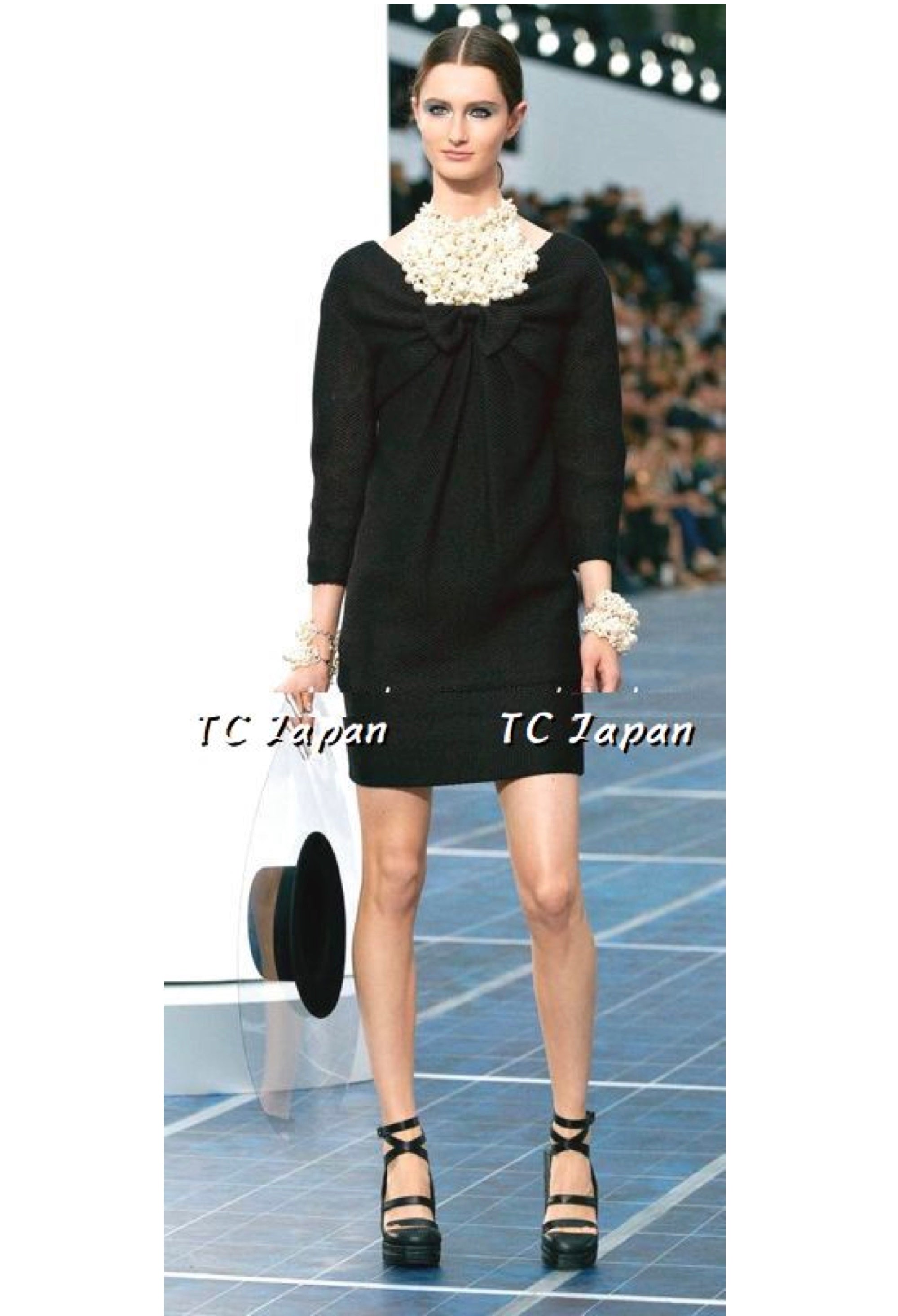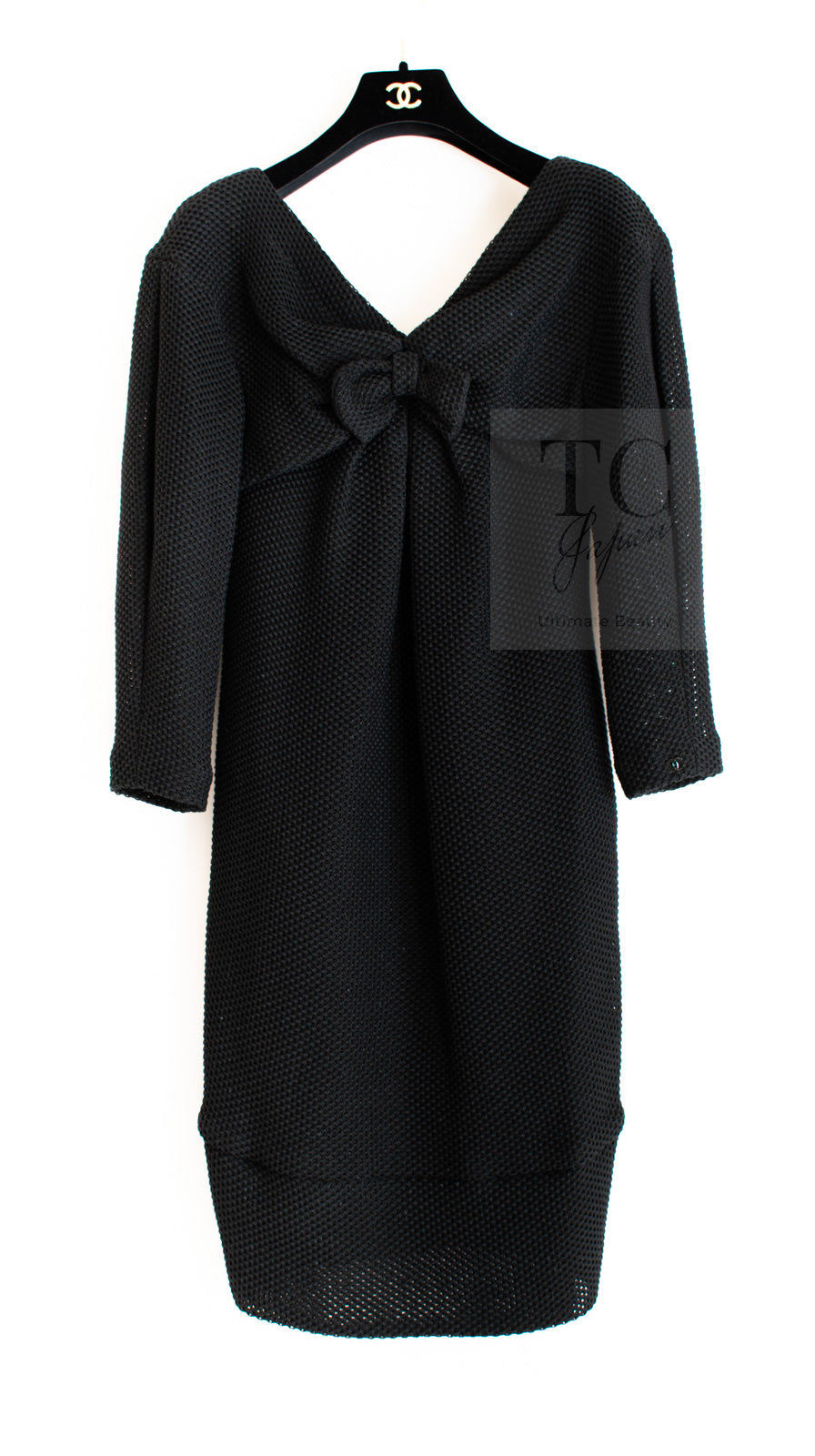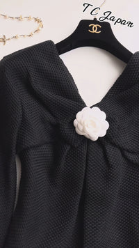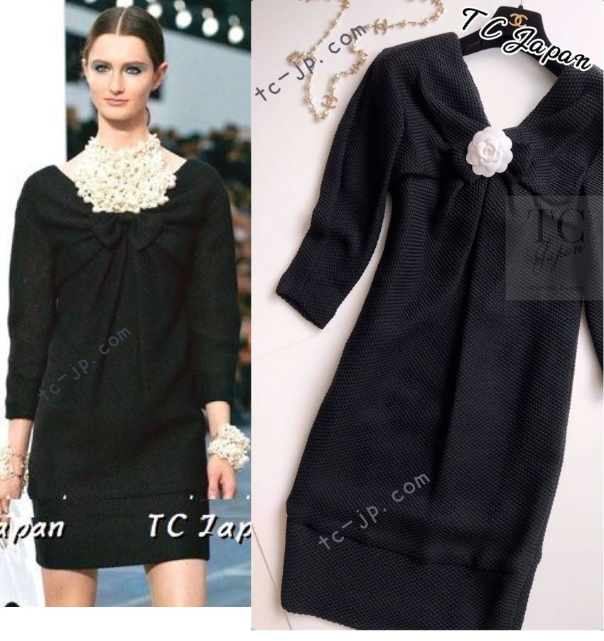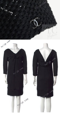 CHANEL 13S Black Mesh Cotton Dress 36 38 シャネル 女優 ハンヒョジュ着 ブラック ワッフル生地 メッシュ コットン ワンピース 即発