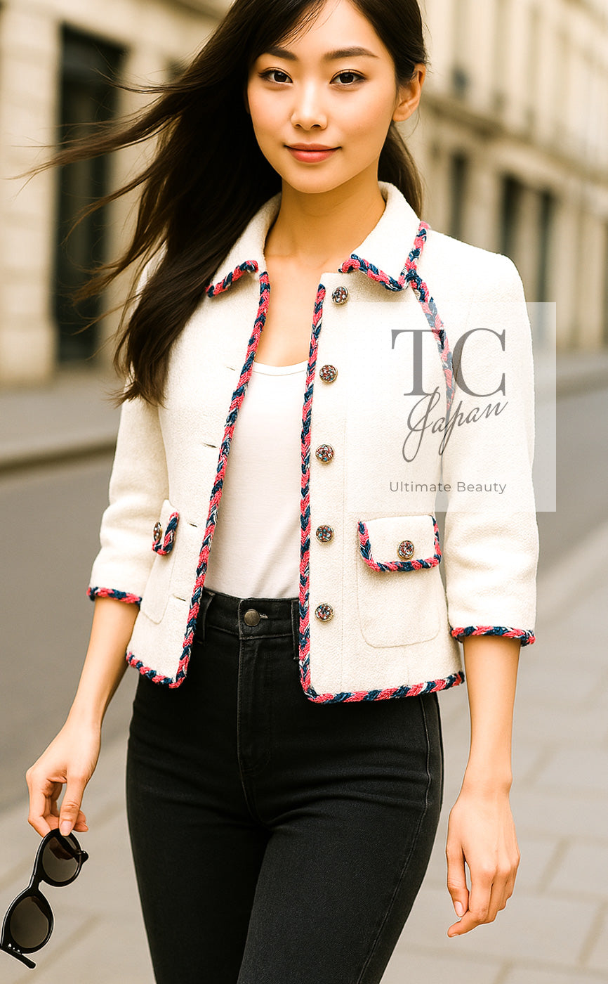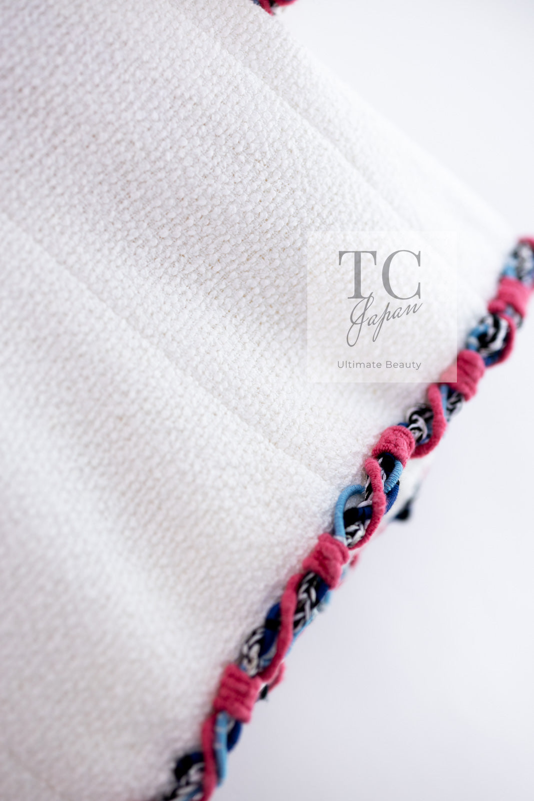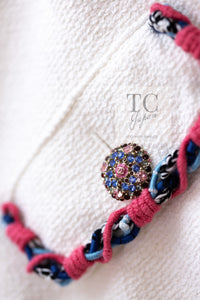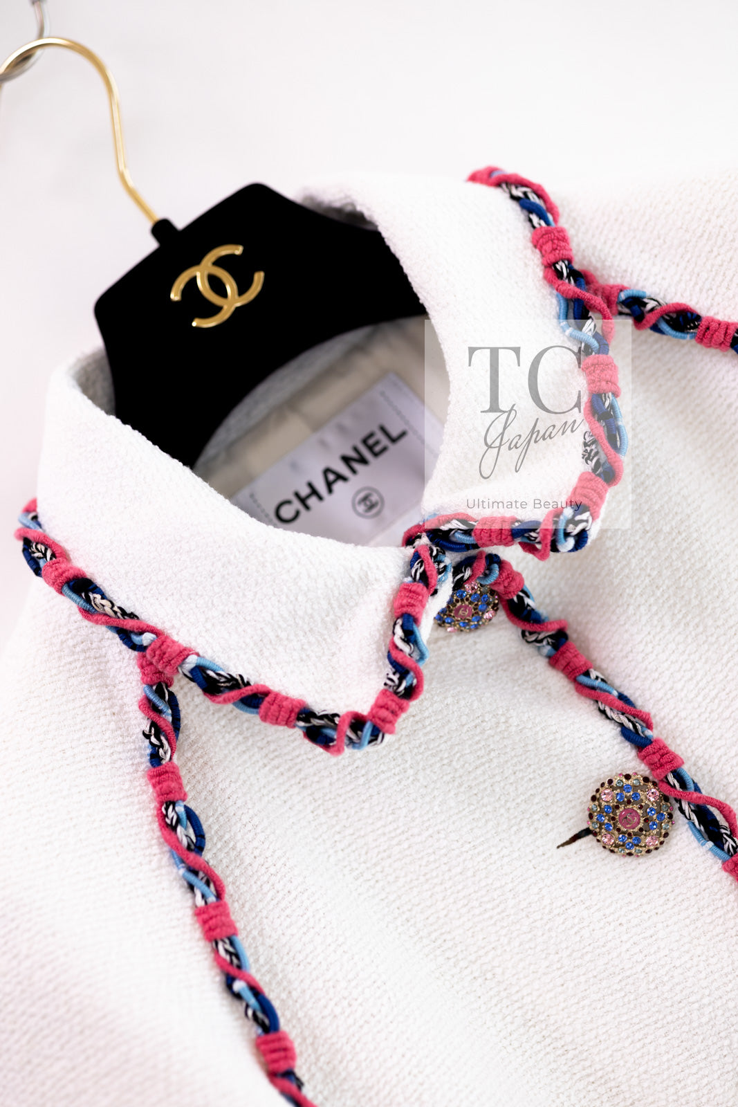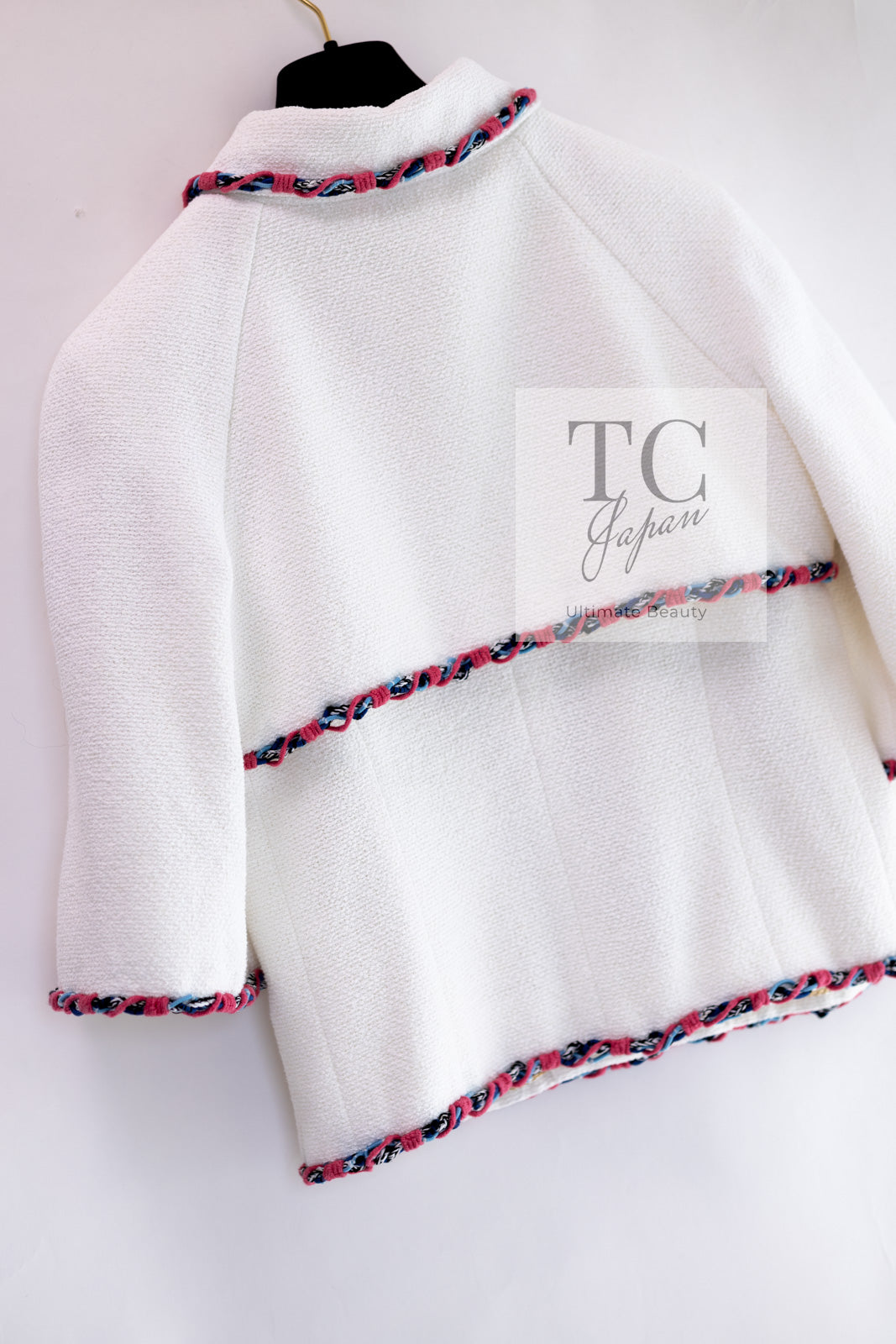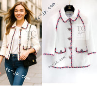 CHANEL 15C White Pink Blade Trimming Cotton Tweed Jacket 40 42 シャネル ホワイト ピンク ブレードトリミング コットン ツイード ジャケット 即発