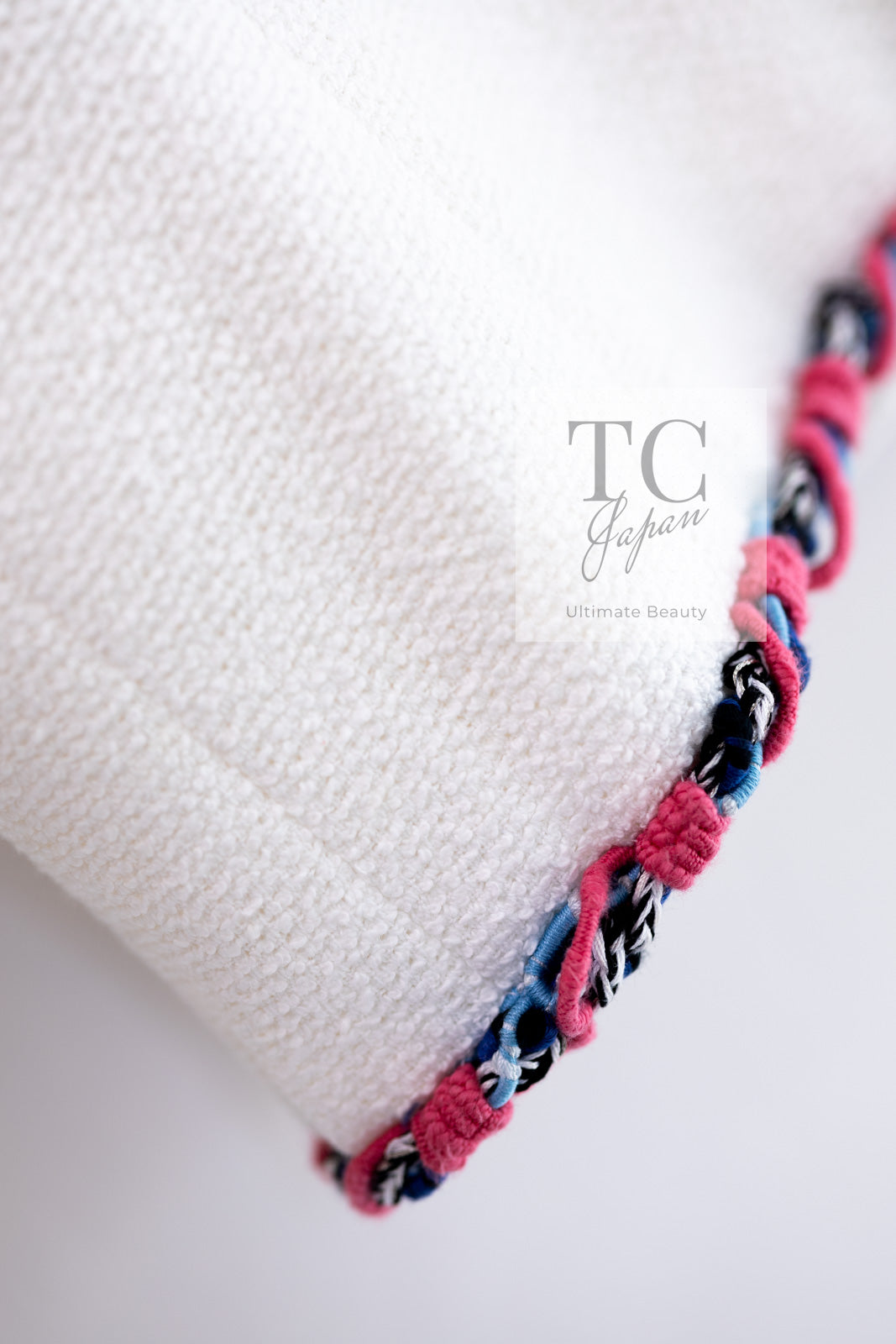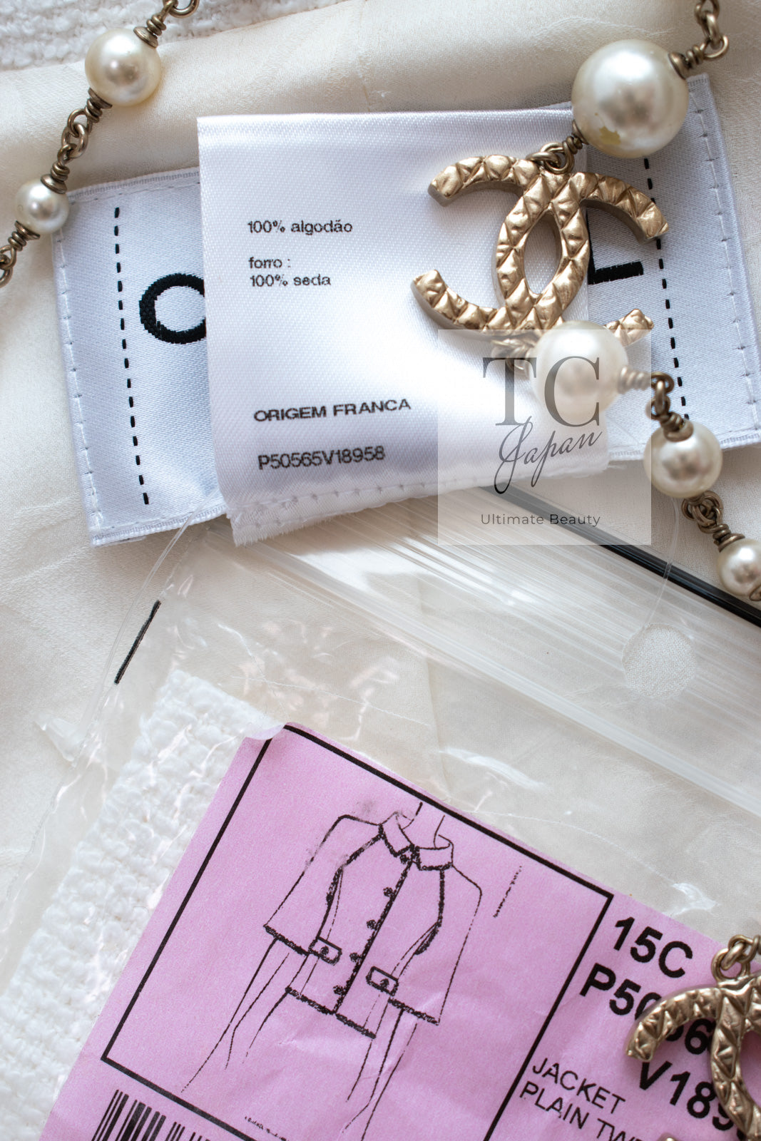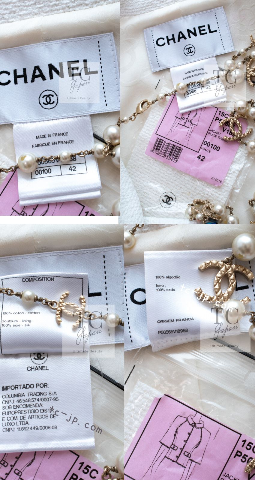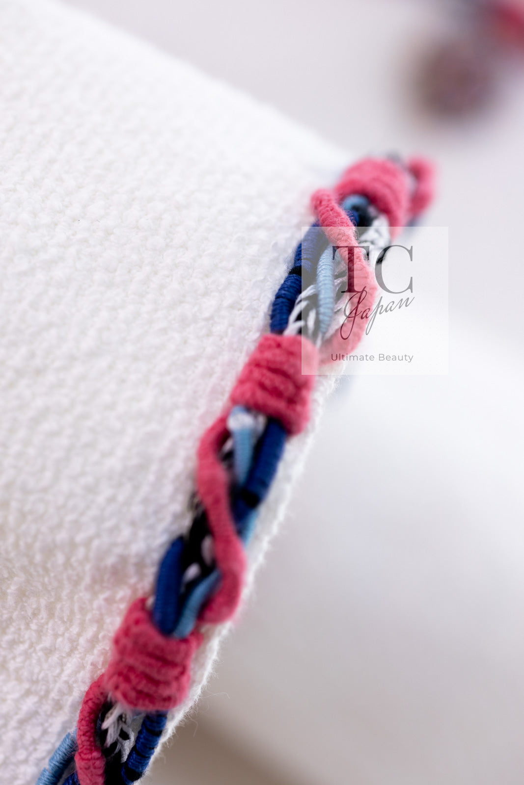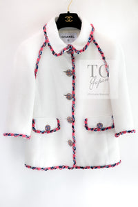 CHANEL 15C White Pink Blade Trimming Cotton Tweed Jacket 40 42 シャネル ホワイト ピンク ブレードトリミング コットン ツイード ジャケット 即発