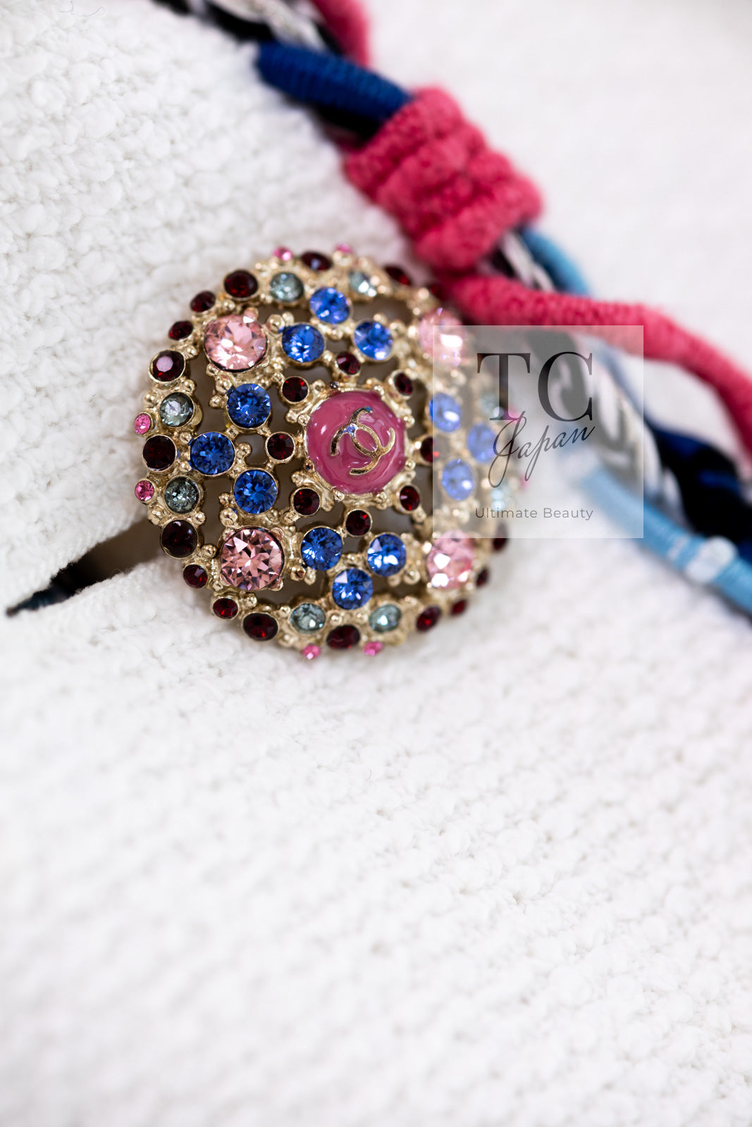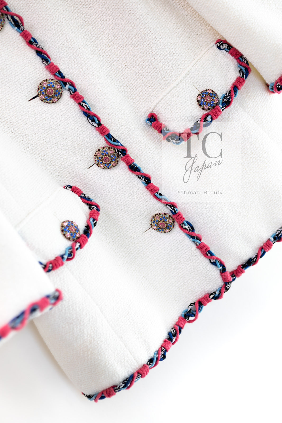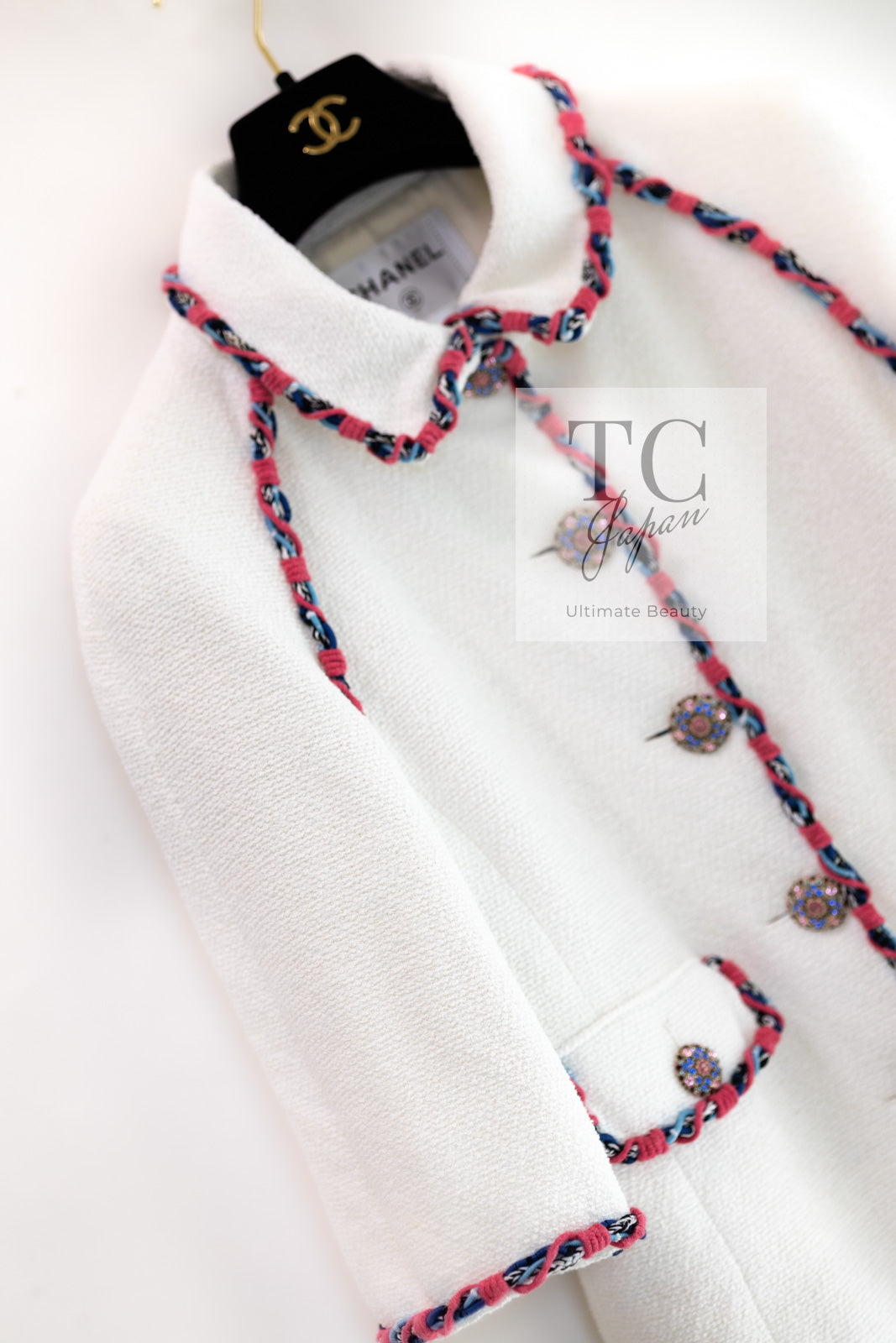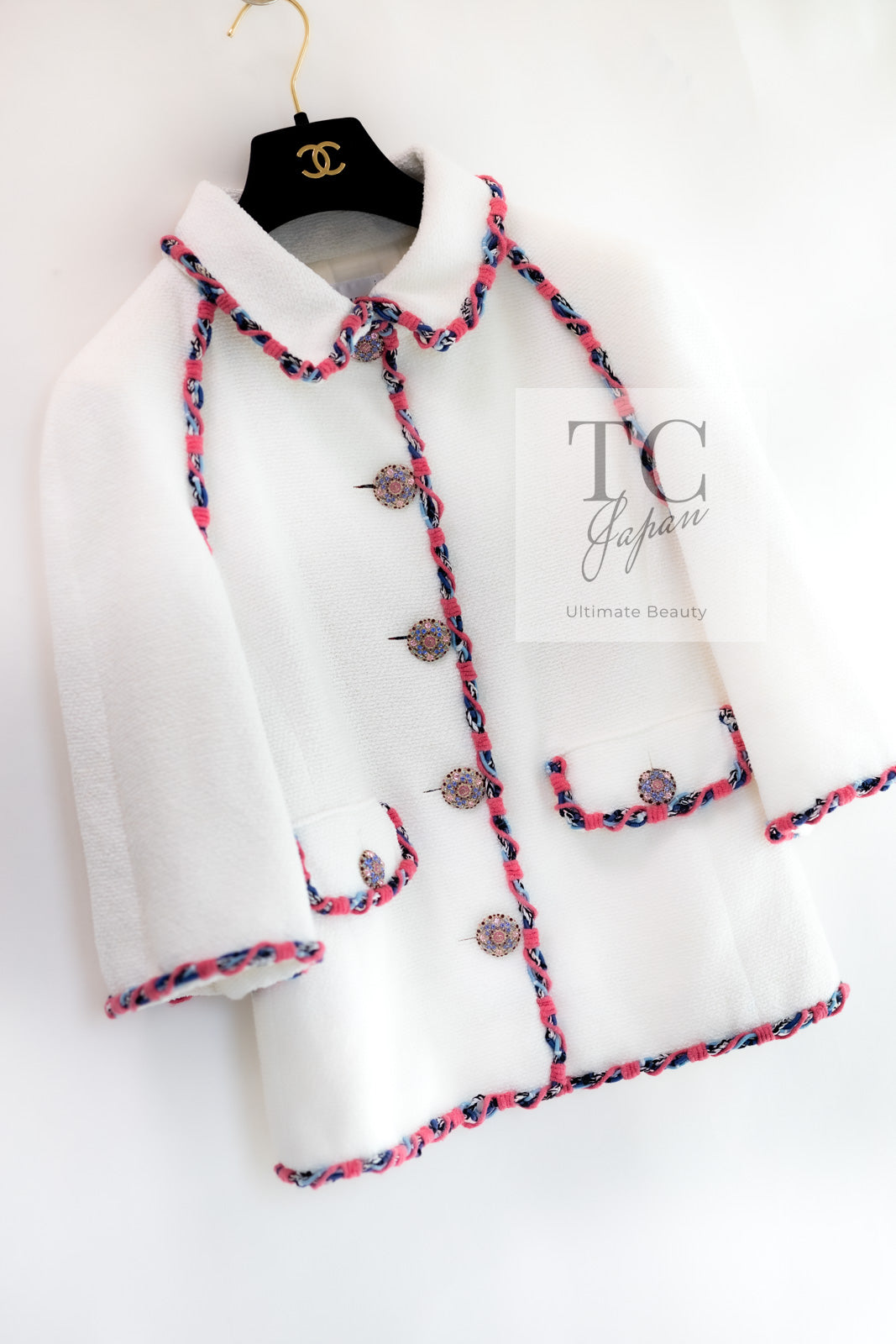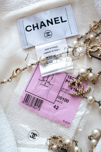 CHANEL 15C White Pink Blade Trimming Cotton Tweed Jacket 40 42 シャネル ホワイト ピンク ブレードトリミング コットン ツイード ジャケット 即発