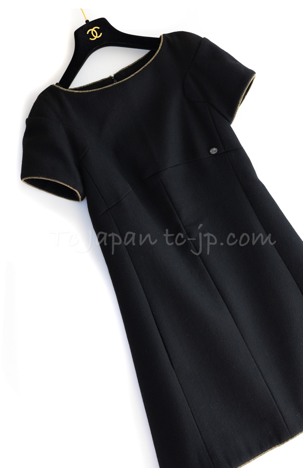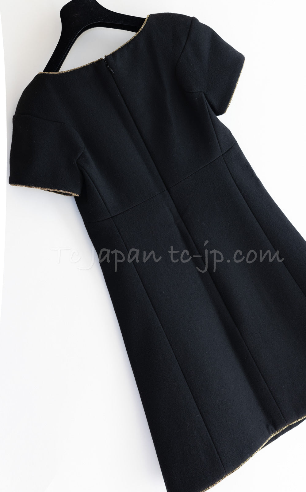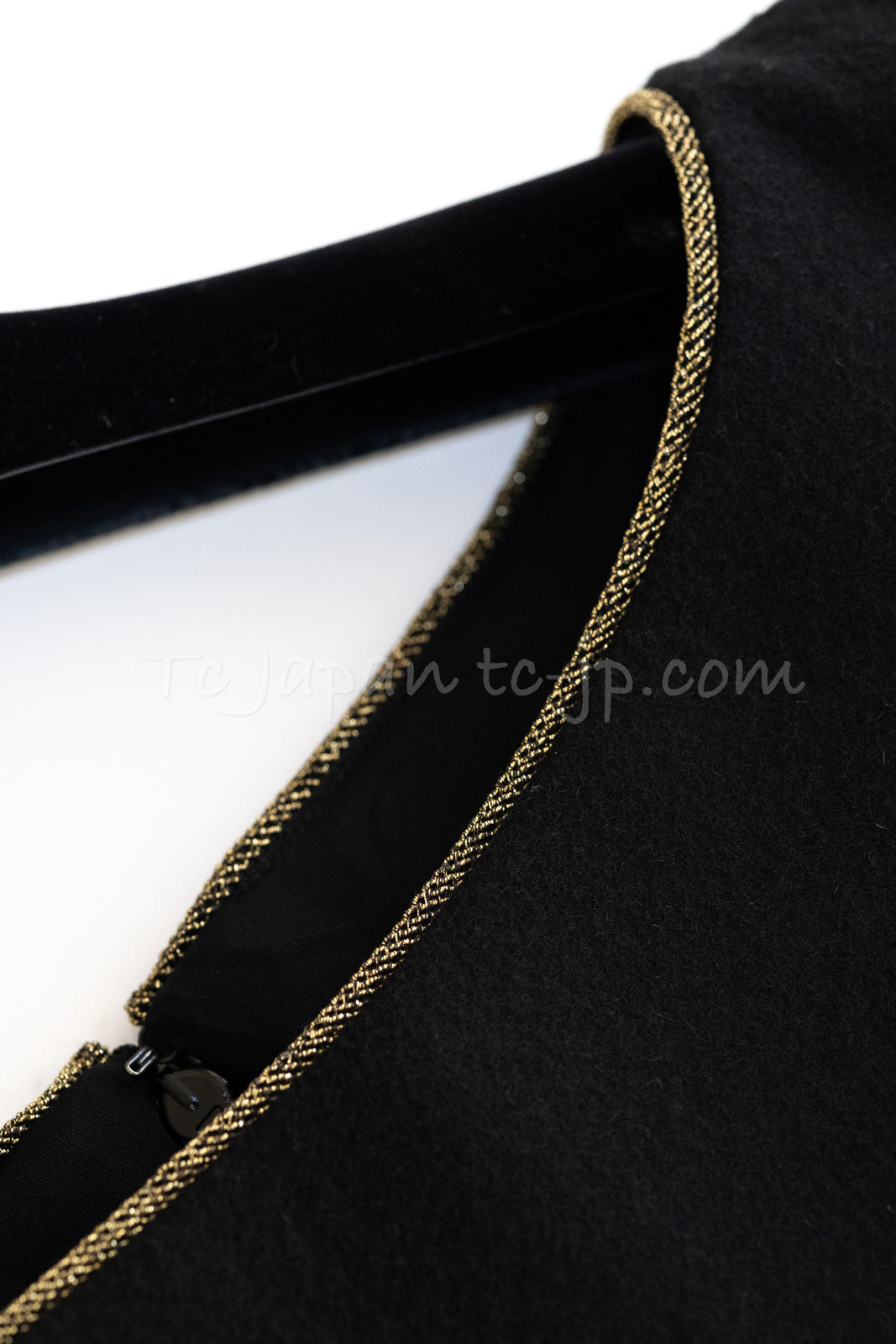 CHANEL 15PF Black Gold Trim Melton Wool 100 Dress 34 36 シャネル ブラック ゴールド トリム メルトン ウール ワンピース 即発