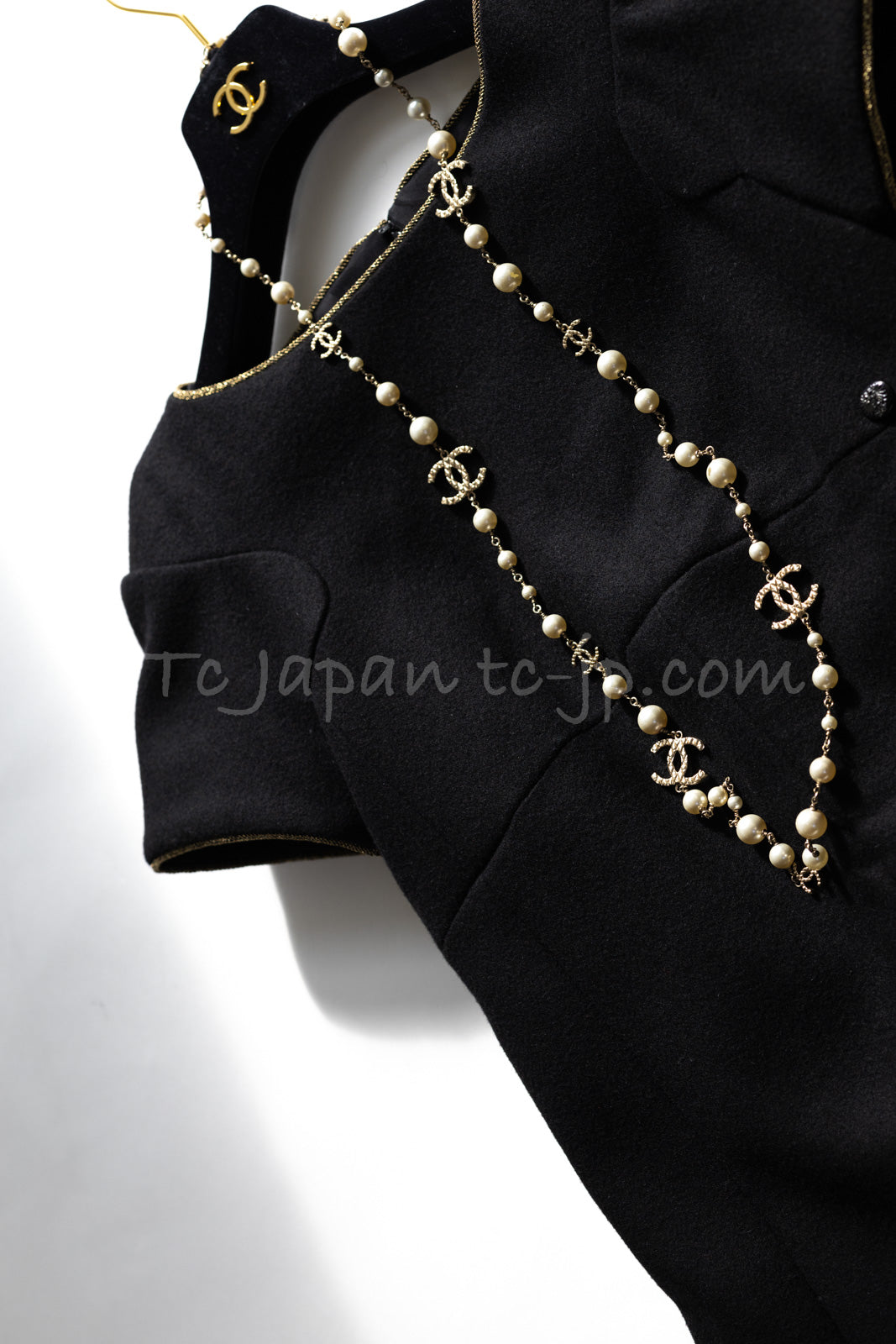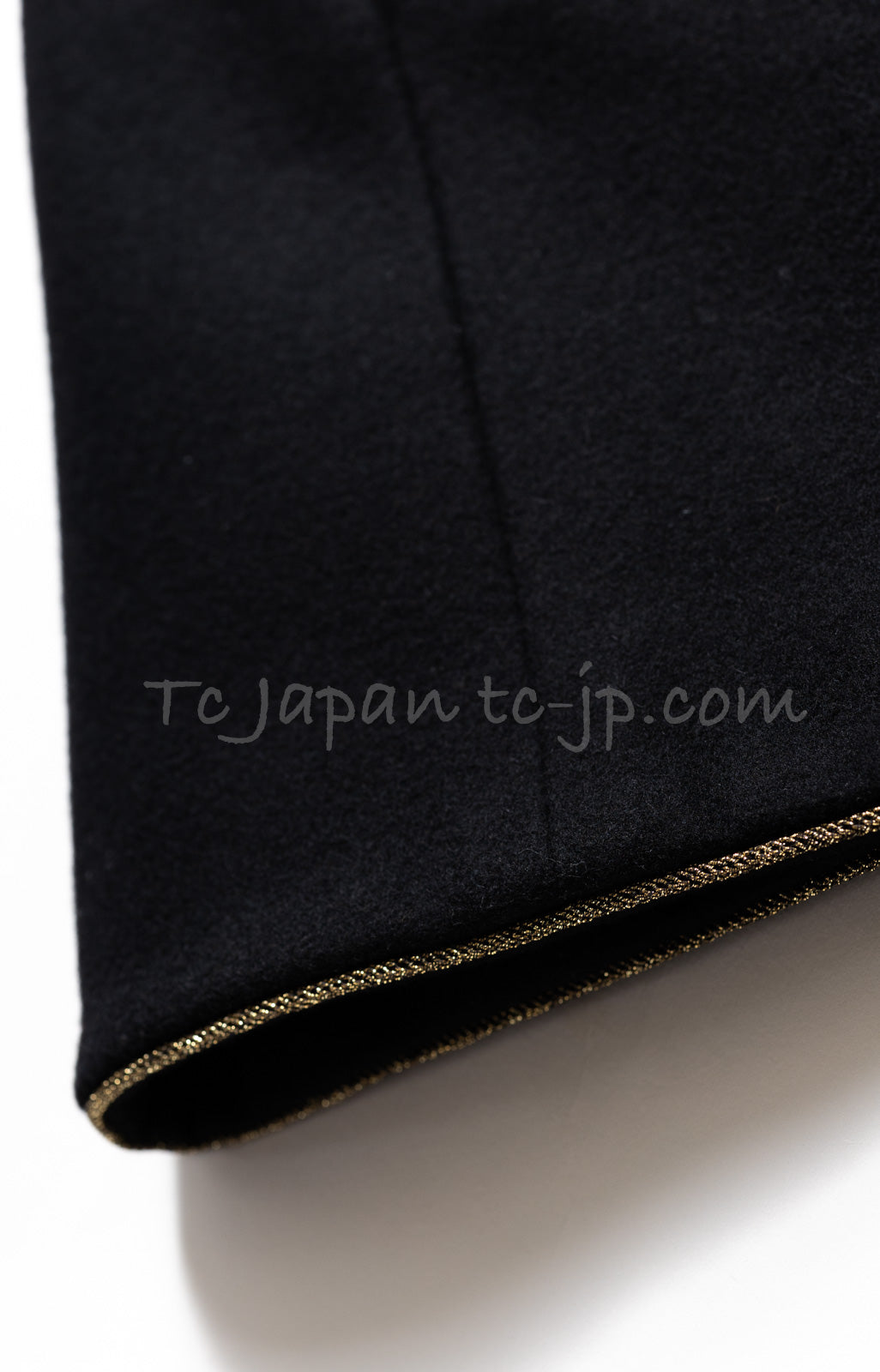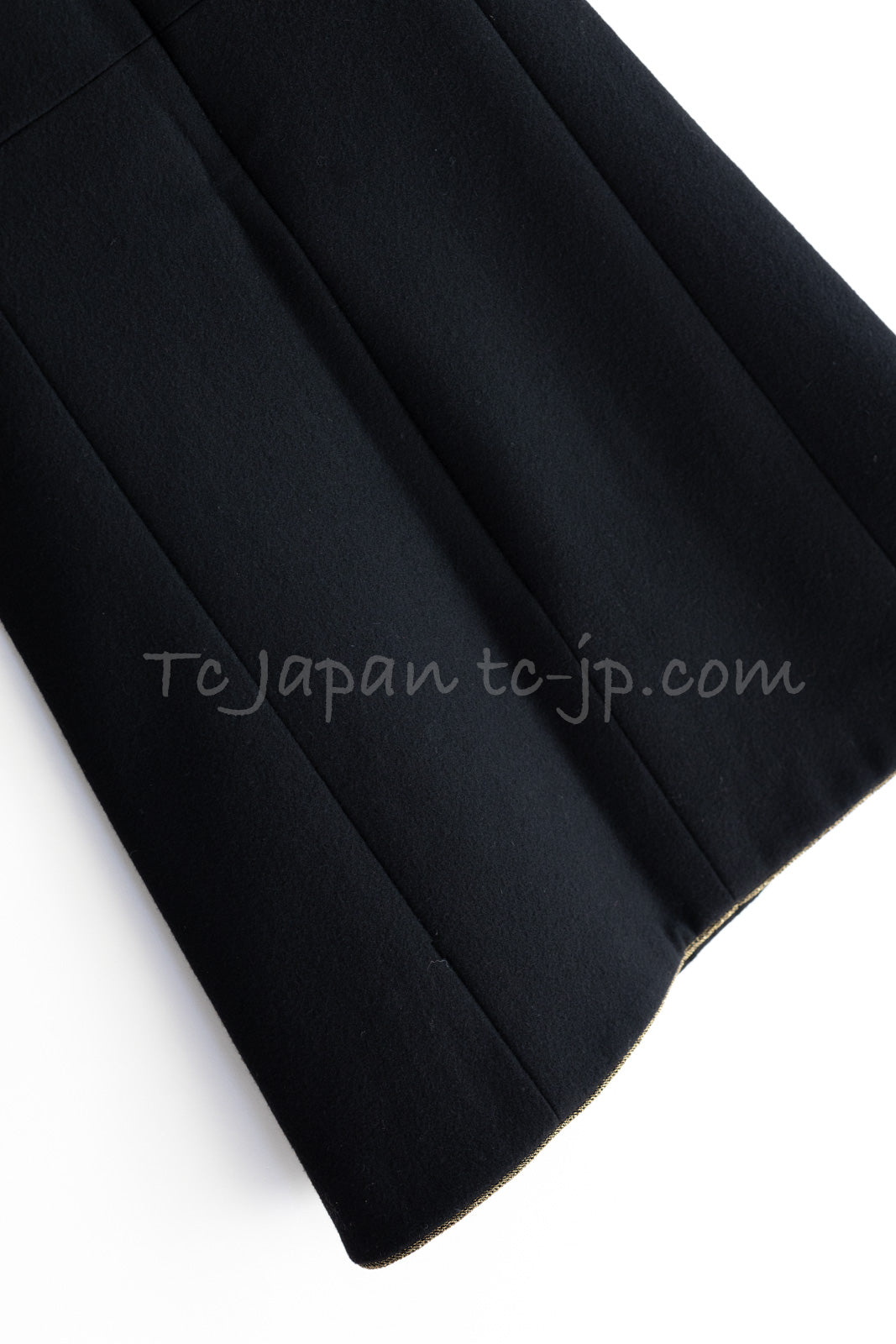 CHANEL 15PF Black Gold Trim Melton Wool 100 Dress 34 36 シャネル ブラック ゴールド トリム メルトン ウール ワンピース 即発