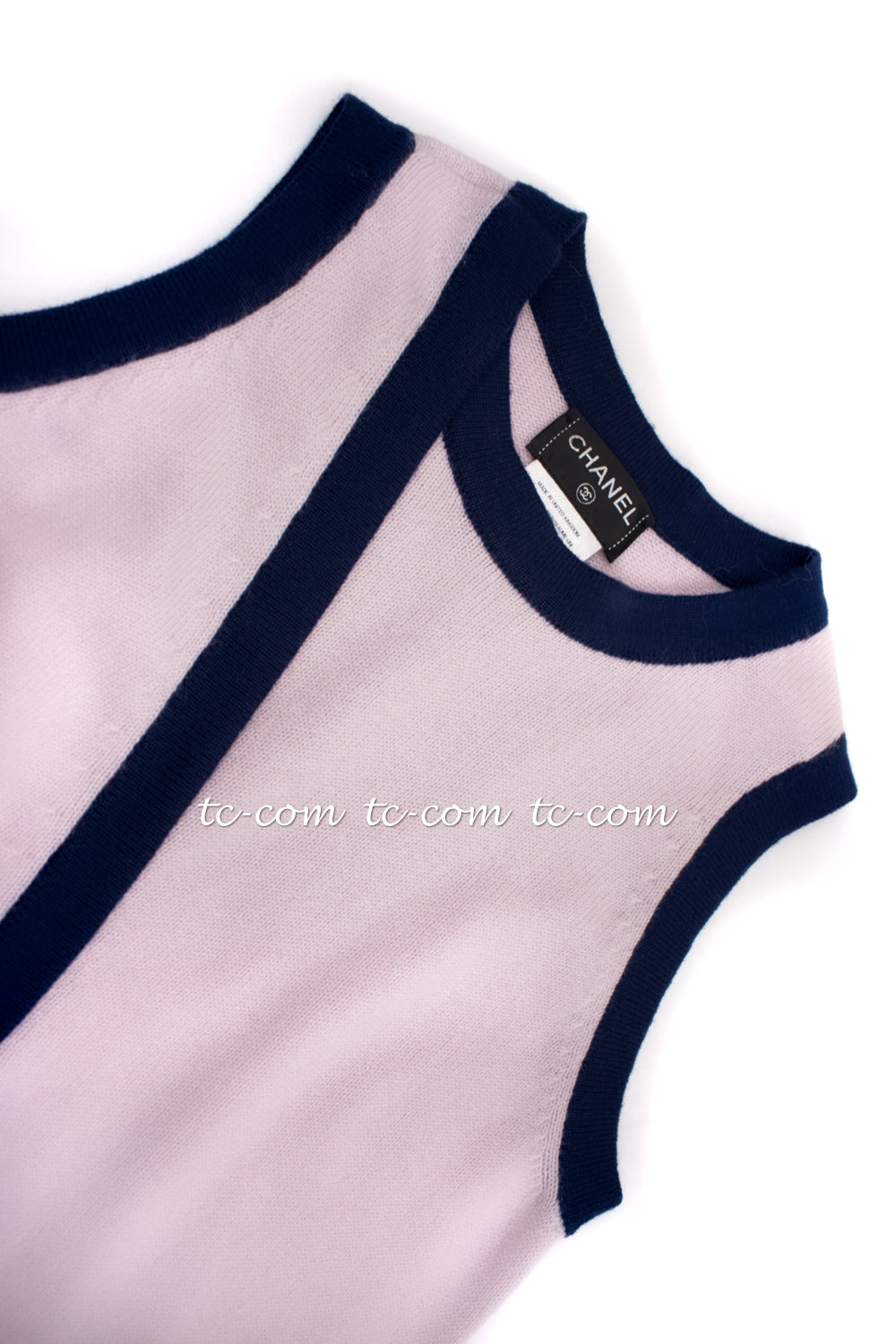 CHANEL 15S Lilic Navy Trimming Cashmere Knit Dress 38 シャネル カシミア・ニット・ワンピース 即発