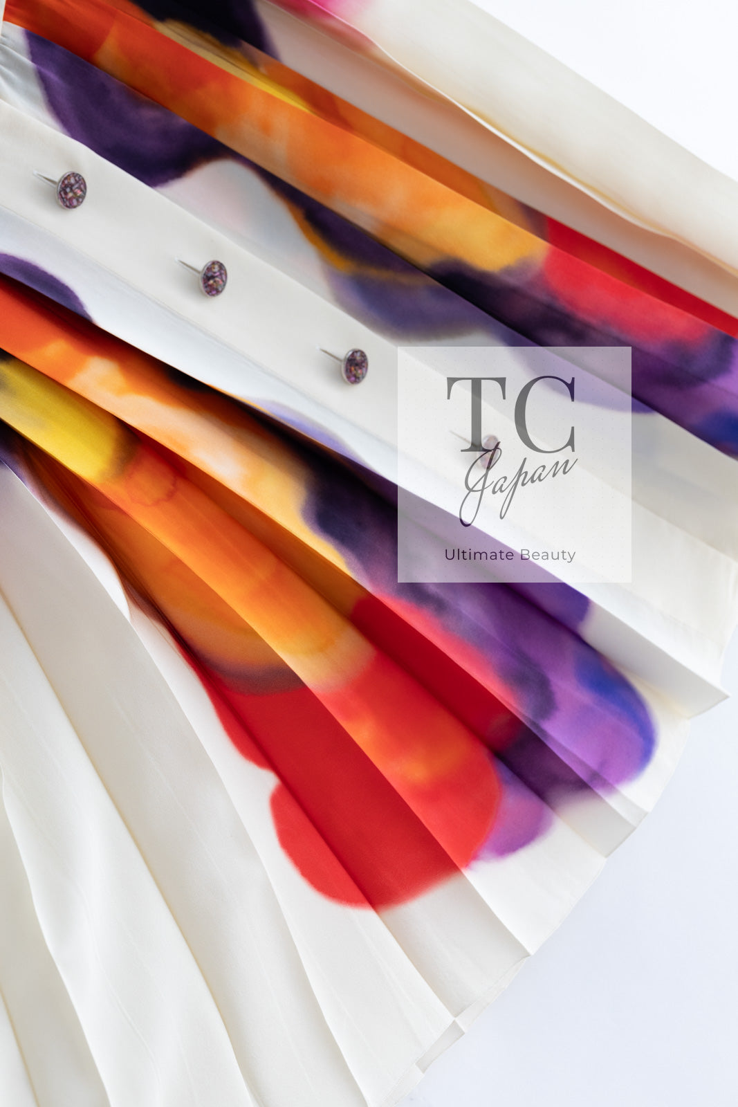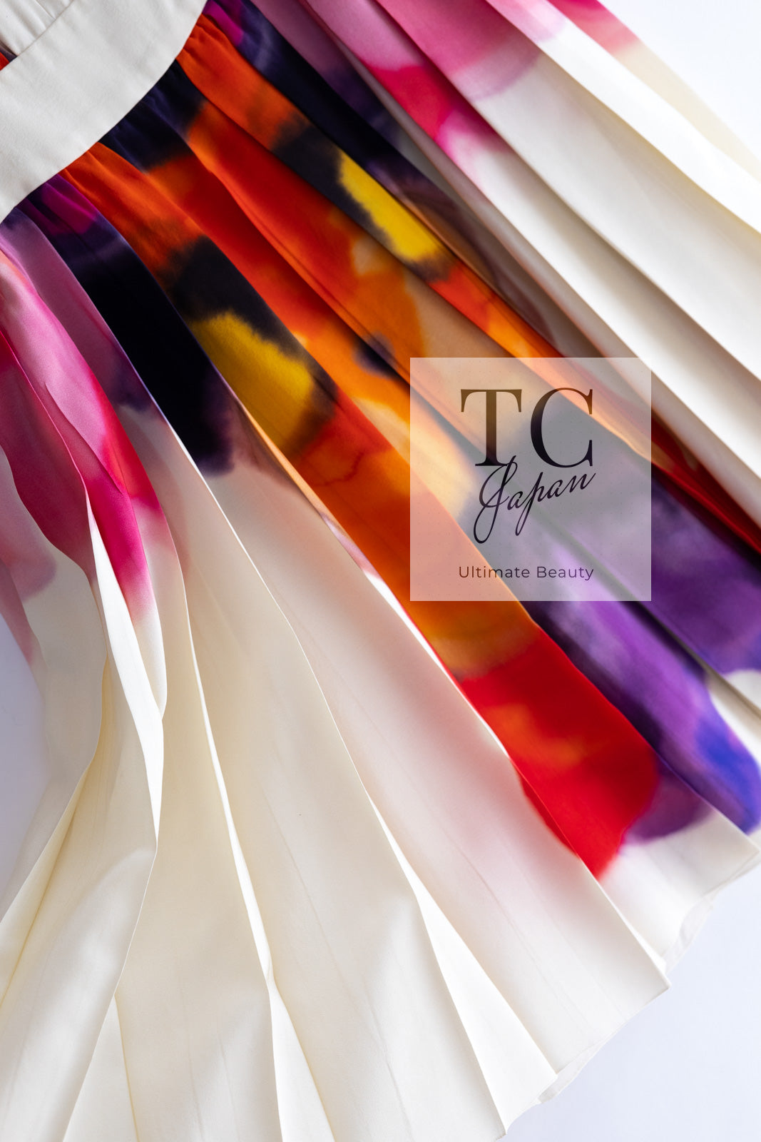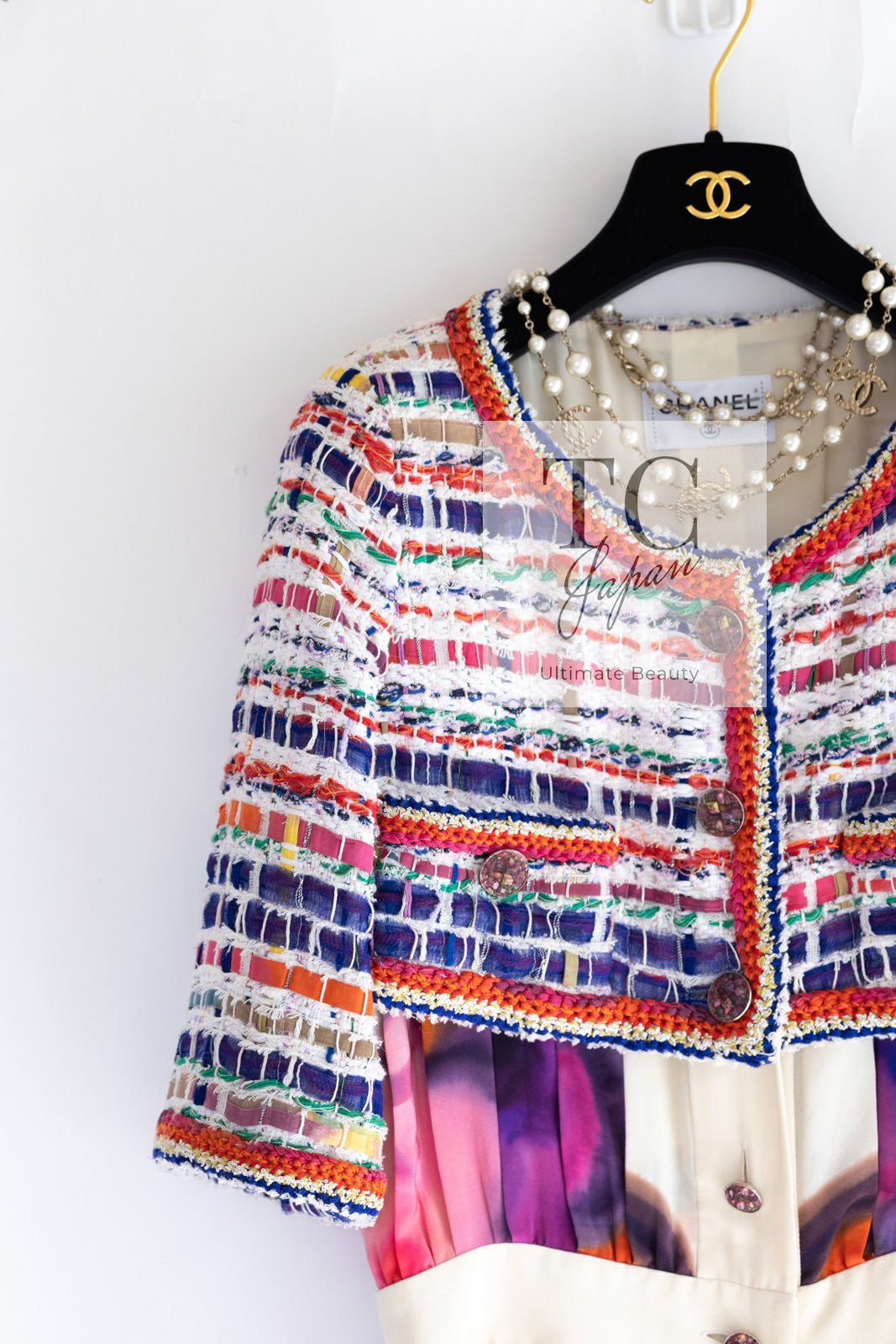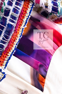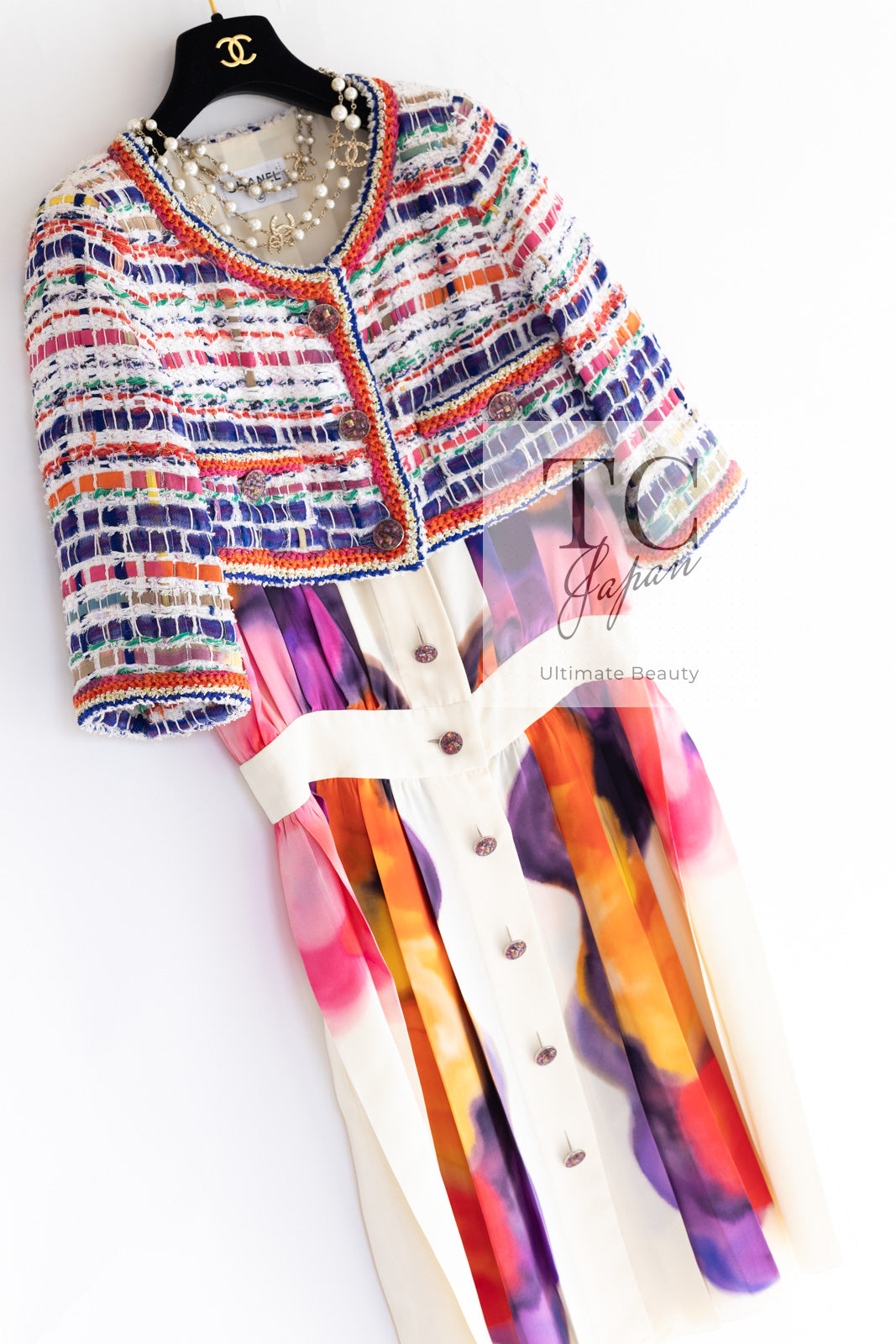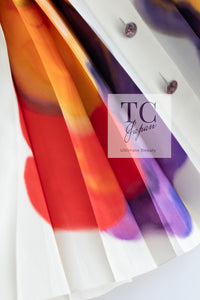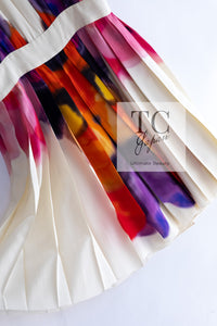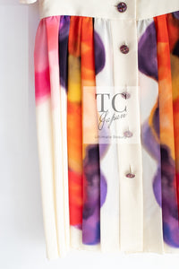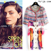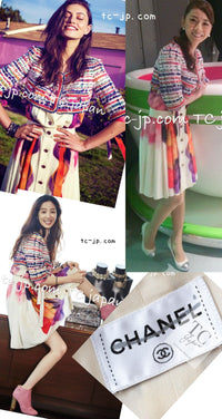 CHANEL 15S Ivory Multicolor Cotton Silk Tweed Pleated Dress 36 38 シャネル アイボリー マルチカラー コットン ツイード ジャケット シルク プリーツ ドレス ワンピース 即発