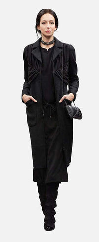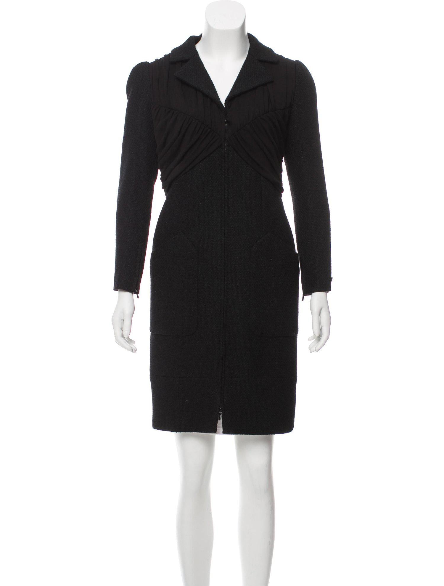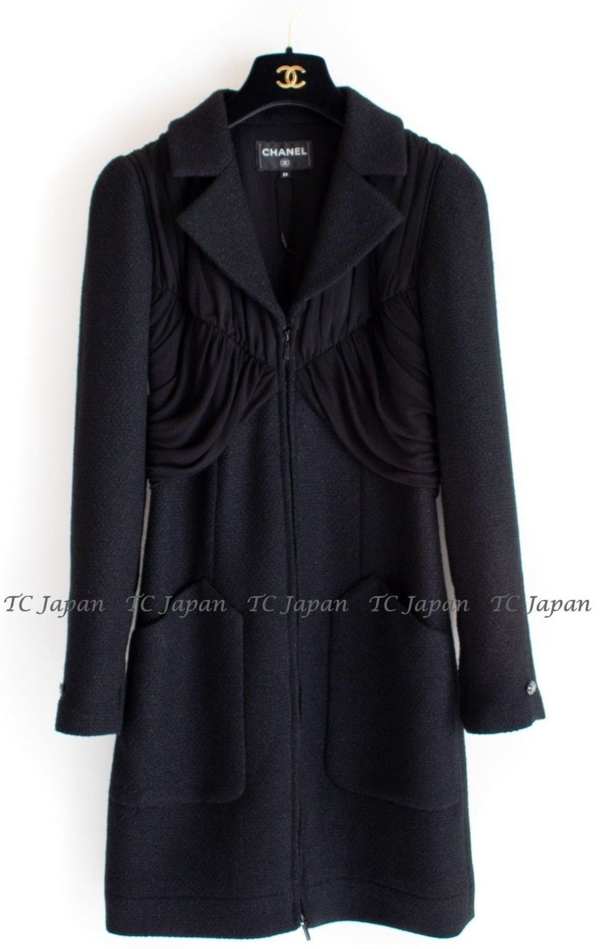 CHANEL 16B Black Zipper Wool Dress Coat 38 シャネル ブラック ジッパー ウール ドレープ ワンピース コート 即発