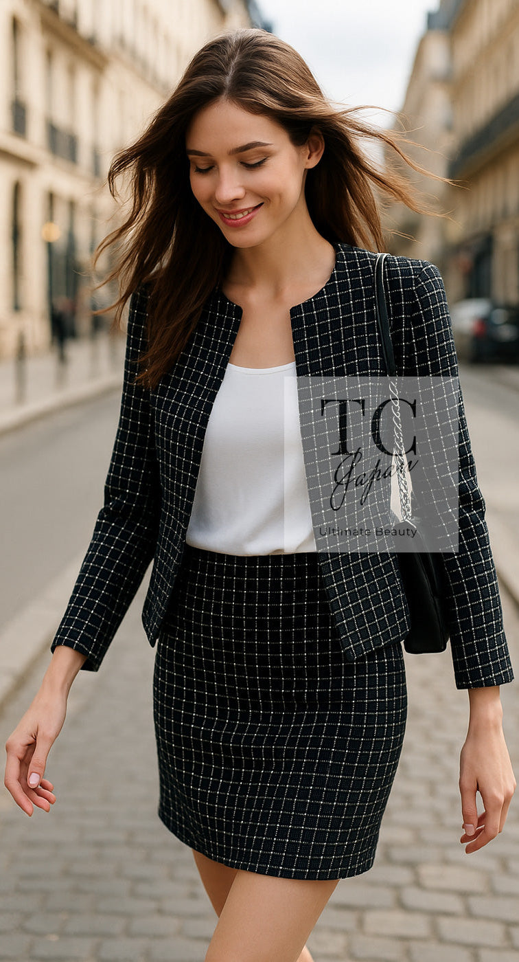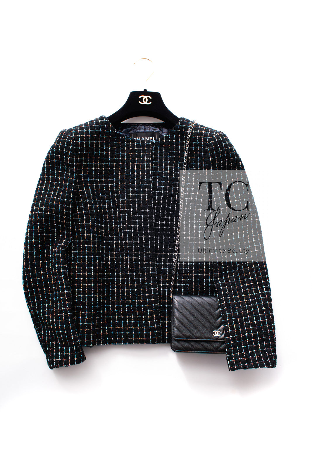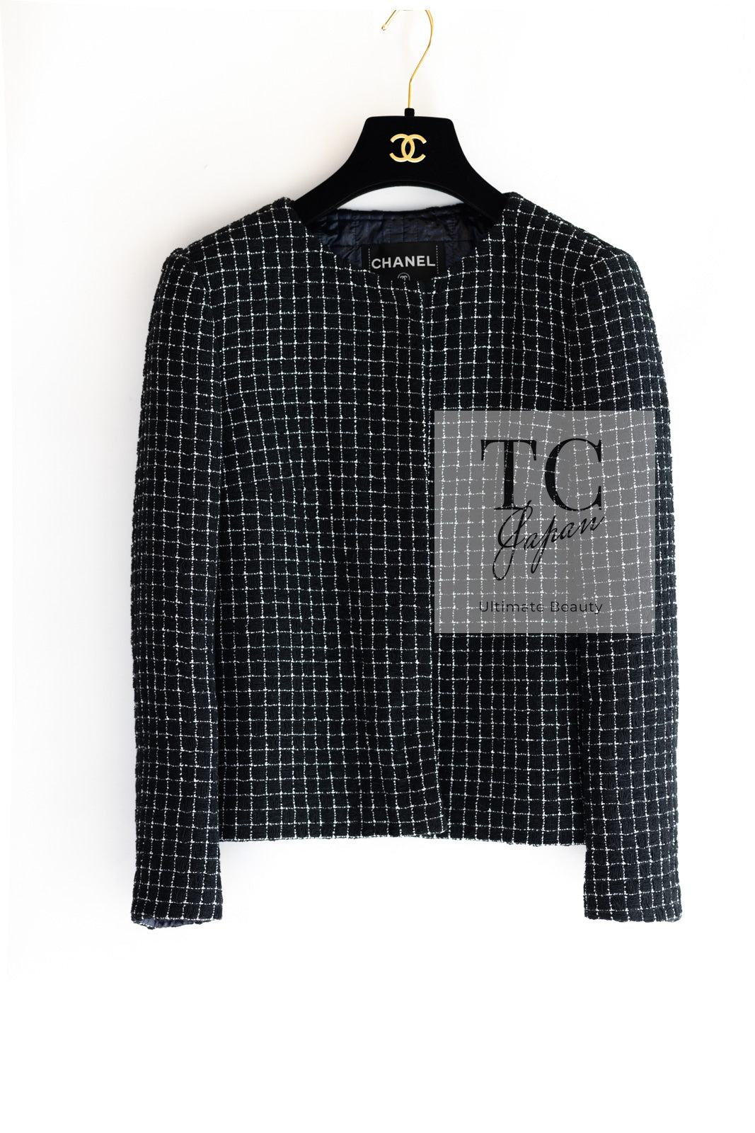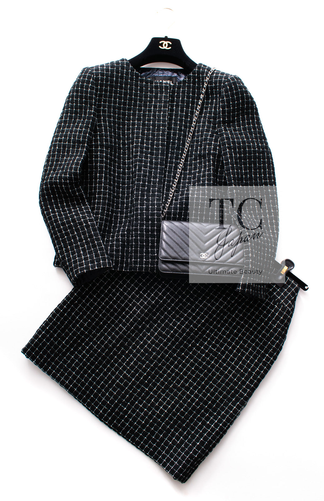 CHANEL 16S Black Check CC Lion Jacket Skirt Suit 36 シャネル ブラック チェック CC ライオン装飾 ジャケット スカート スーツ 即発