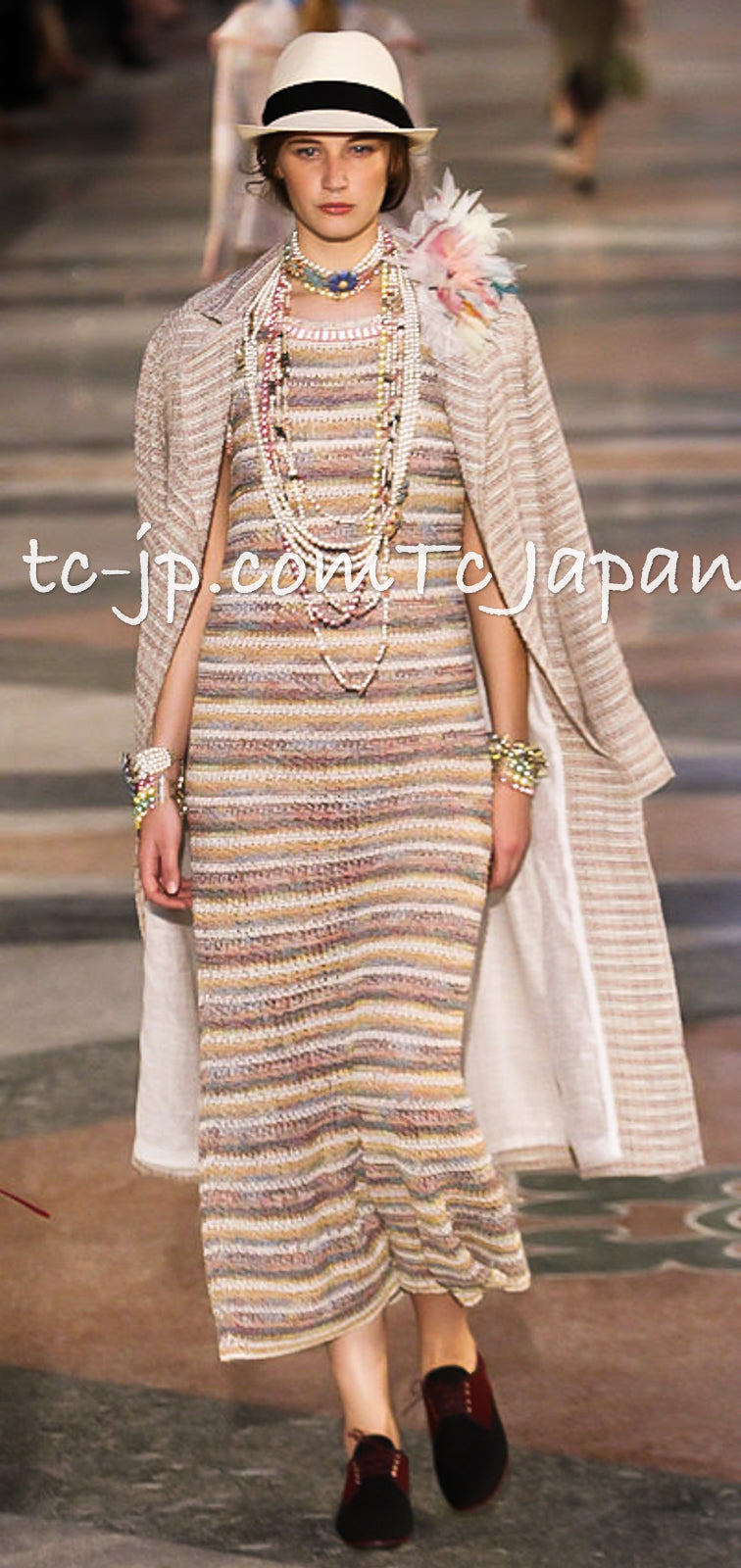 CHANEL 17C Creme Marigold Beige Cotton Stretch Knit Dress 44 シャネル クリーム マリゴールド ベージュ コットン ストレッチ ニット ワンピース 即発