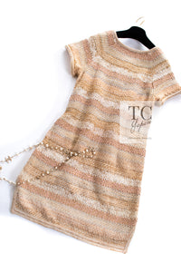 CHANEL 18C Beige Peach Knit Dress 42 シャネル ベージュ ピーチ ニット ワンピース 即発