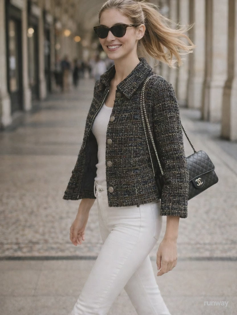 CHANEL 18PA Green Navy Khaki Tweed Jacket 36 38 シャネル グリーン ネイビー カーキ ツイード ジャケット 即発
