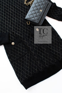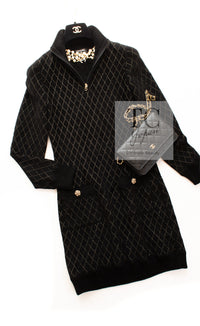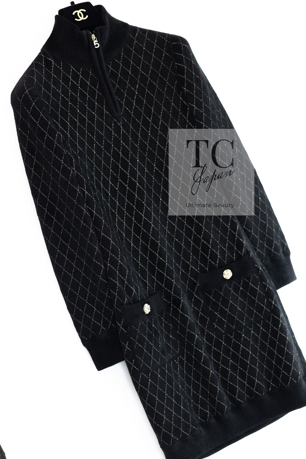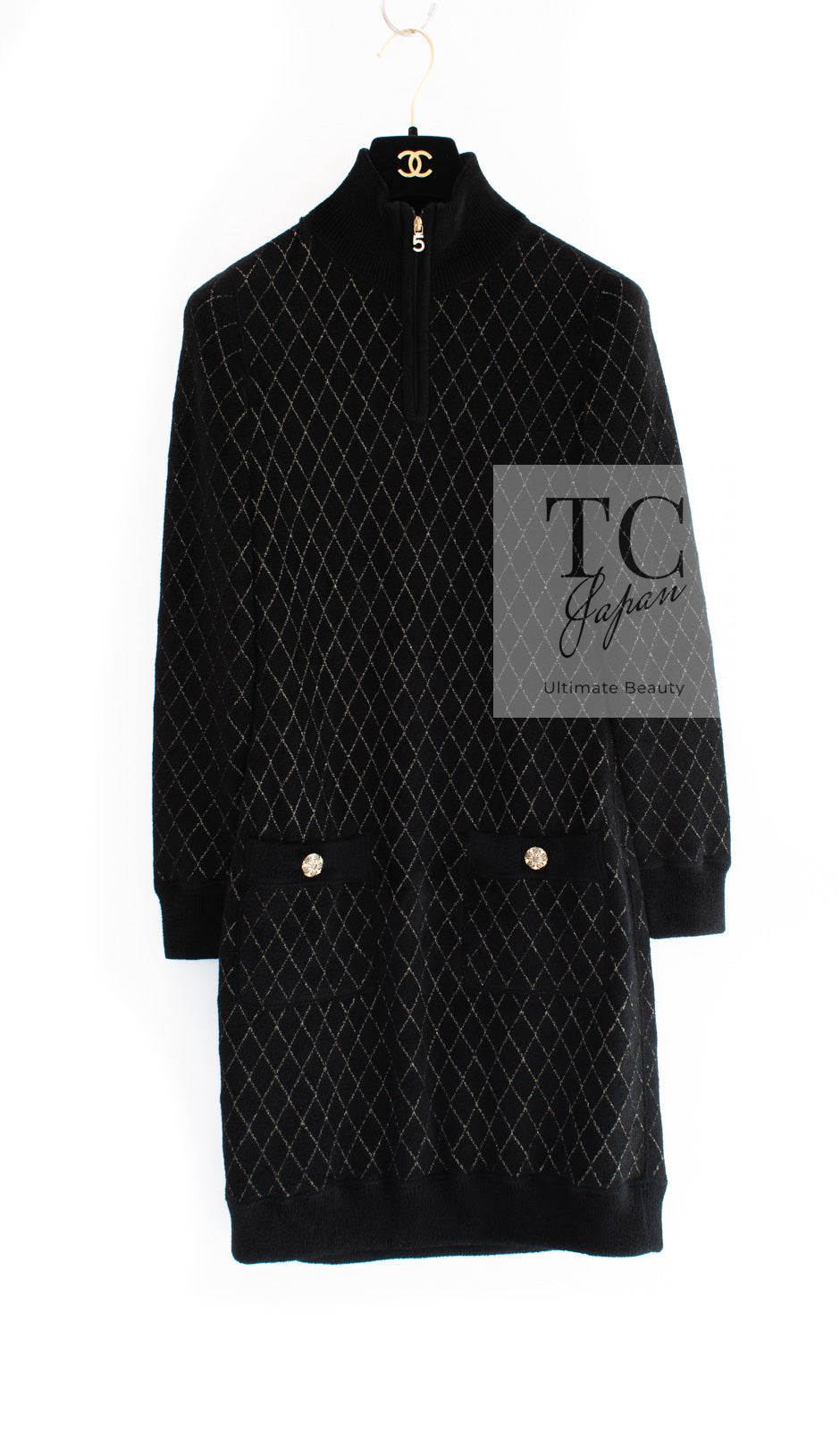 CHANEL 19B Black Gold No.5 Logo Zipper Velour Knit Stretch Dress 34 シャネル ブラック ゴールド No.5 ロゴ ジッパー ベロア ニット ストレッチ ワンピース 即発