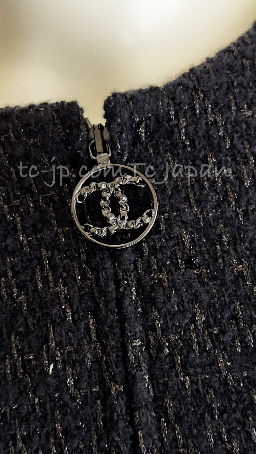 CHANEL 19B Black Metallic Zipper Wool Cropped Jacket 34 シャネル ブラック メタリック ジッパー ウール クロップド ジャケット 即発