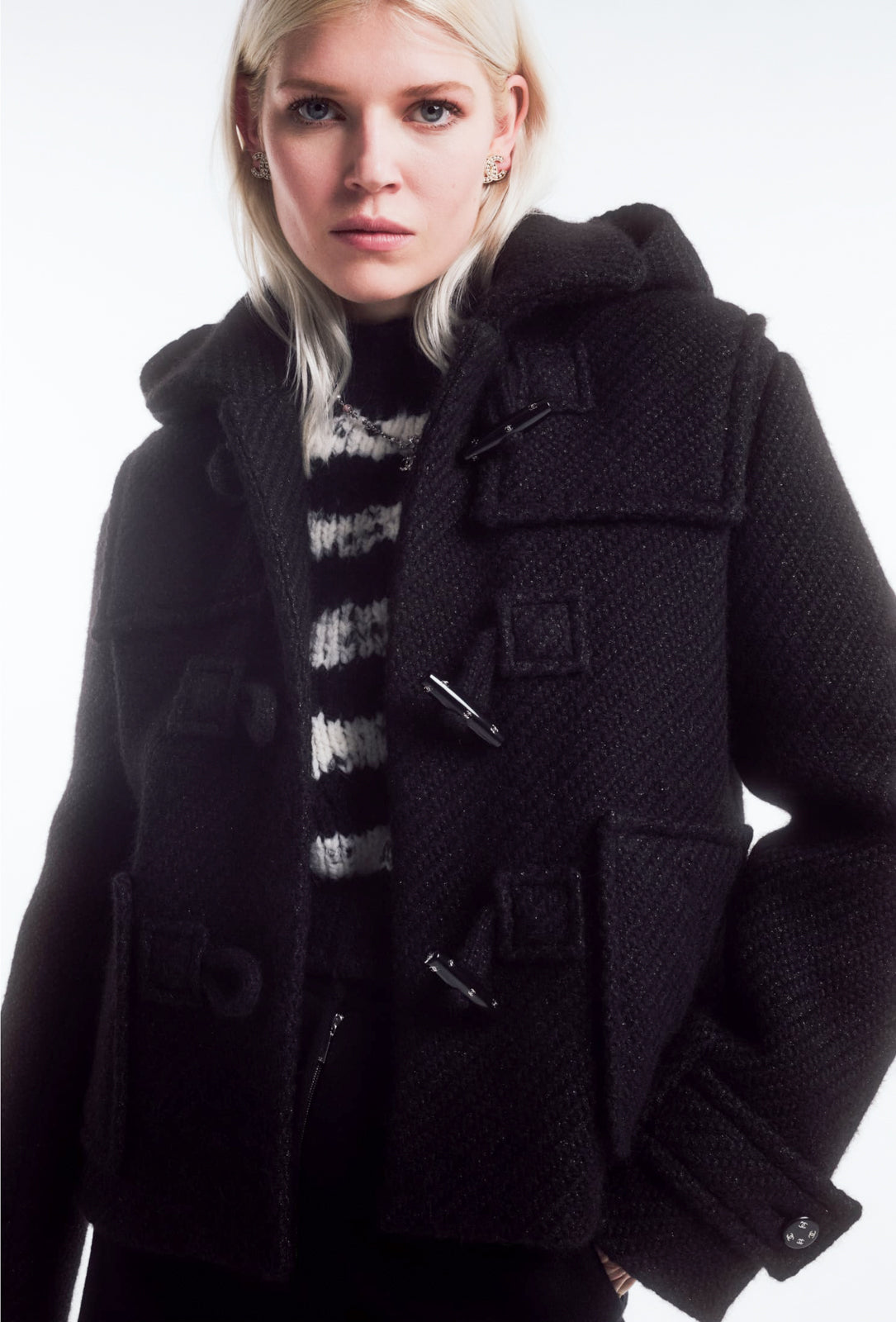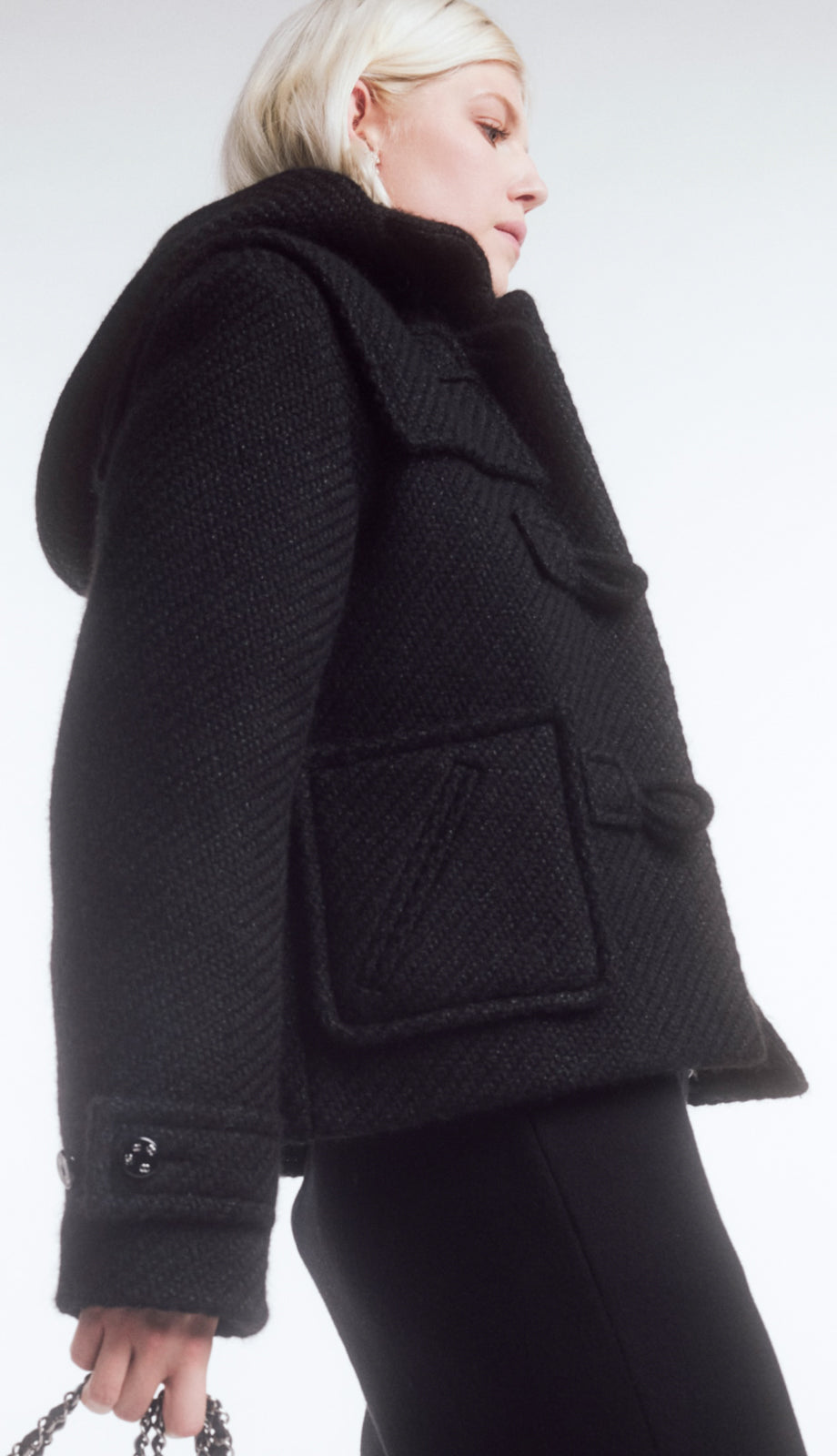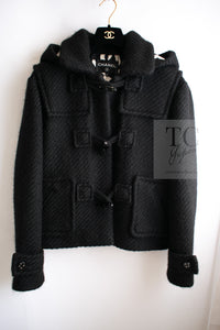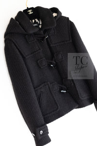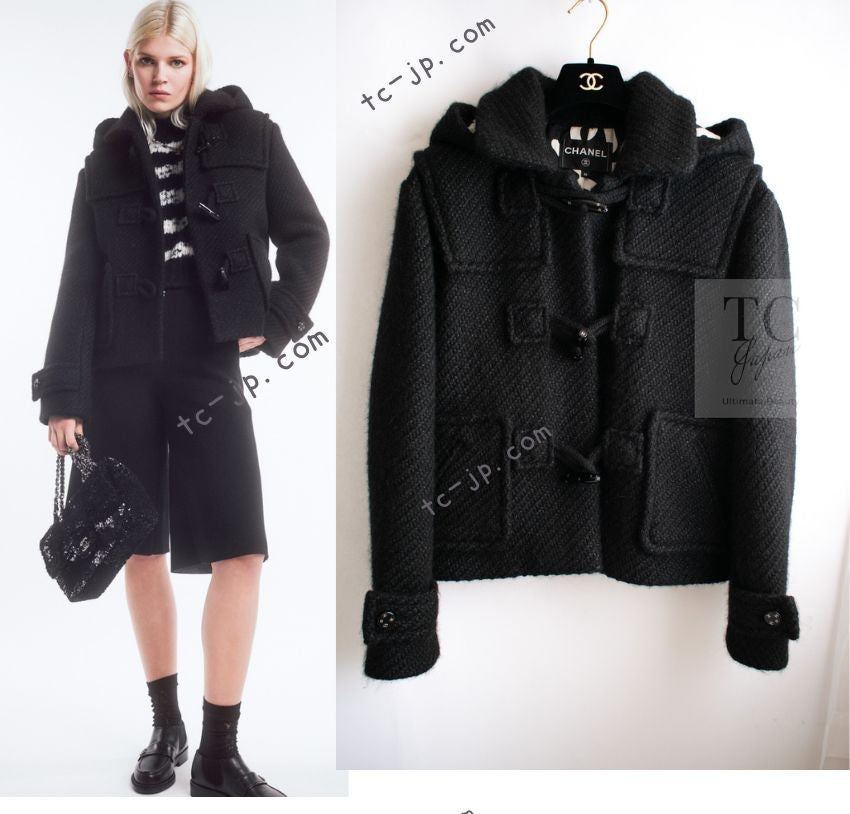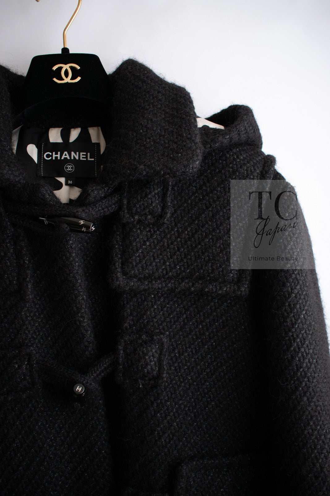 CHANEL 21B Black Wool Alpaca Blouson Duffel Jacket Coat 34 36 38 40 シャネル ブラック ウール アルパカ ブルゾン ダッフル ジャケット コート 即発