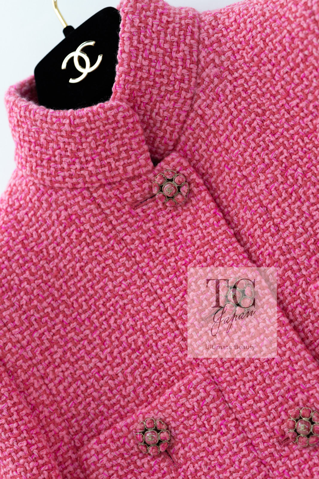 CHANEL 22A Pink Wool 100% Tweed Stand Mandarine Collar Jacket 34 36 シャネル ピンク ウール 100% ツイード マンダリン スタンド カラー ジャケット 即発