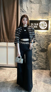 CHANEL 22C Black Sequin Glitter Stretch Jersey Jacket 38 40 42 シャネル ブラック スパンコール グリッター ストレッチ ジャージー ノーカラー ジャケット 即発