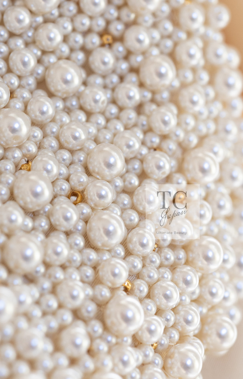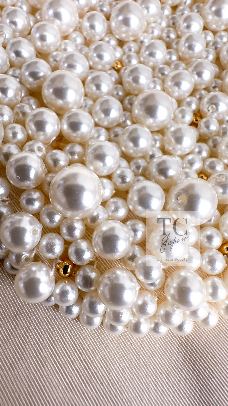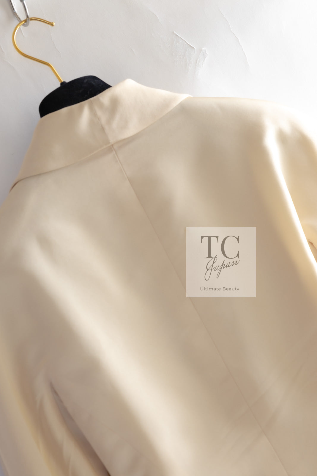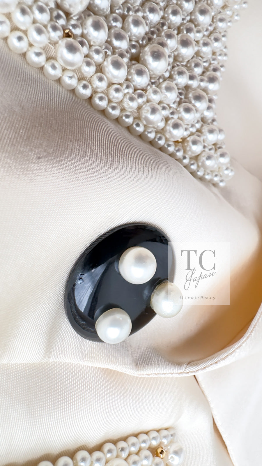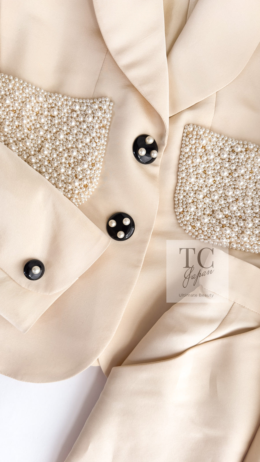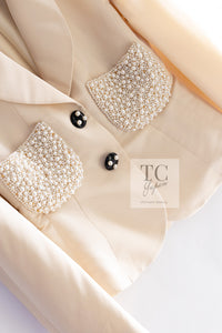 CHANEL 90S Vintage Ivory Cream Pearl Pocket Silk Skirt Jacket Suit 38 シャネル ヴィンテージ アイボリー クリーム パールいっぱい シルク スカート ジャケット スーツ 即発
