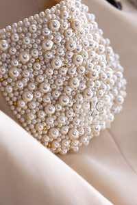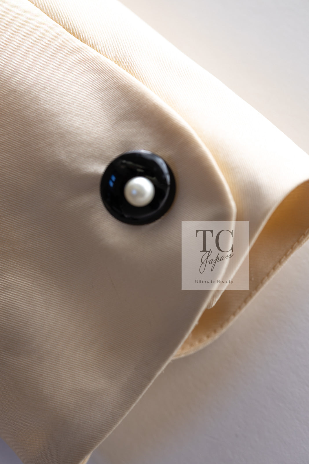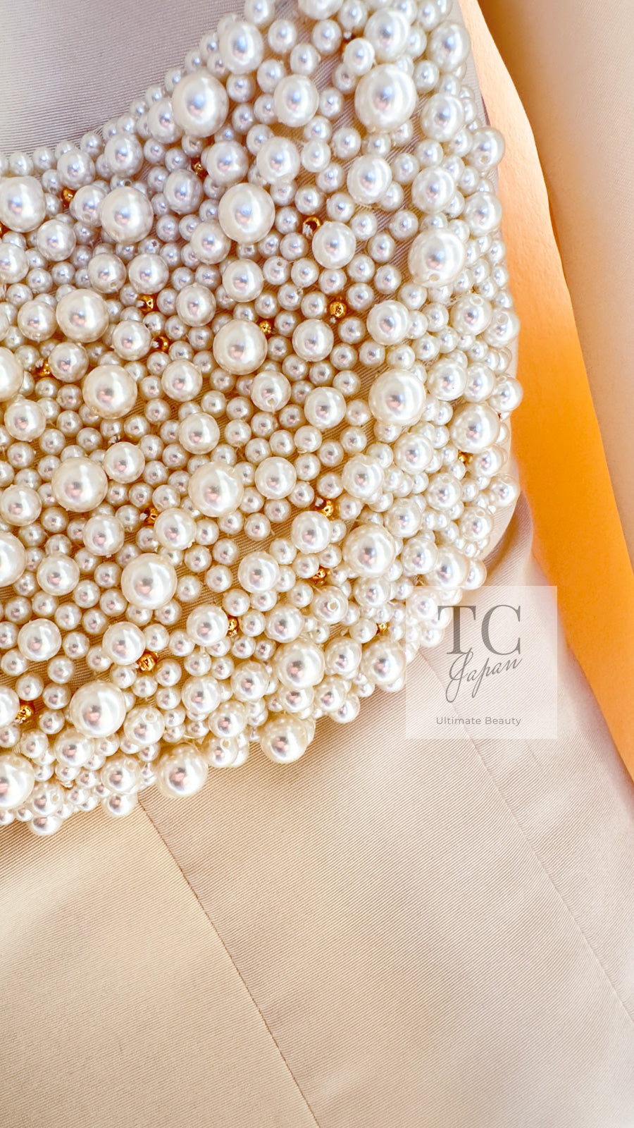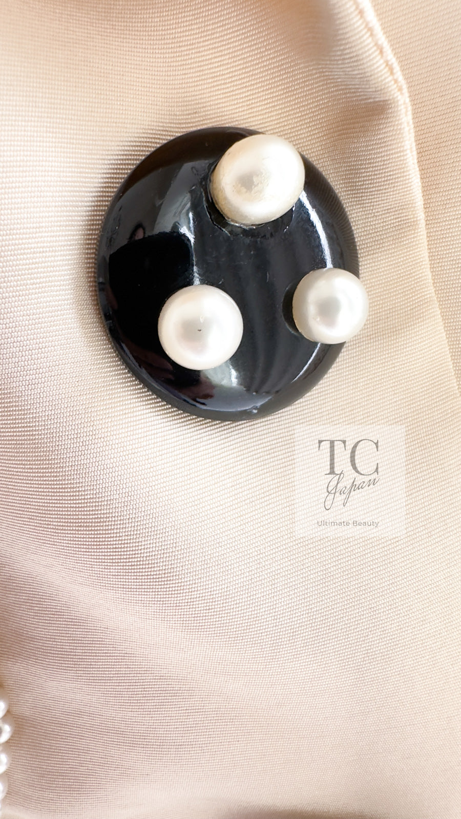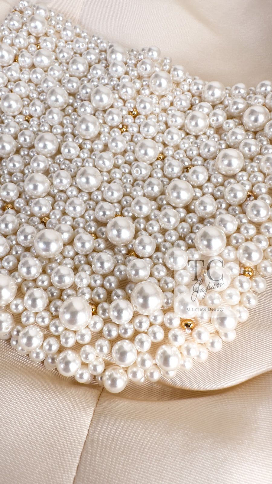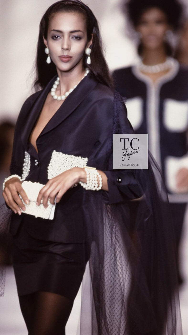 CHANEL 90S Vintage Ivory Cream Pearl Pocket Silk Skirt Jacket Suit 38 シャネル ヴィンテージ アイボリー クリーム パールいっぱい シルク スカート ジャケット スーツ 即発
