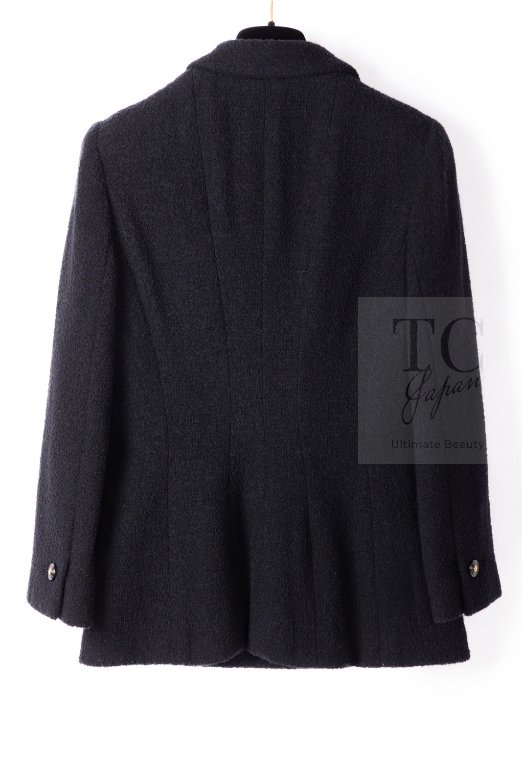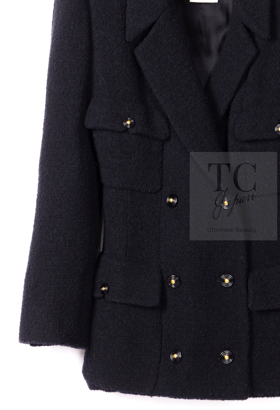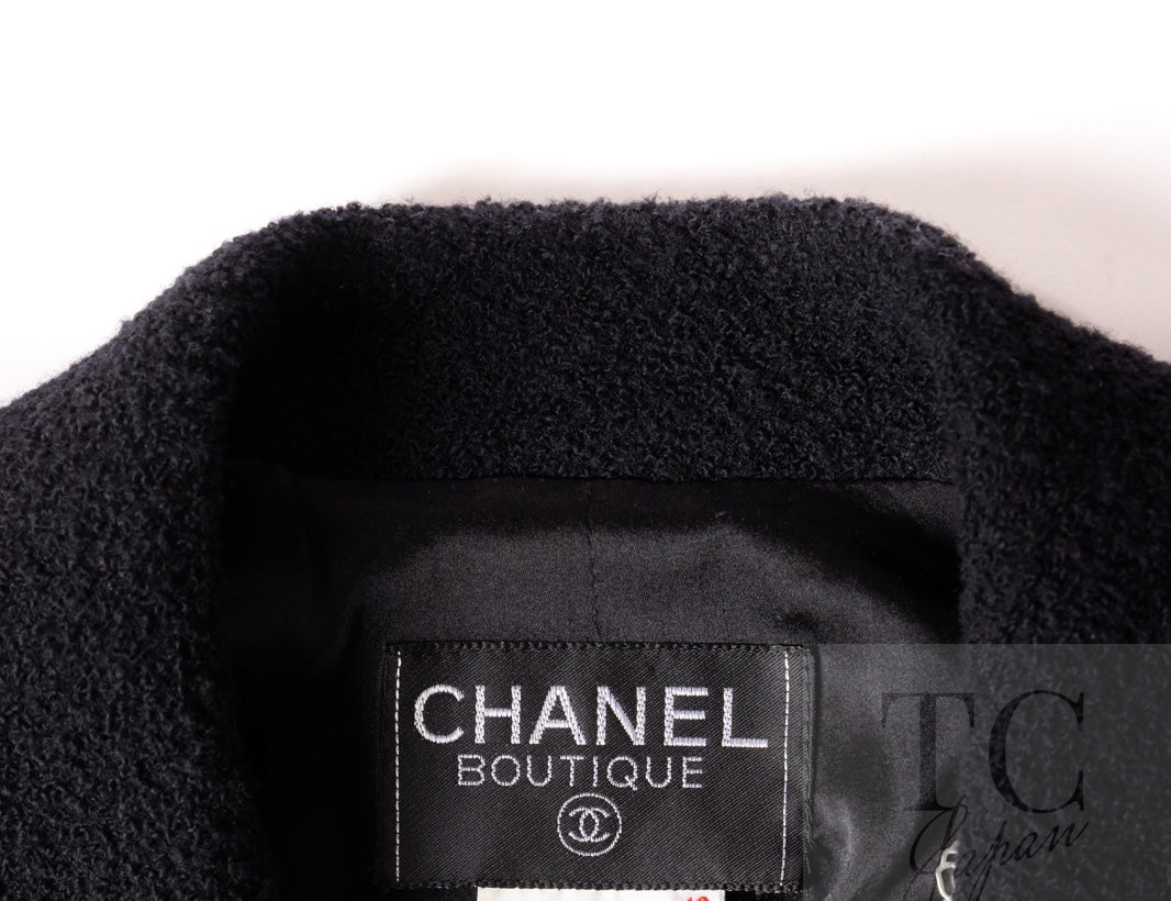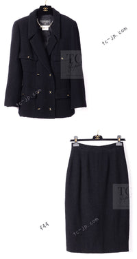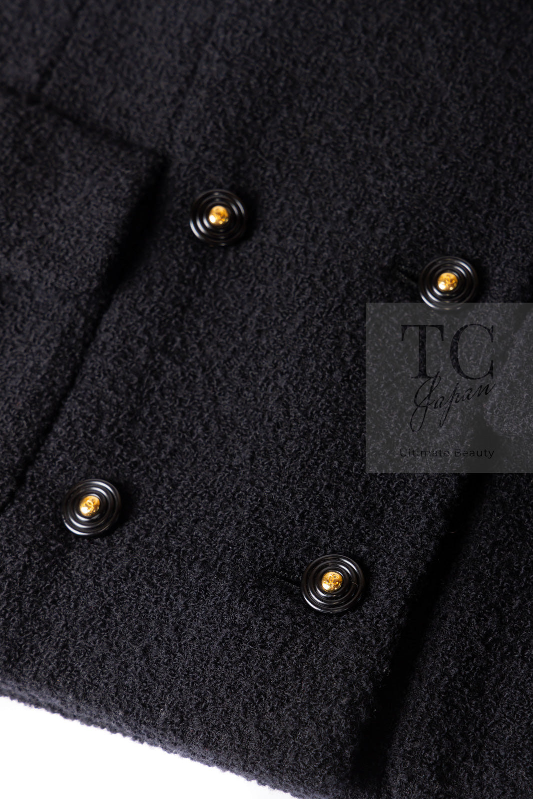 CHANEL 95A Vintage Black Wool CC Logo Buttons Double Tweed Jacket Skirt Suit 44 46 シャネル ヴィンテージ ブラック ウール CCロゴボタン ダブル ツイード ジャケット スカート スーツ 即発