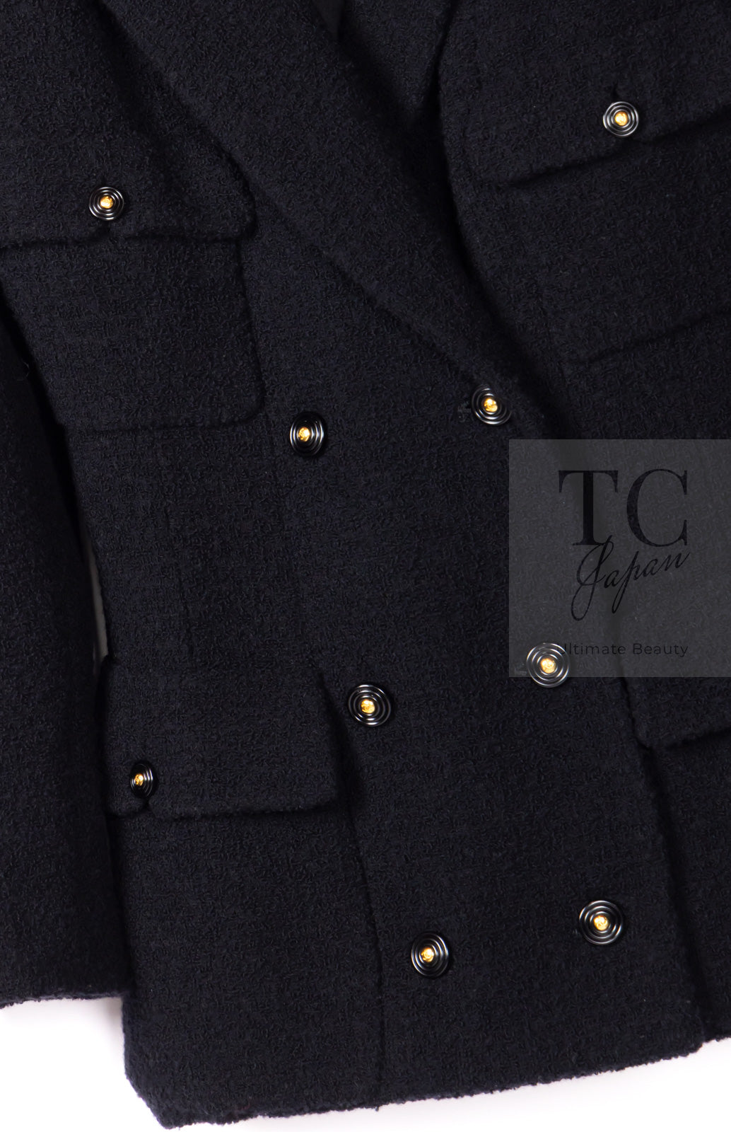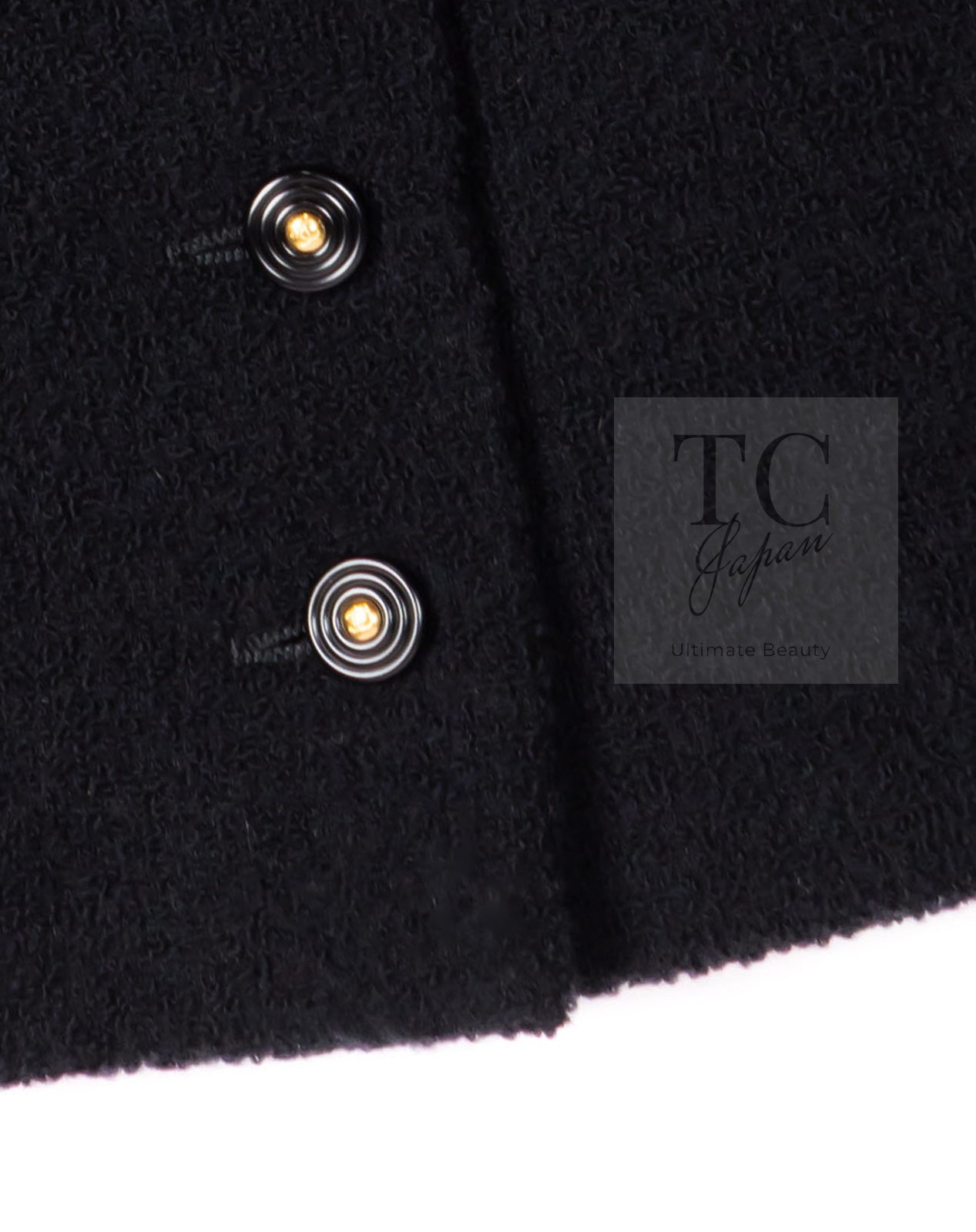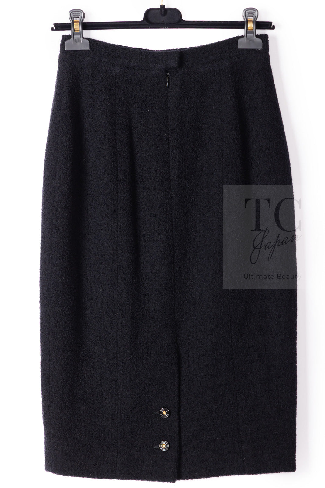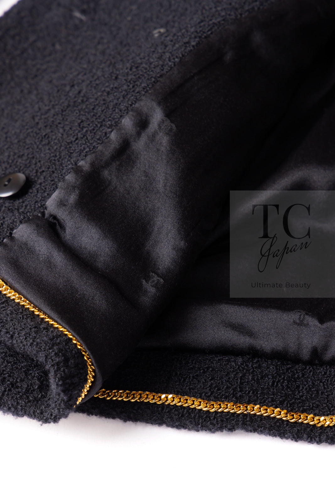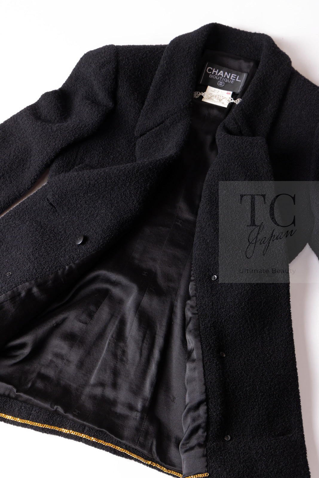 CHANEL 95A Vintage Black Wool CC Logo Buttons Double Tweed Jacket Skirt Suit 44 46 シャネル ヴィンテージ ブラック ウール CCロゴボタン ダブル ツイード ジャケット スカート スーツ 即発