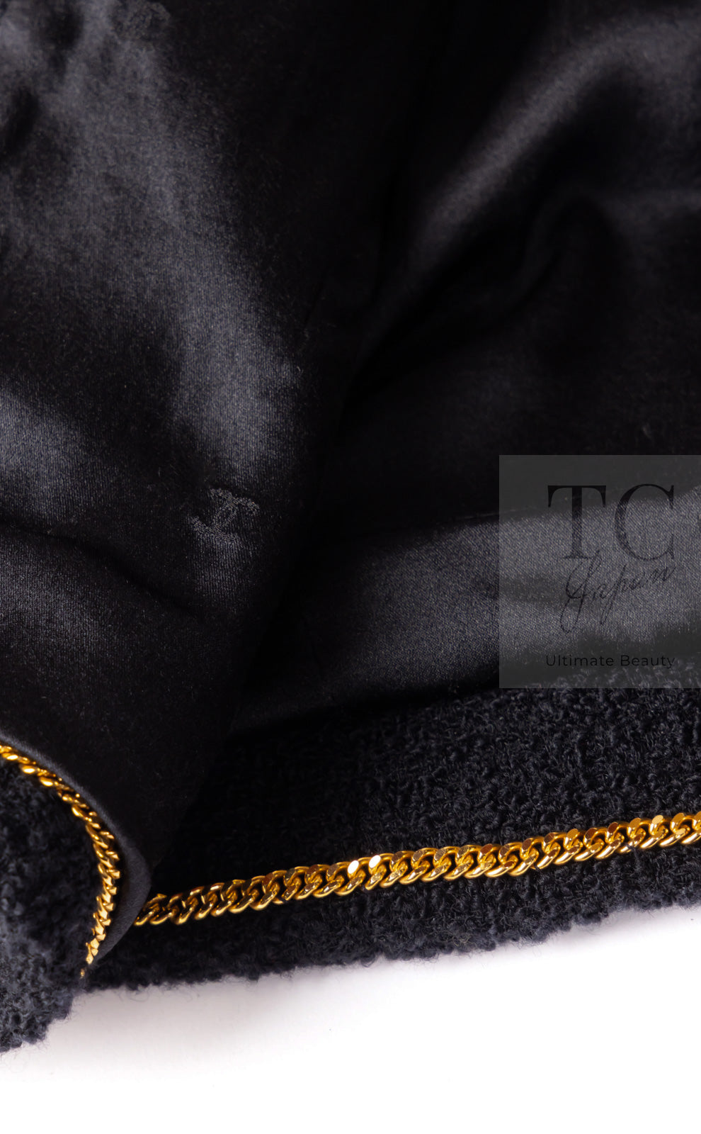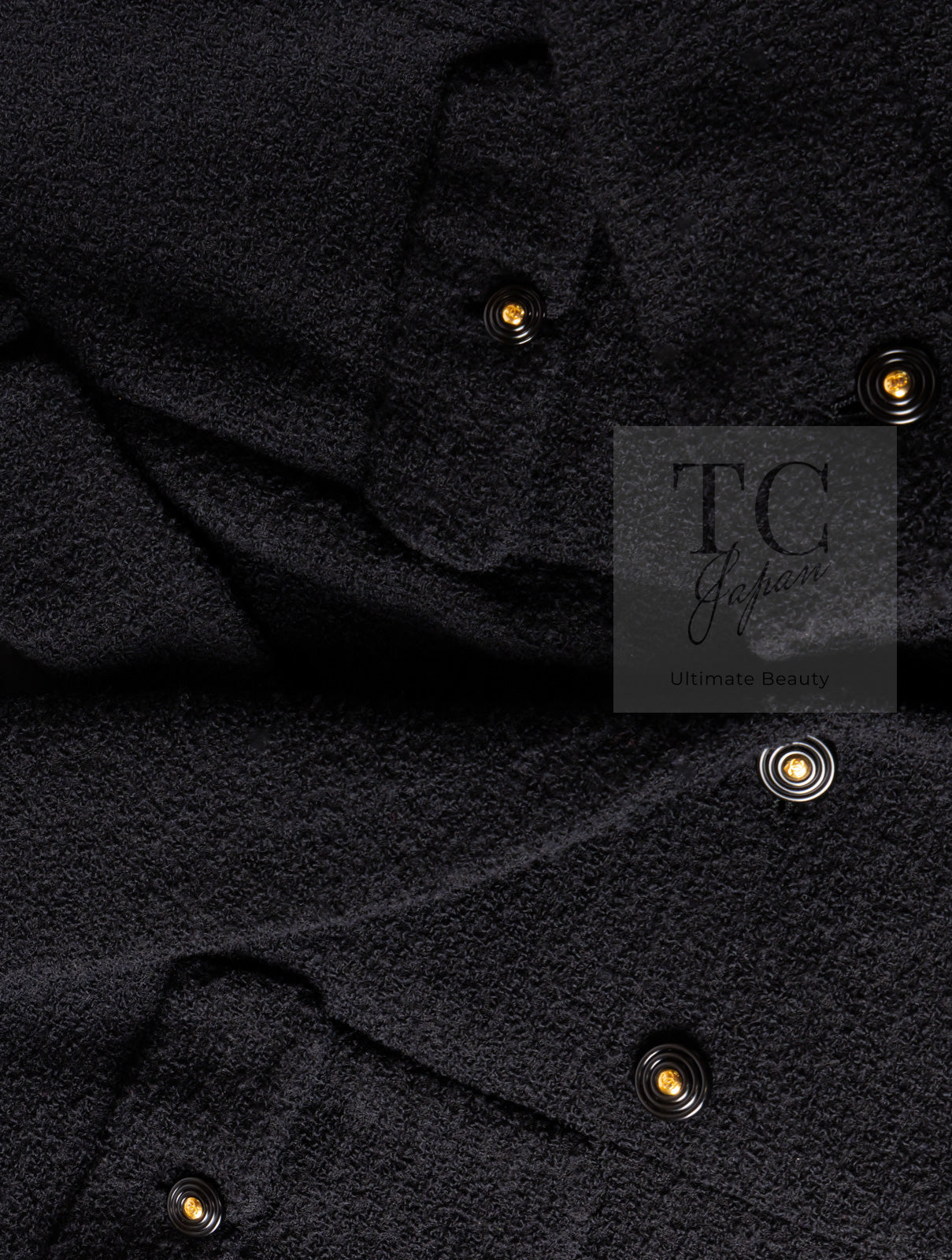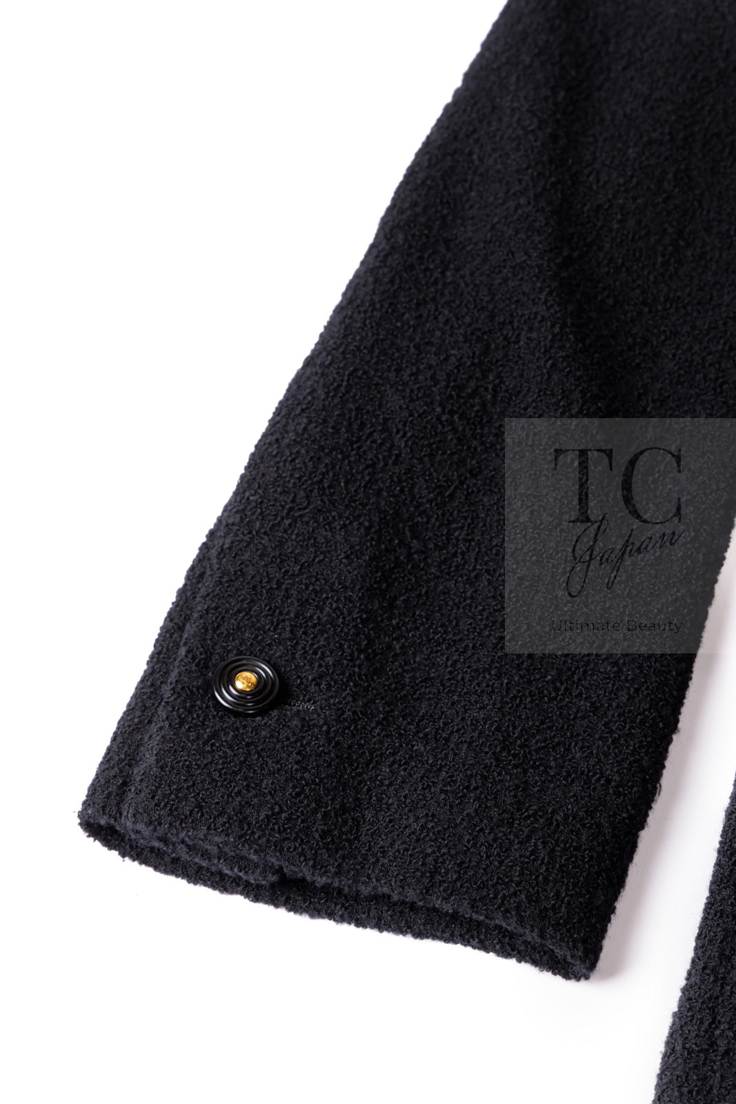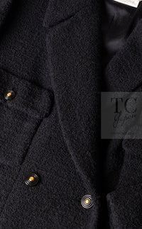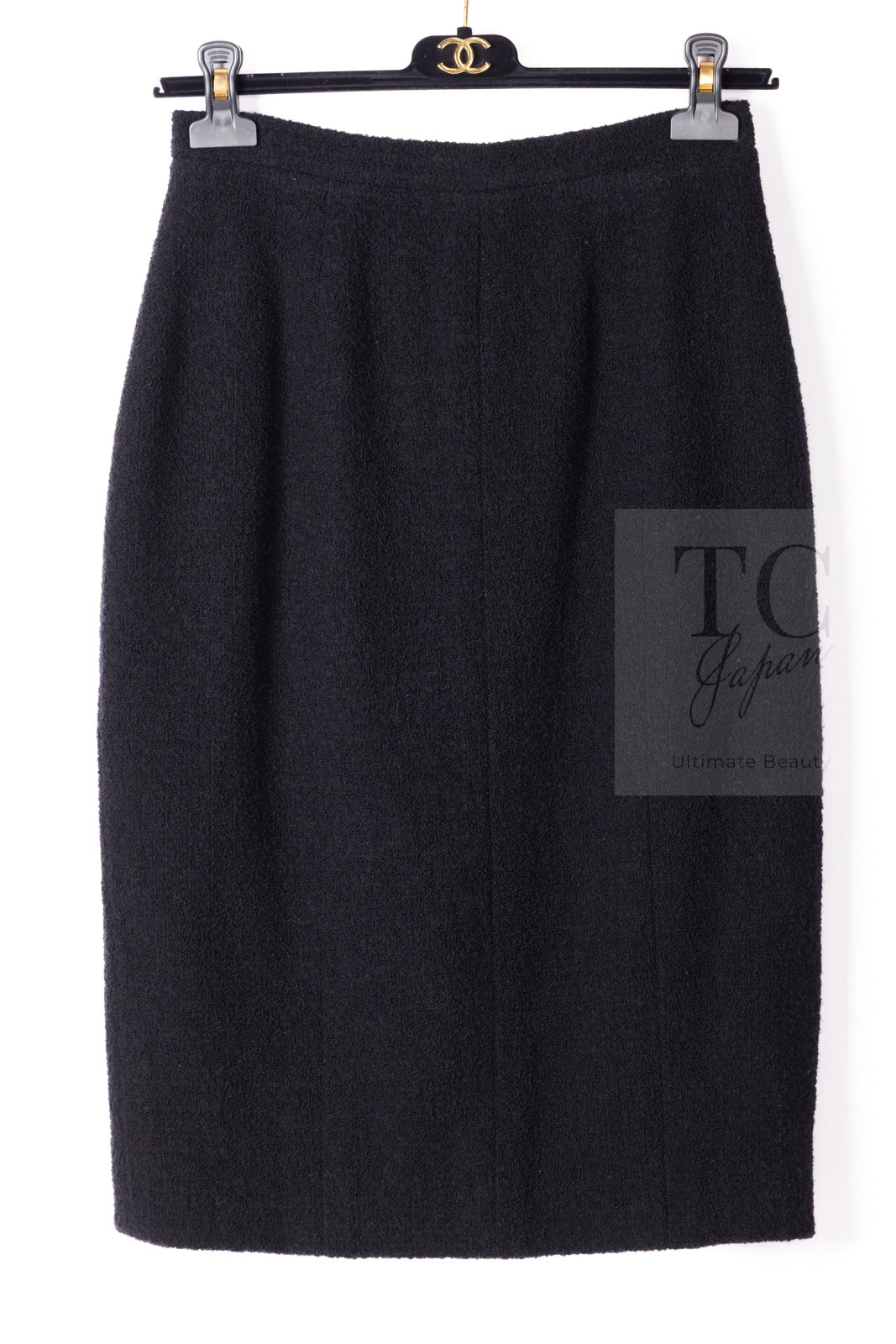 CHANEL 95A Vintage Black Wool CC Logo Buttons Double Tweed Jacket Skirt Suit 44 46 シャネル ヴィンテージ ブラック ウール CCロゴボタン ダブル ツイード ジャケット スカート スーツ 即発
