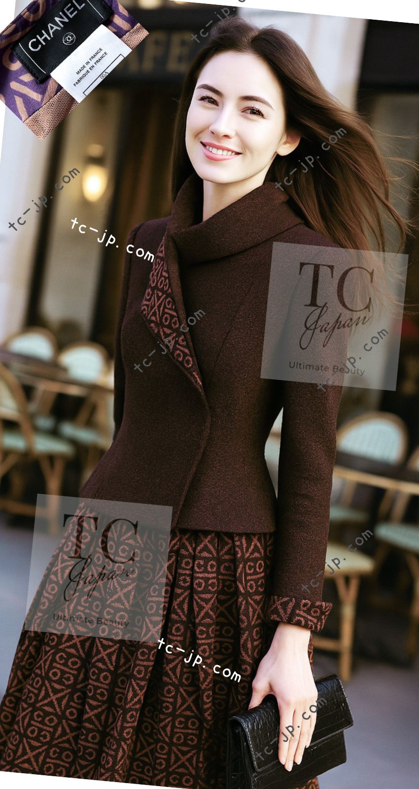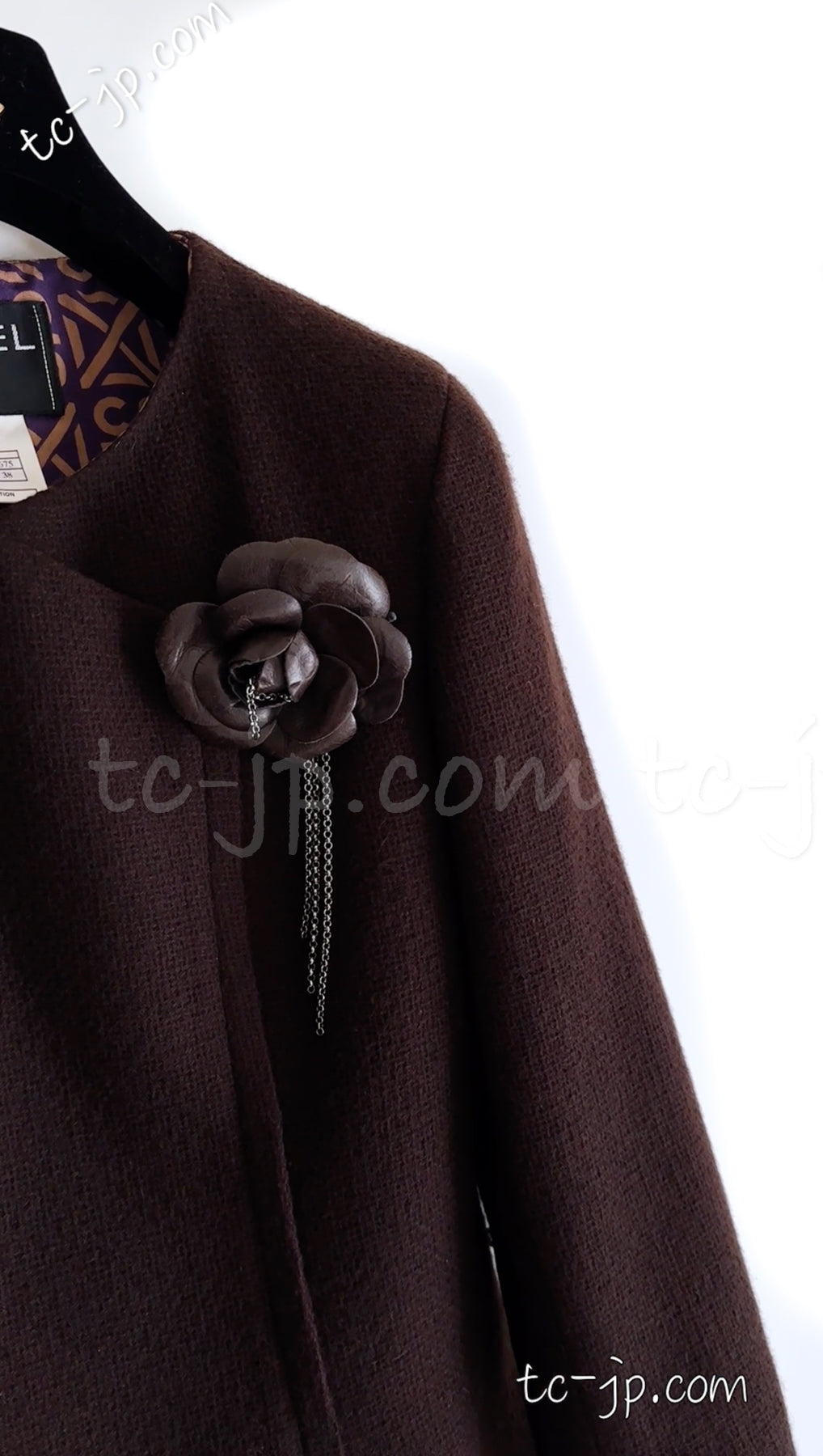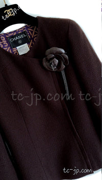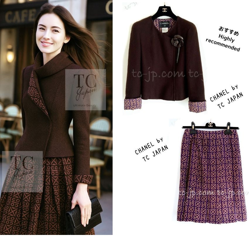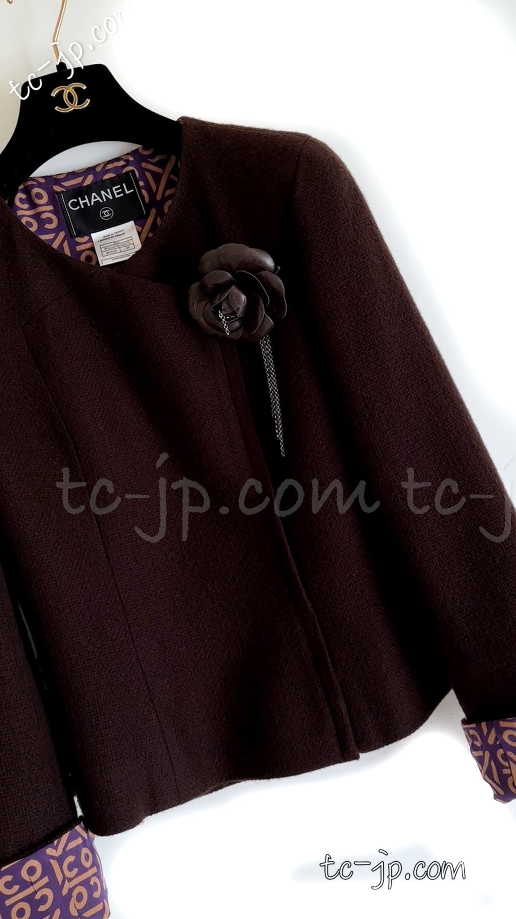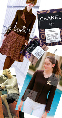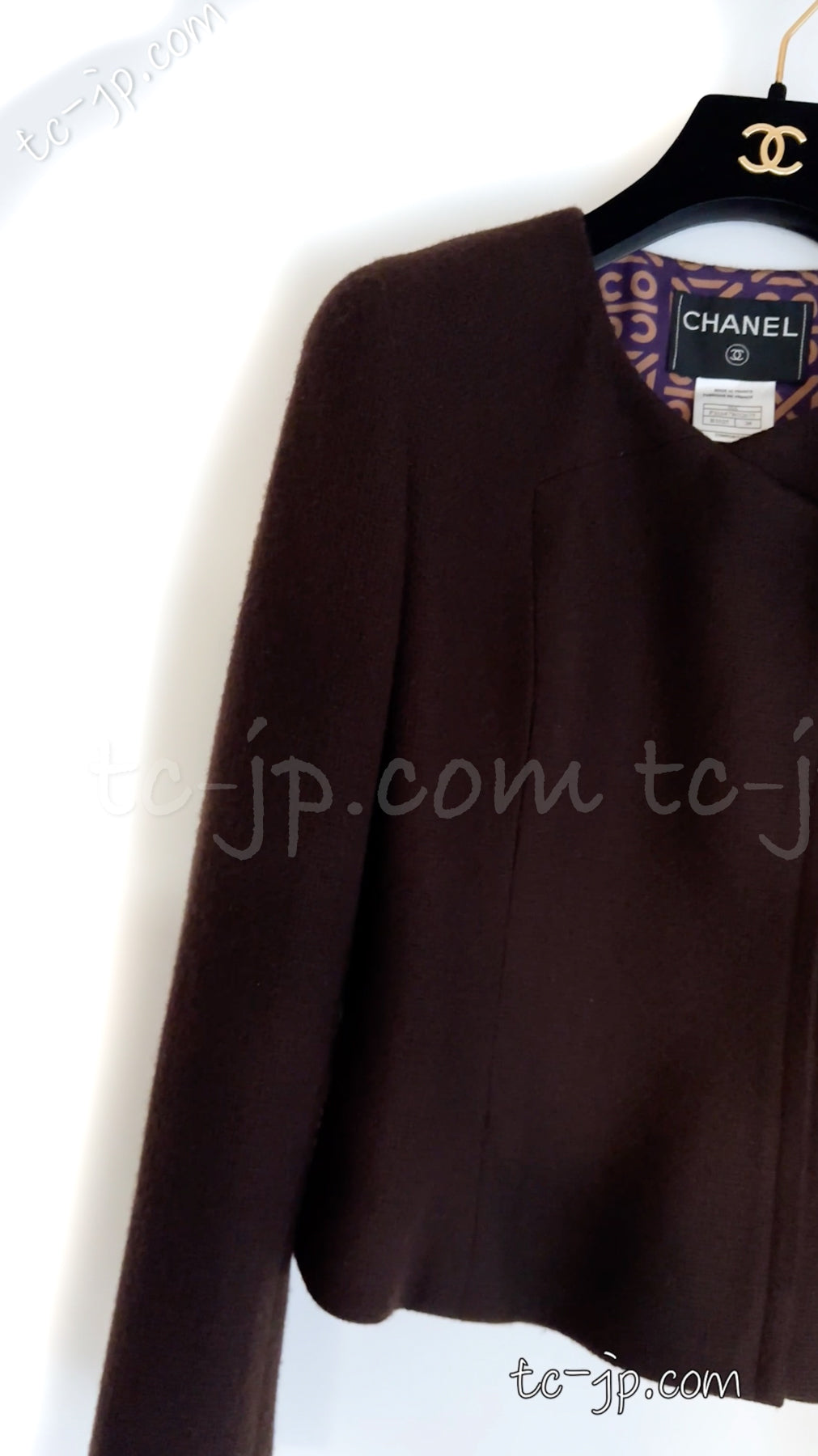 CHANEL 00A Brown Cashmere 100% Zipper Jacket Skirt Suit 38 シャネル ブラウン カシミア ジッパー ジャケット スカート スーツ 即発