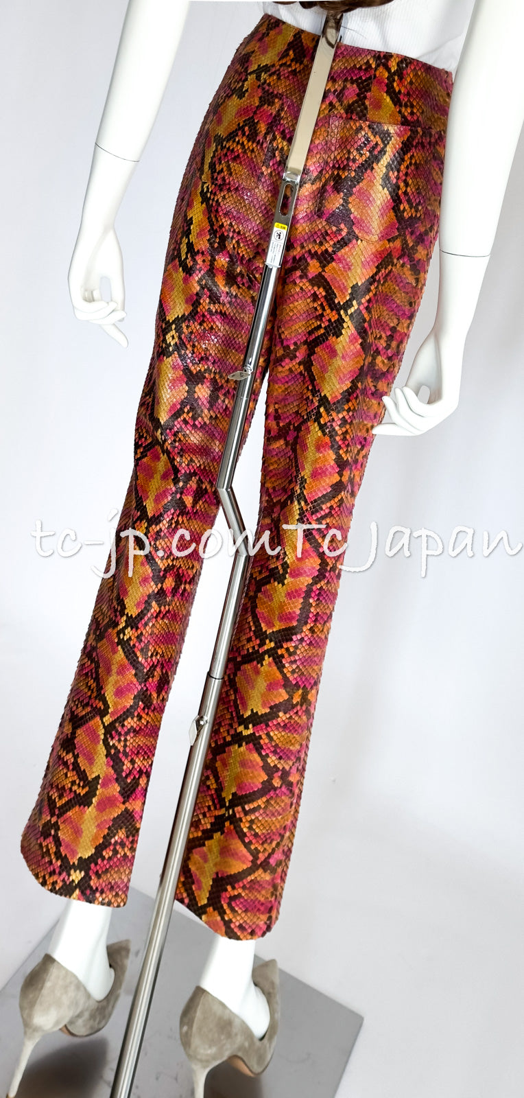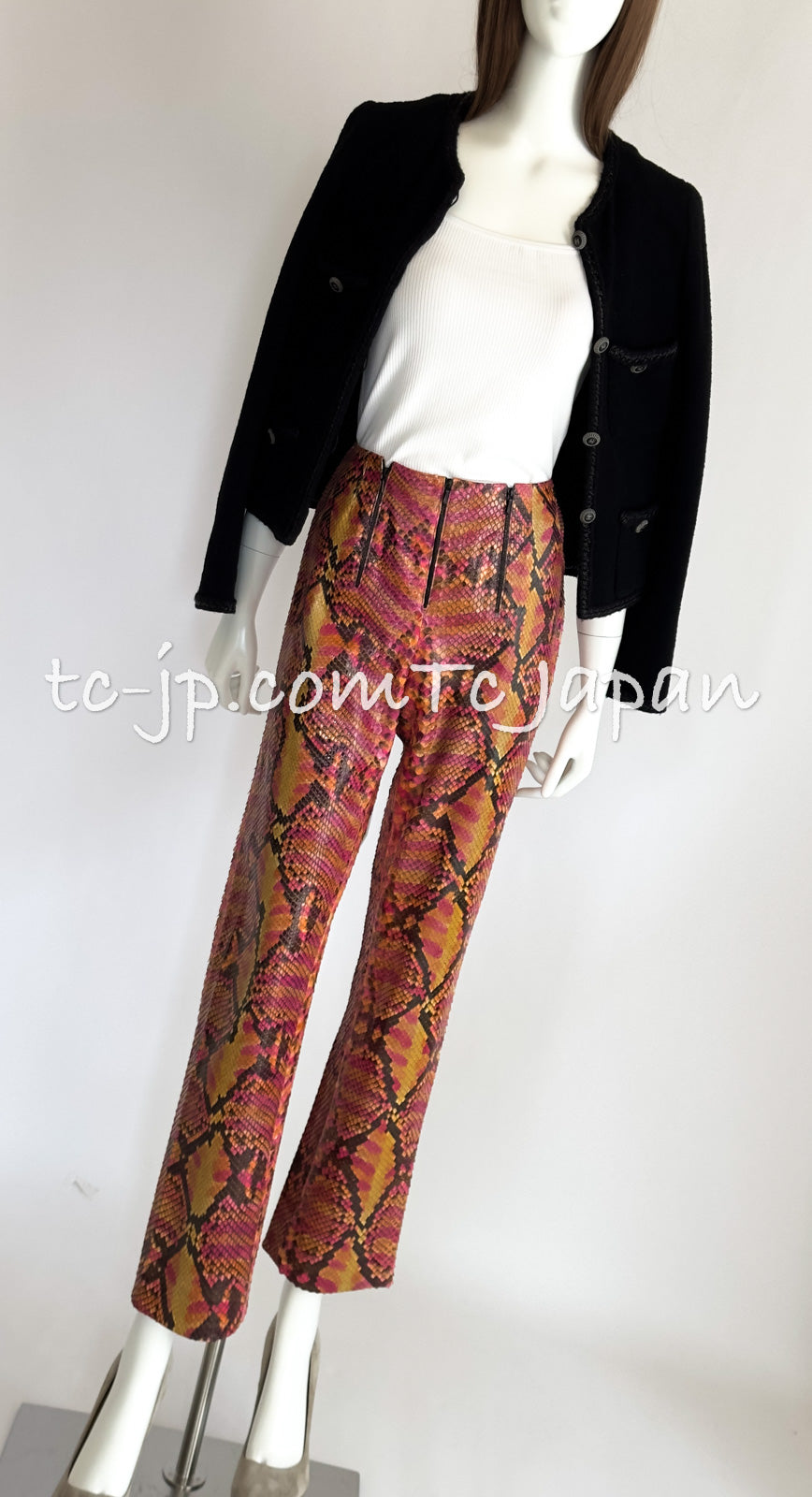 CHANEL 00T Python Leather Pants Pumps Heels Shoes 40 シャネル 高級パイソン レザー パンツ パンプス ヒール シューズ 即発