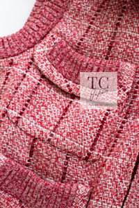 CHANEL 01S Red Linen Tweed Sequin Trim Vest Tops 38 シャネル レッド リネン ツイード スパンコール トリム ベスト ジレ トップス 即発
