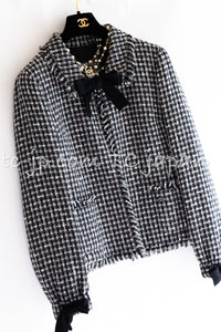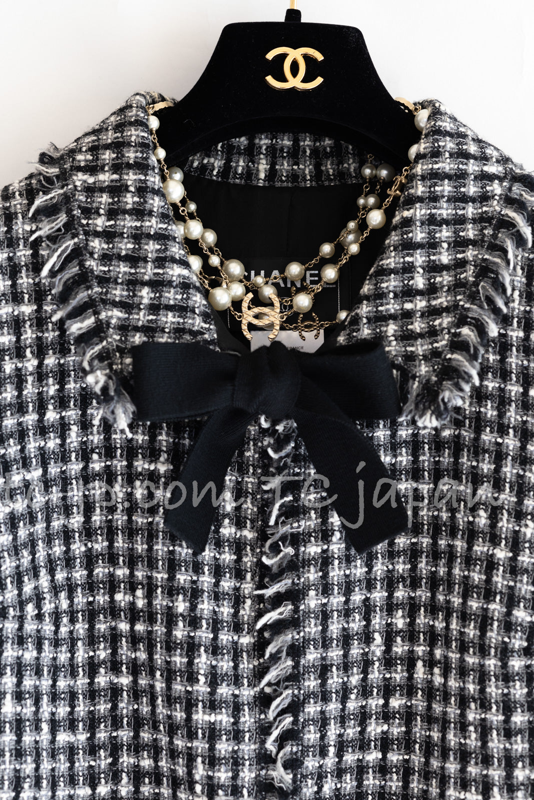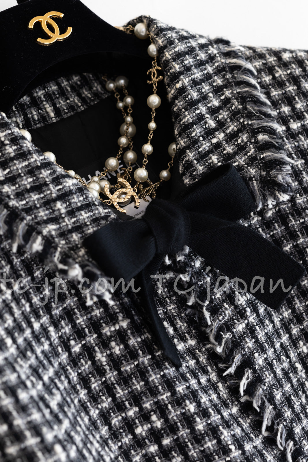CHANEL 04PF Black Ivory Bow Ribbon Jacket Skirt 36 シャネル ブラック アイボリー リボン ツイード ジャケット スカート 即発