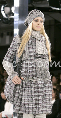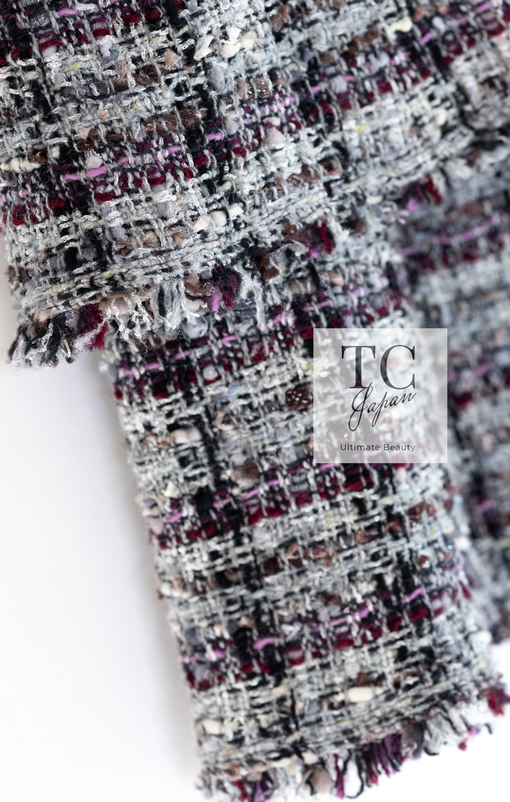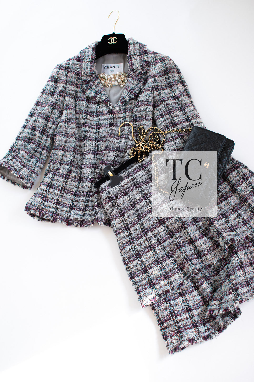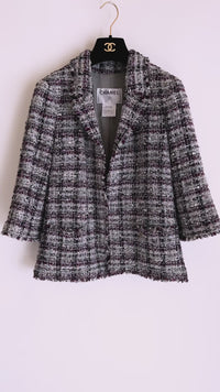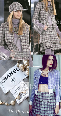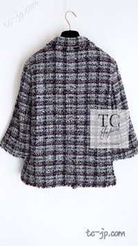 CHANEL 05A Gray Purple Tweed Jacket Skirt Suit 40 シャネル グレー パープル ツイード ジャケット スカート スーツ 即発