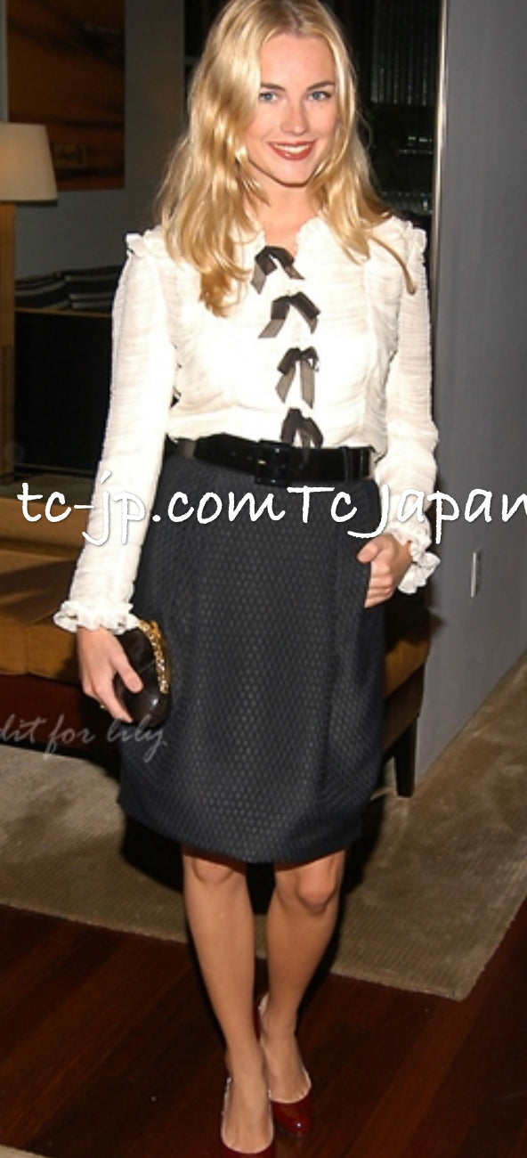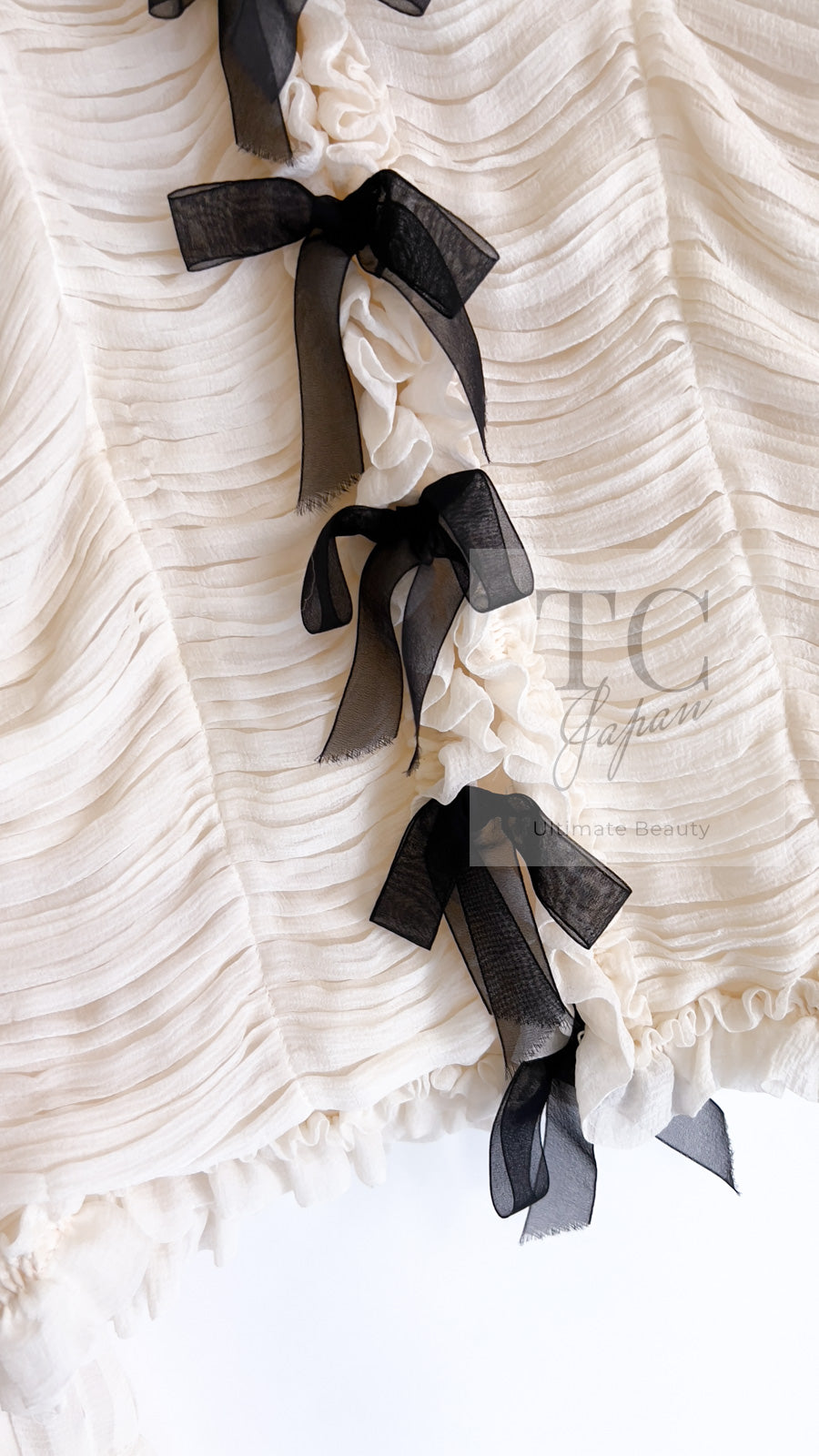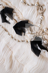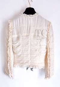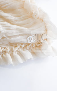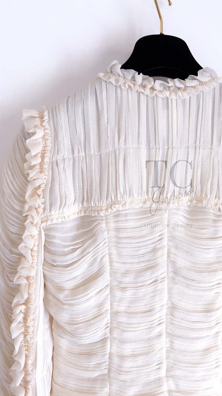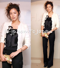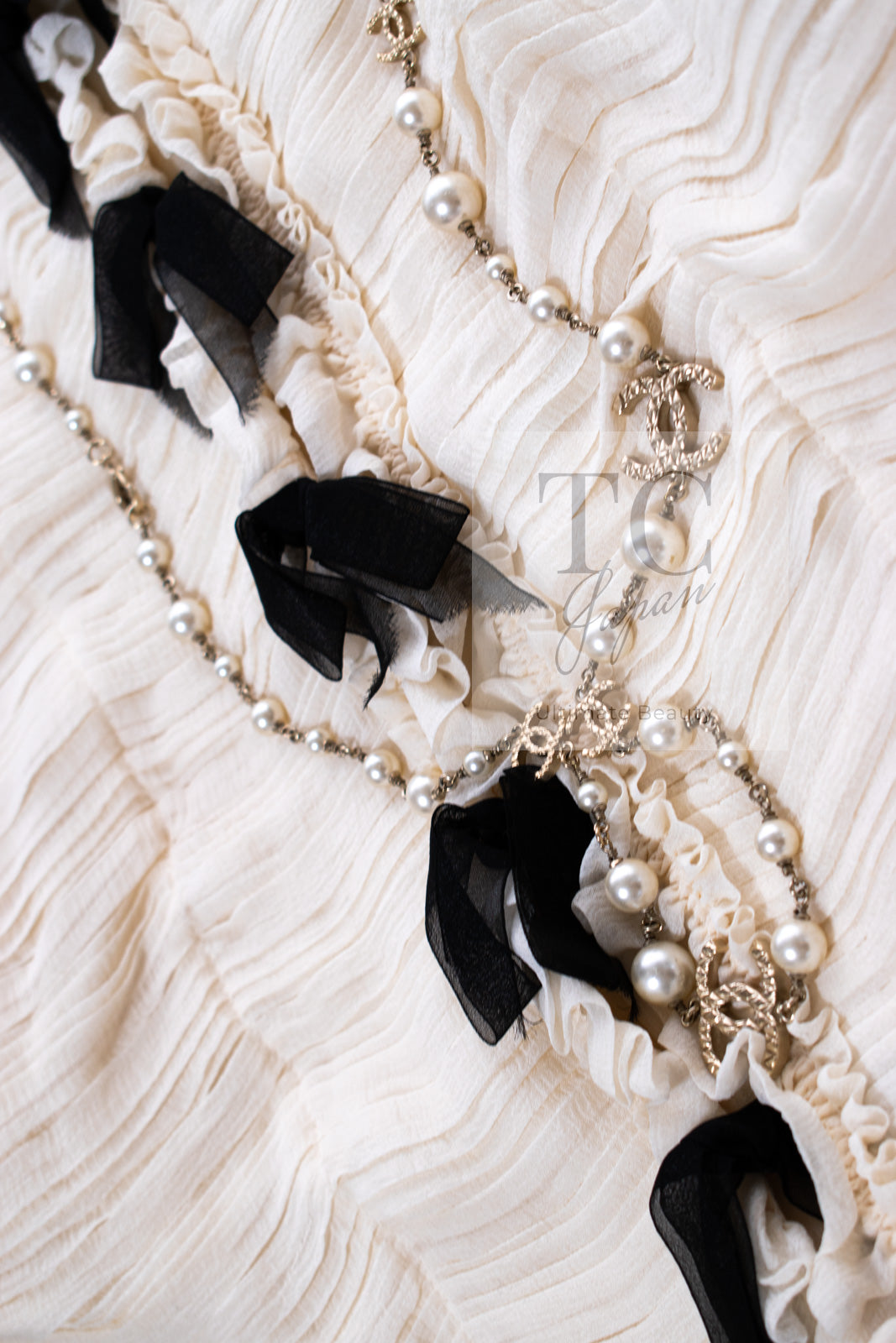 CHANEL 06A Creme Ivory Ribbon Silk Cardigan Jacket Top 34 36 38 シャネル クリーム アイボリー リボン シルク ブラウス カーディガン ジャケット 即発