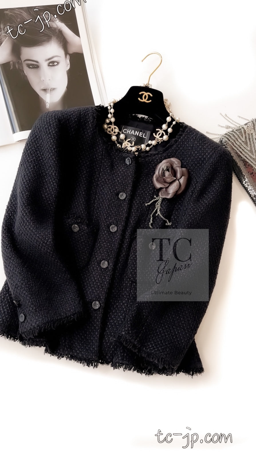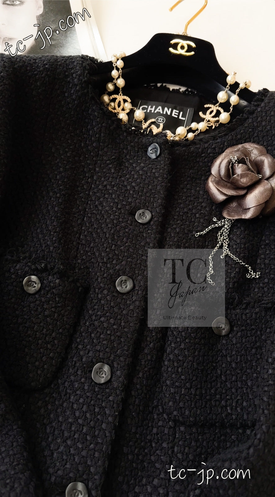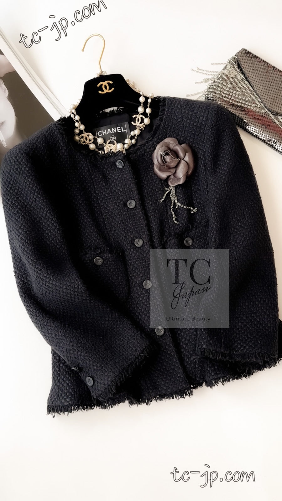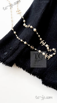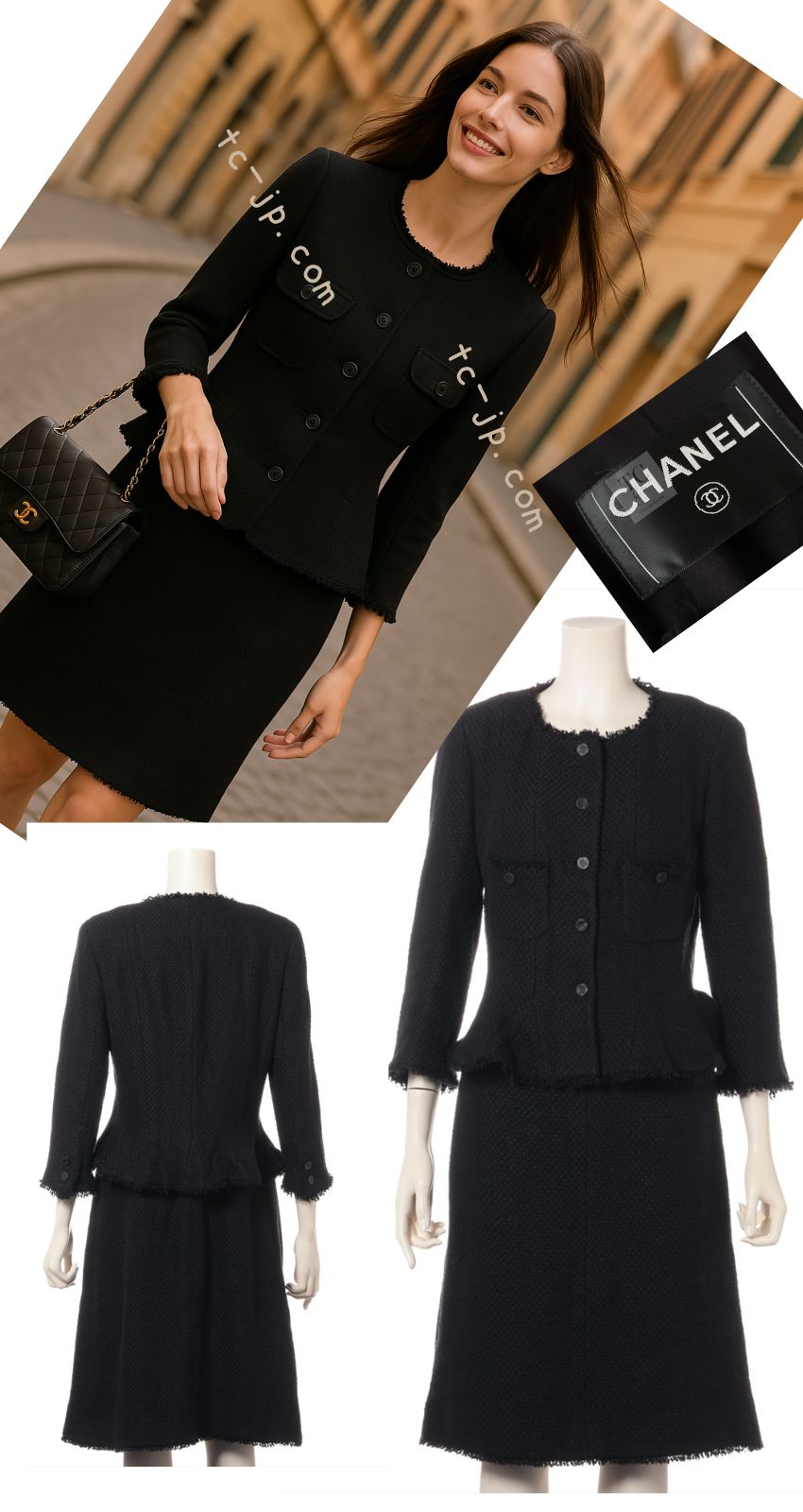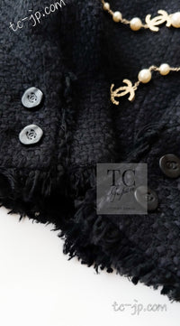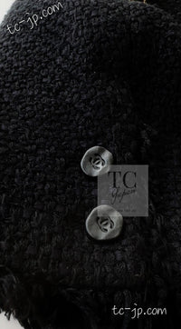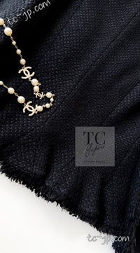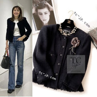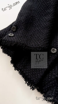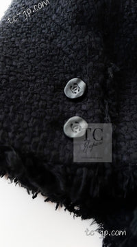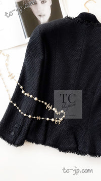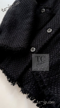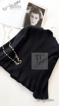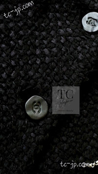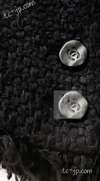 CHANEL 06S Black Silk Cotton Collarless Tweed Jacket Skirt Suit 40 42 シャネル ブラック シルク コットン ノーカラー ツイード ジャケット スカート スーツ 即発