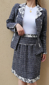 CHANEL 06S Gray Beige CC Logo Tweed Jacket Skirt Suit 38 シャネル CCロゴ グレー ベージュ ツイード ジャケット スカート スーツ 即発