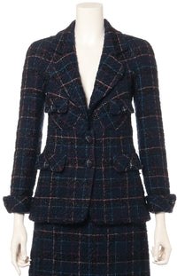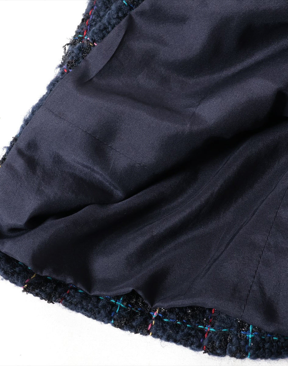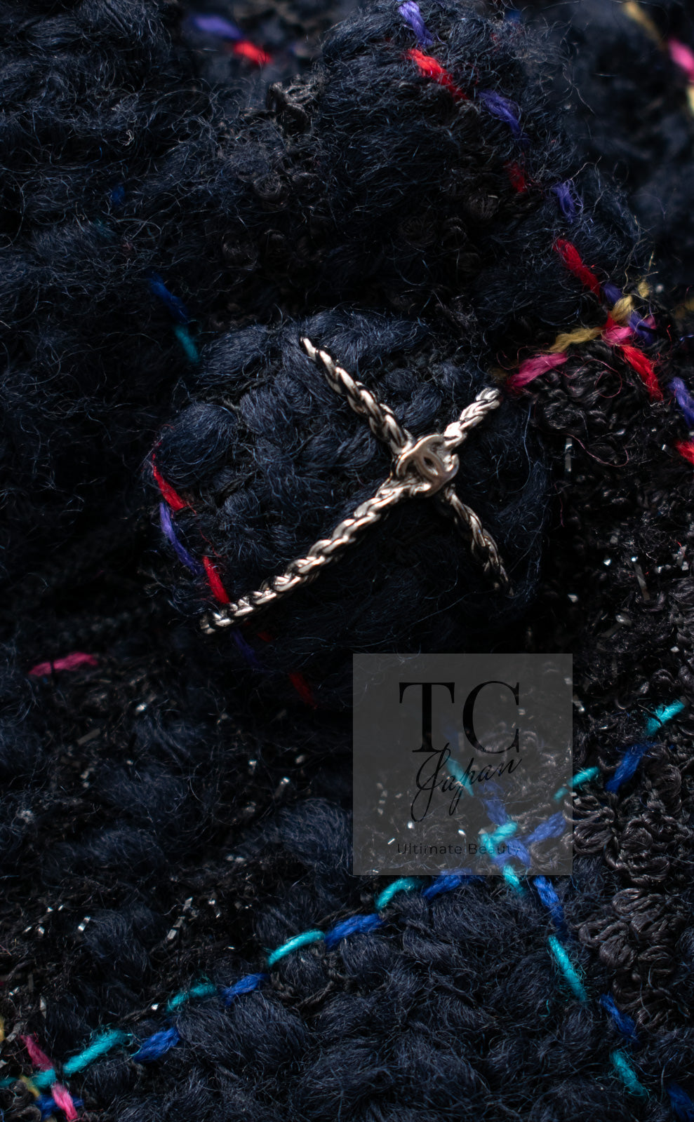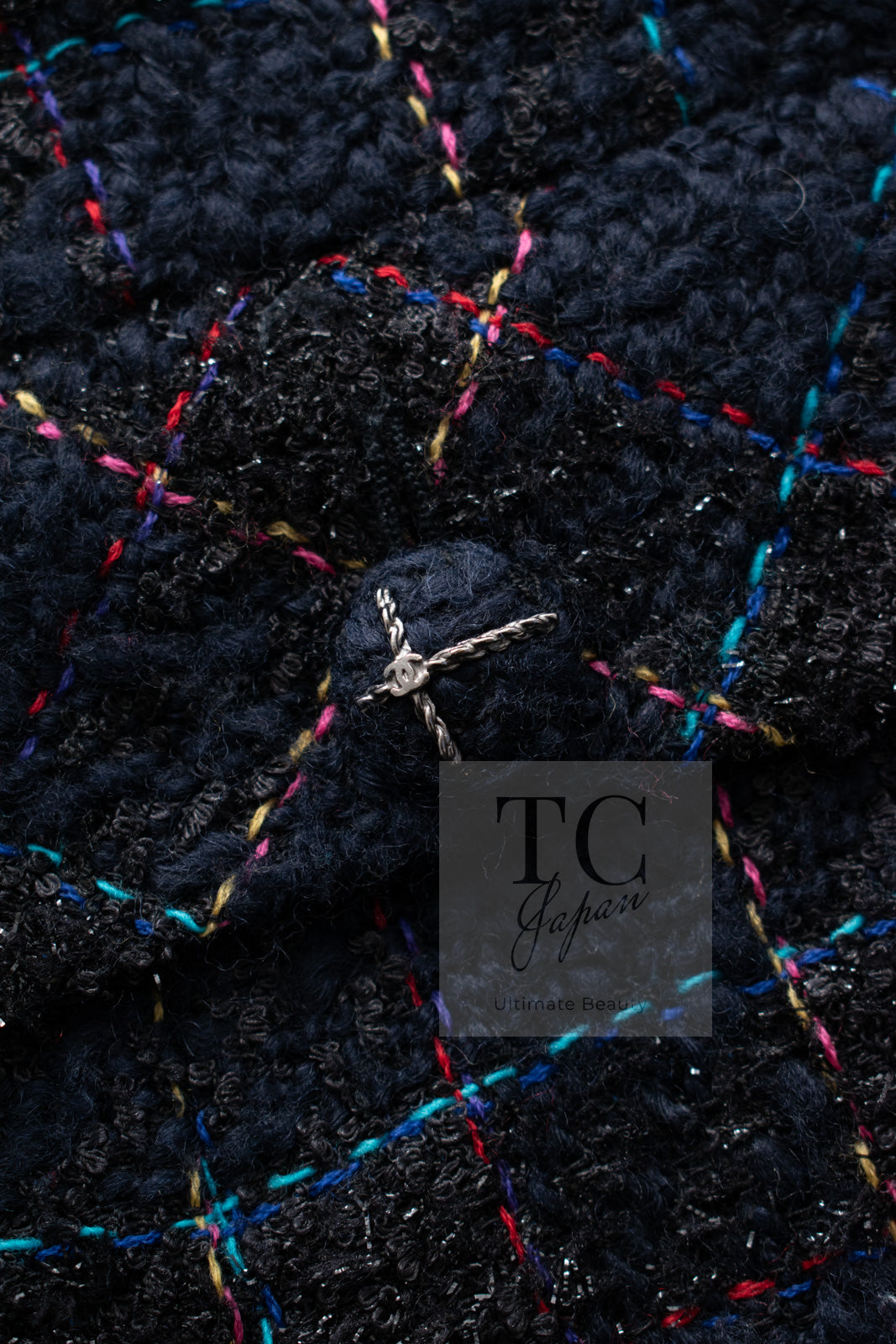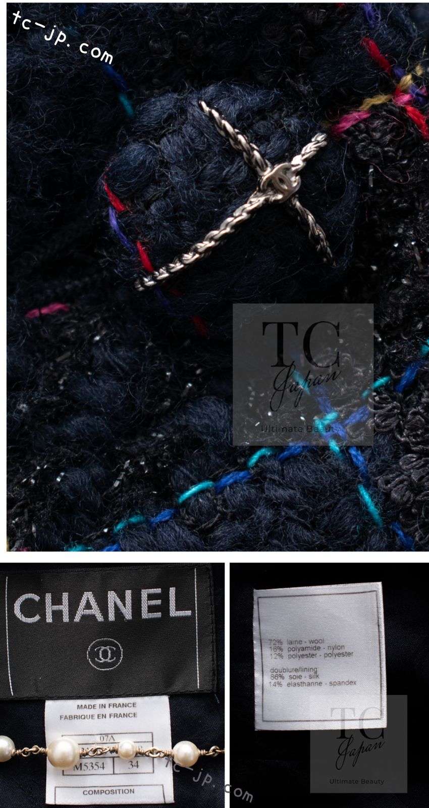 CHANEL 07A Dark Navy Multicolor Tweed Jacket Skirt Suit 34 シャネル ダーク ネイビー マルチカラー ツイード ジャケット スカート スーツ 即発