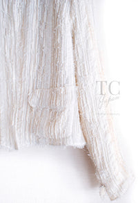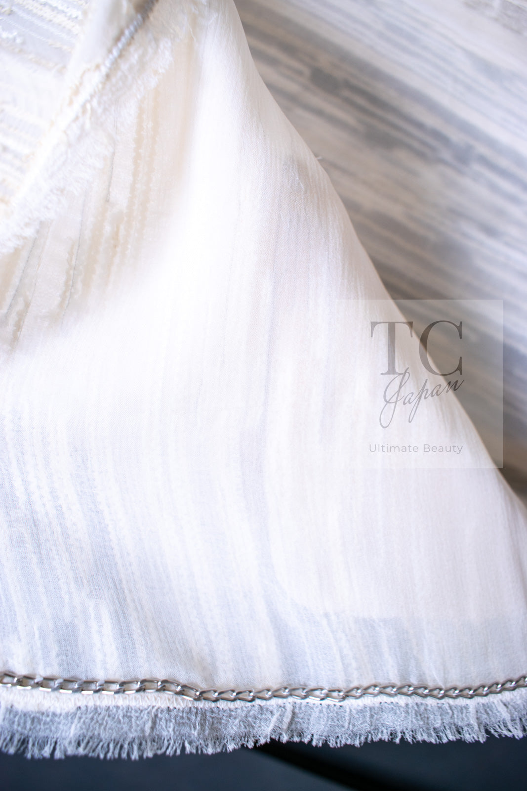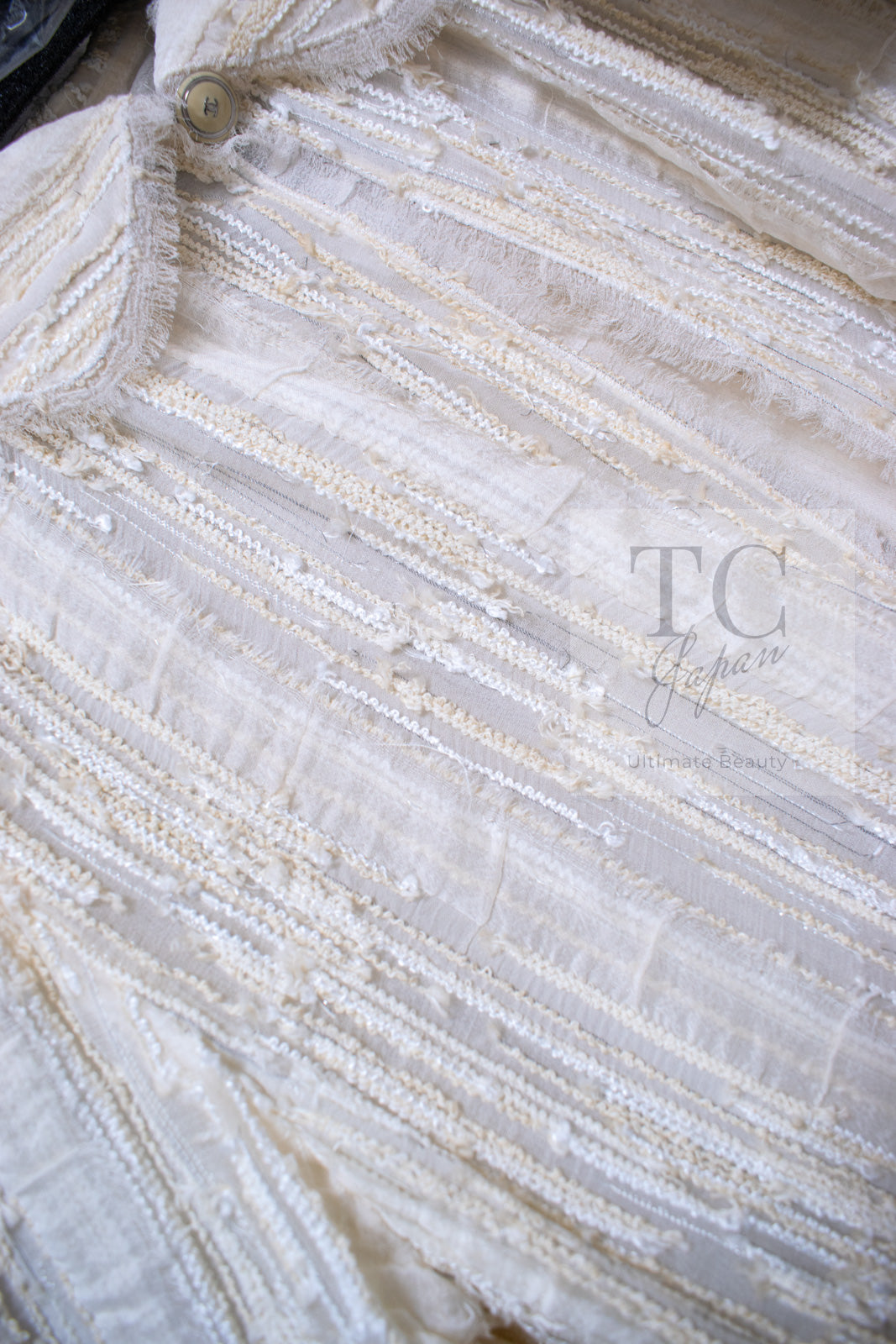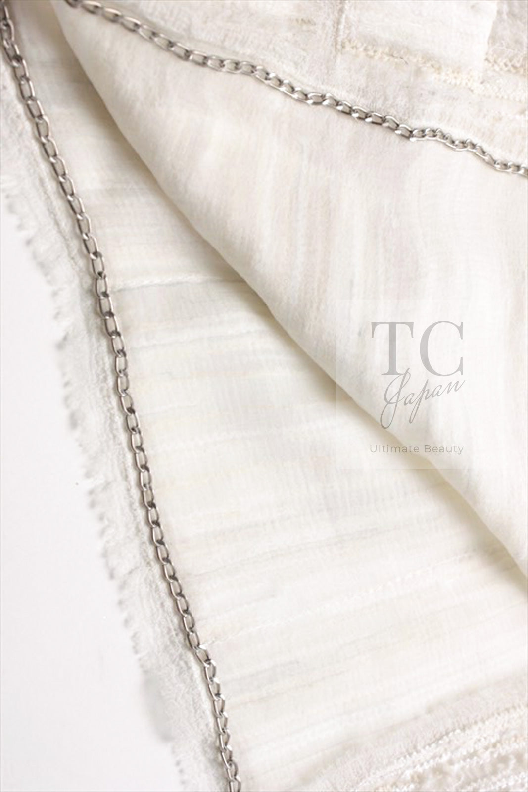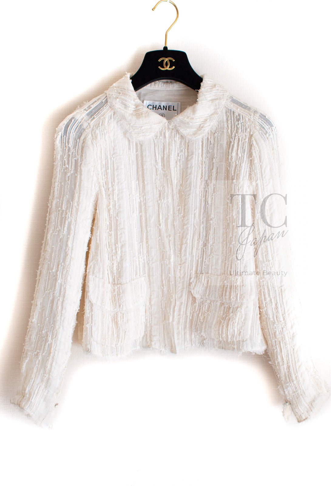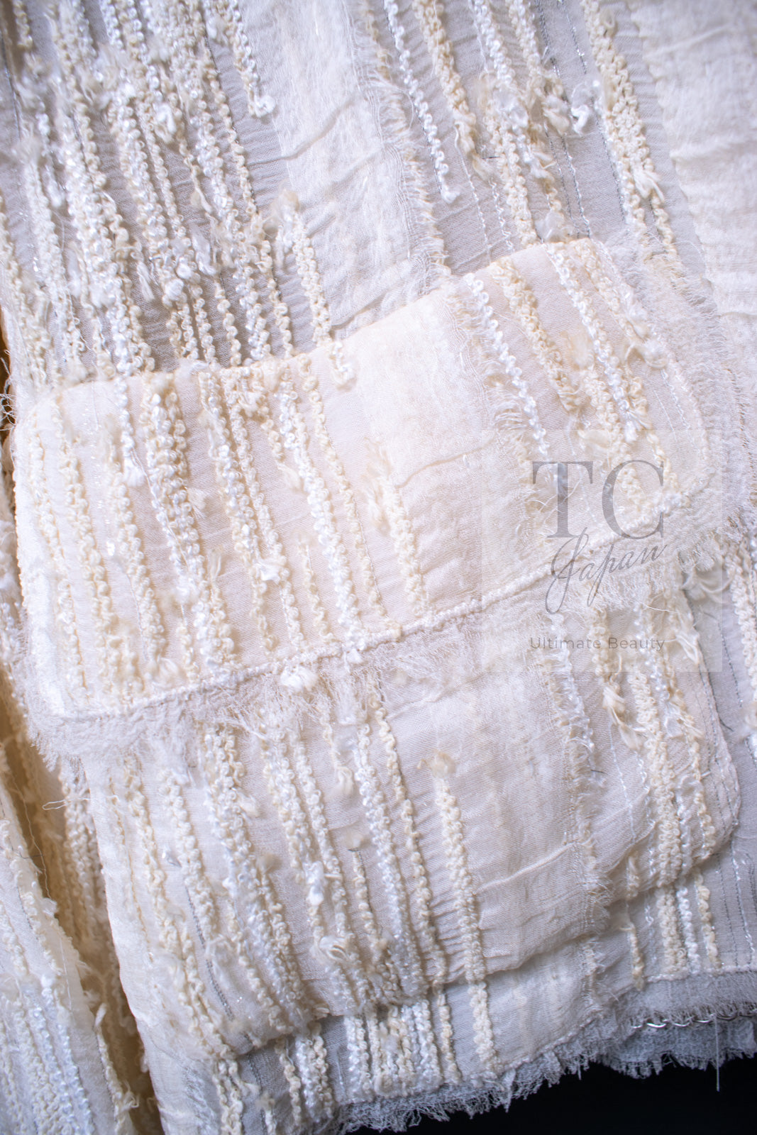 CHANEL 07C Ivory Creme Cotton Silk Cardigan Jacket 34 36 シャネル アイボリー クリーム コットン シルク カーディガン ジャケット 即発