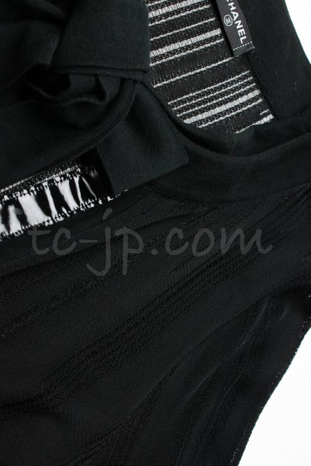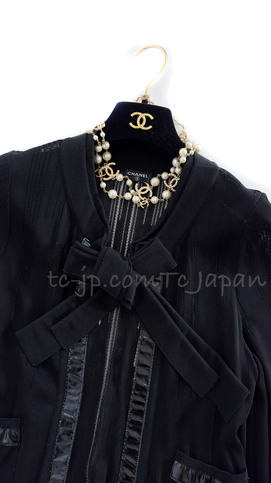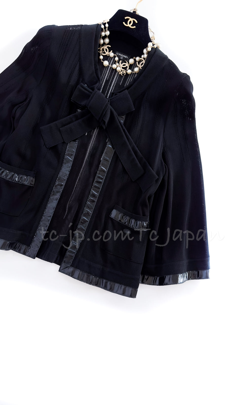 CHANEL 07S Ribbon Trim Black Cardigan Jacket 34 36 シャネル リボン・トリム・ブラック・ニット ボレロ カーディガン 即発