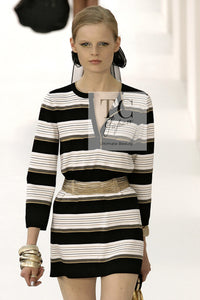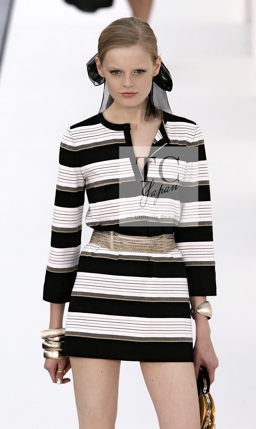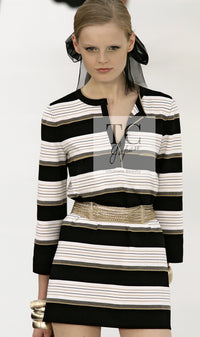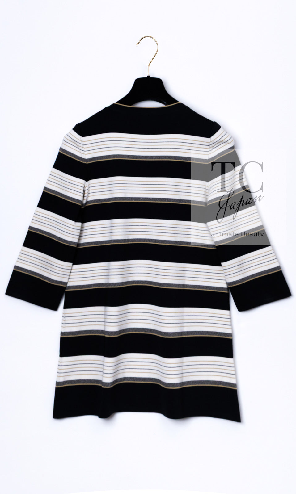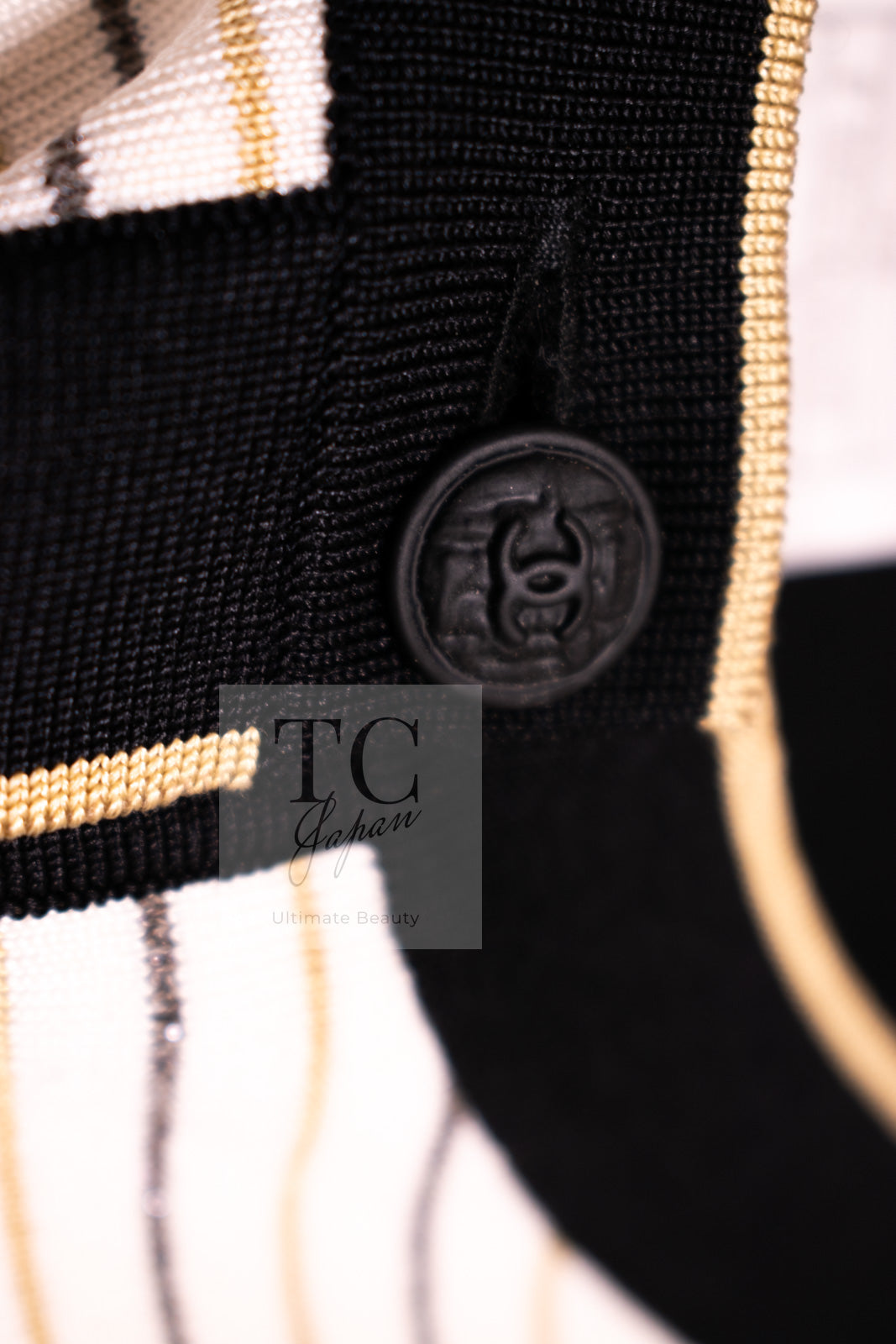 CHANEL 07S Beige Ivory Black Metallic Striped Silk Tunic Tops 40 シャネル ベージュ アイボリー ブラック メタリック ストライプ シルク チュニックトップス 即発