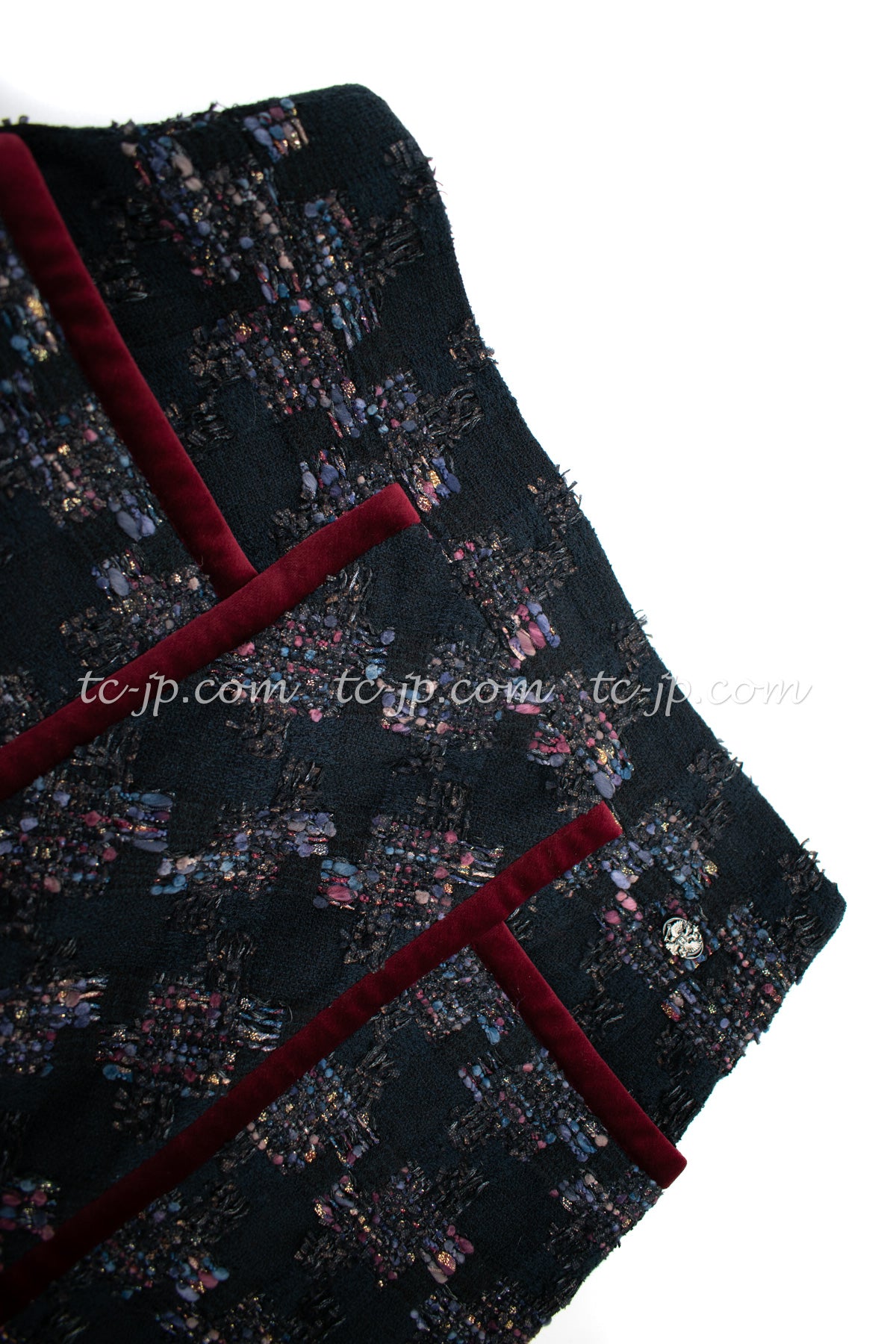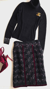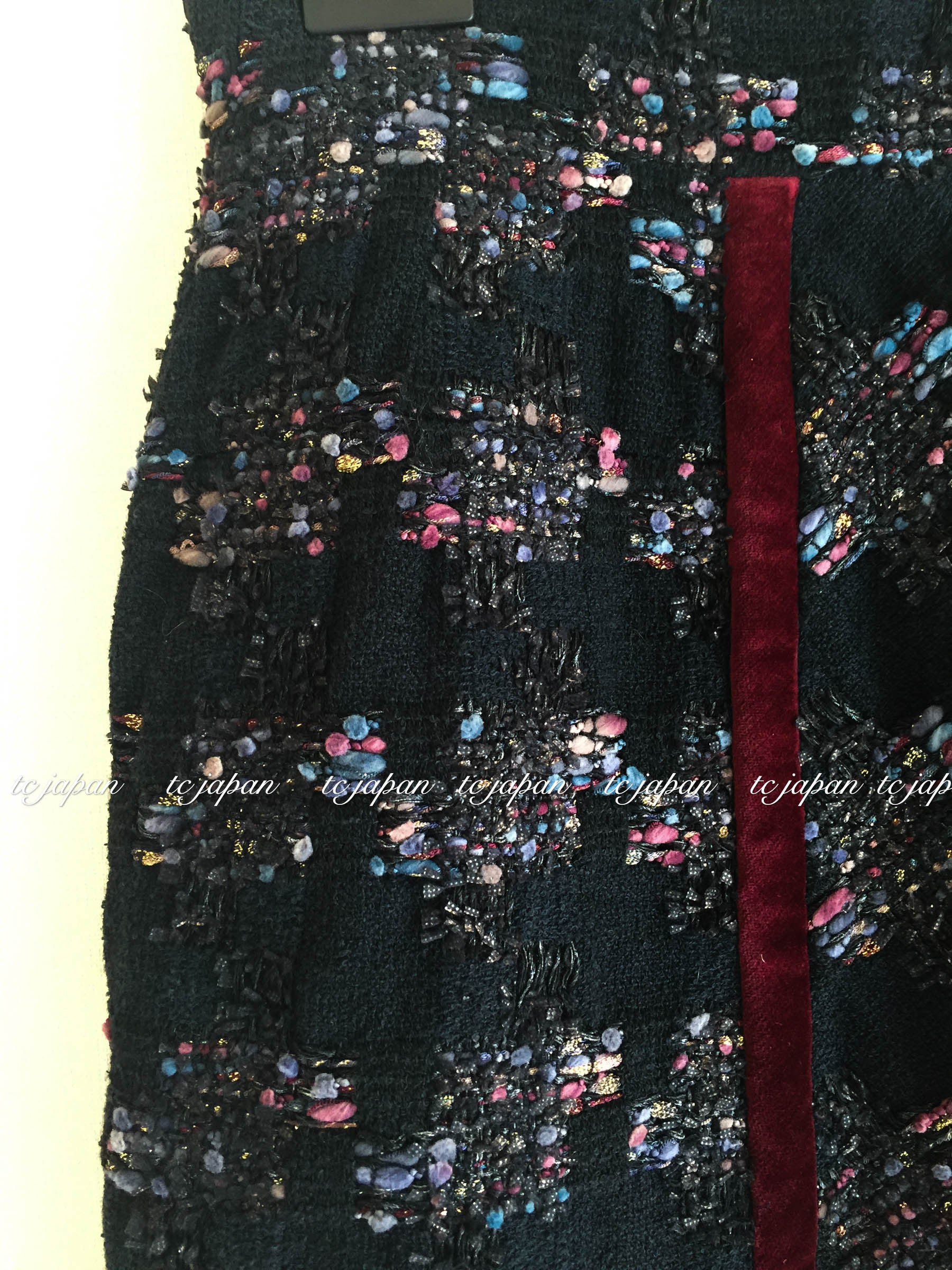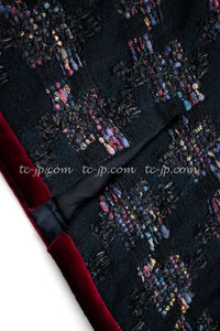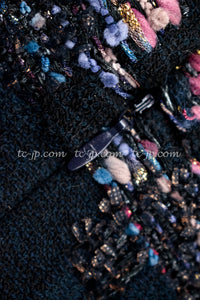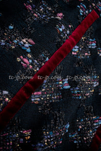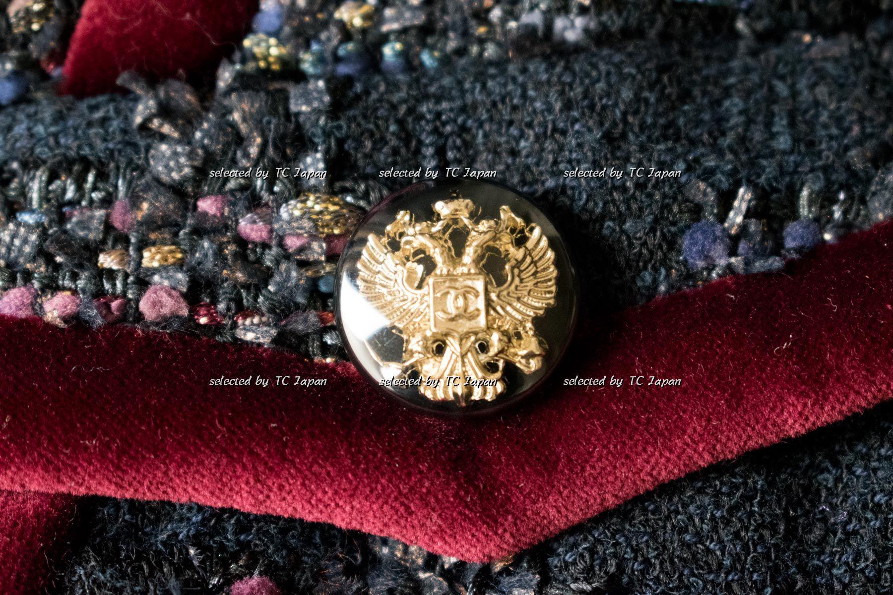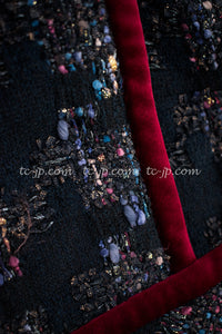 CHANEL 09PF Navy Velvet Satin Tweed Jacket Skirt 40 42 シャネル ベルベット・サテン・ジャケット・スカート 即発