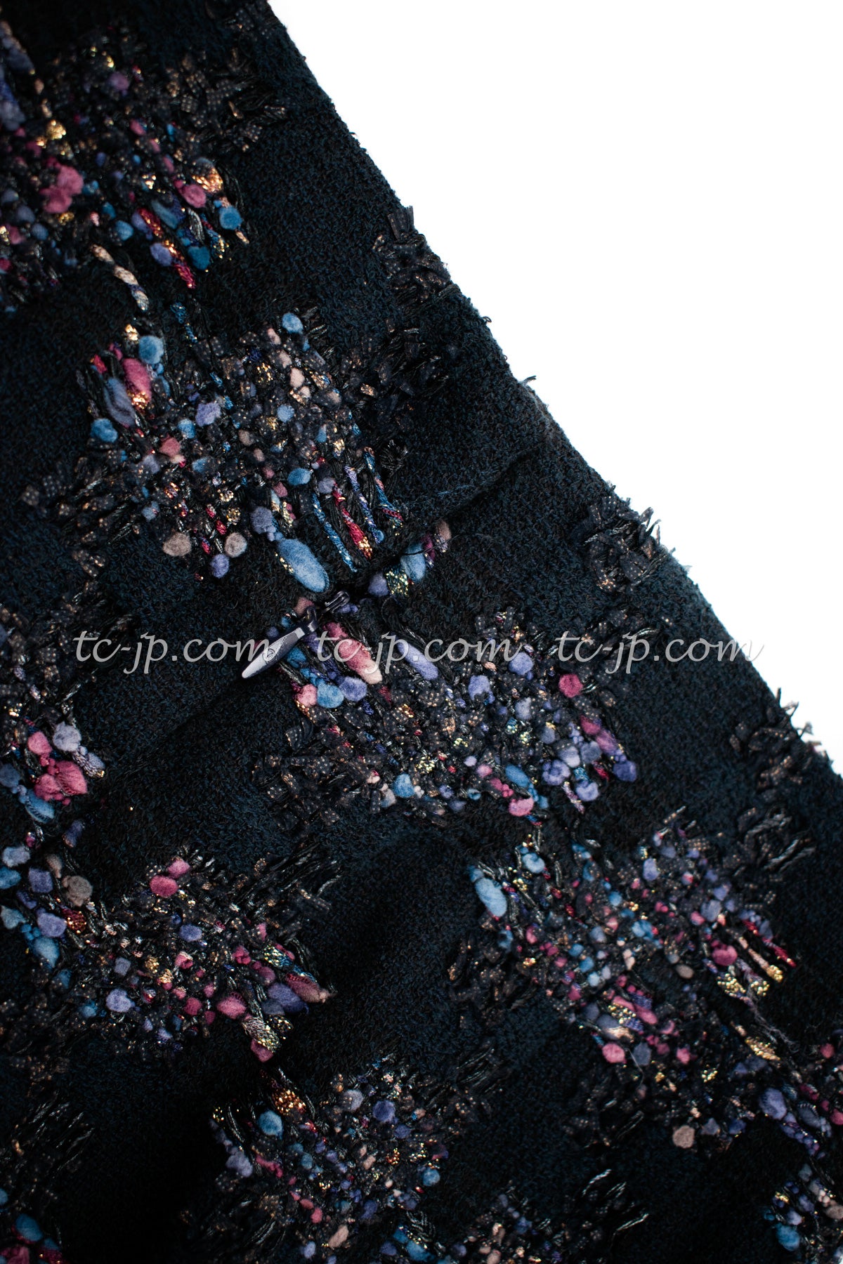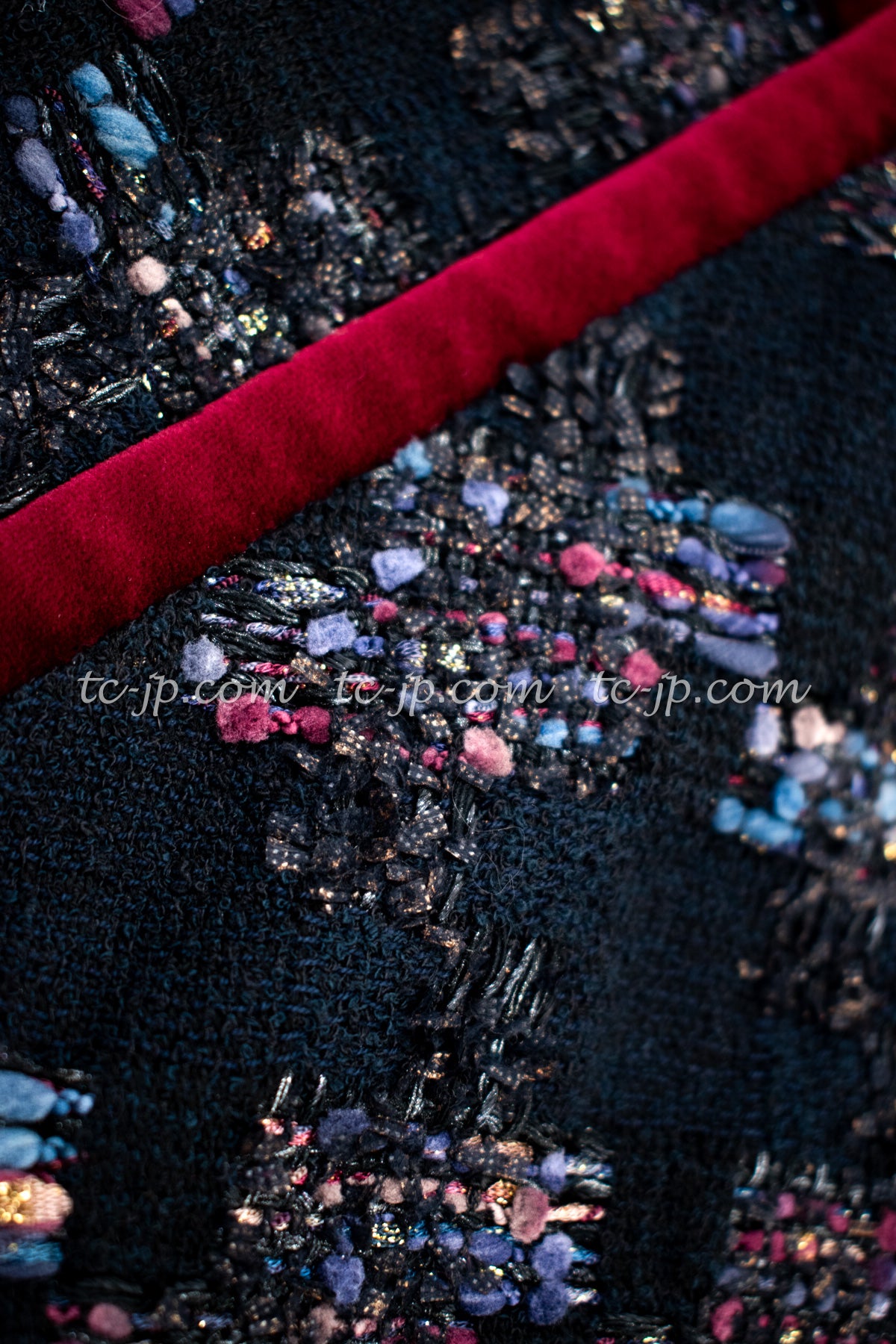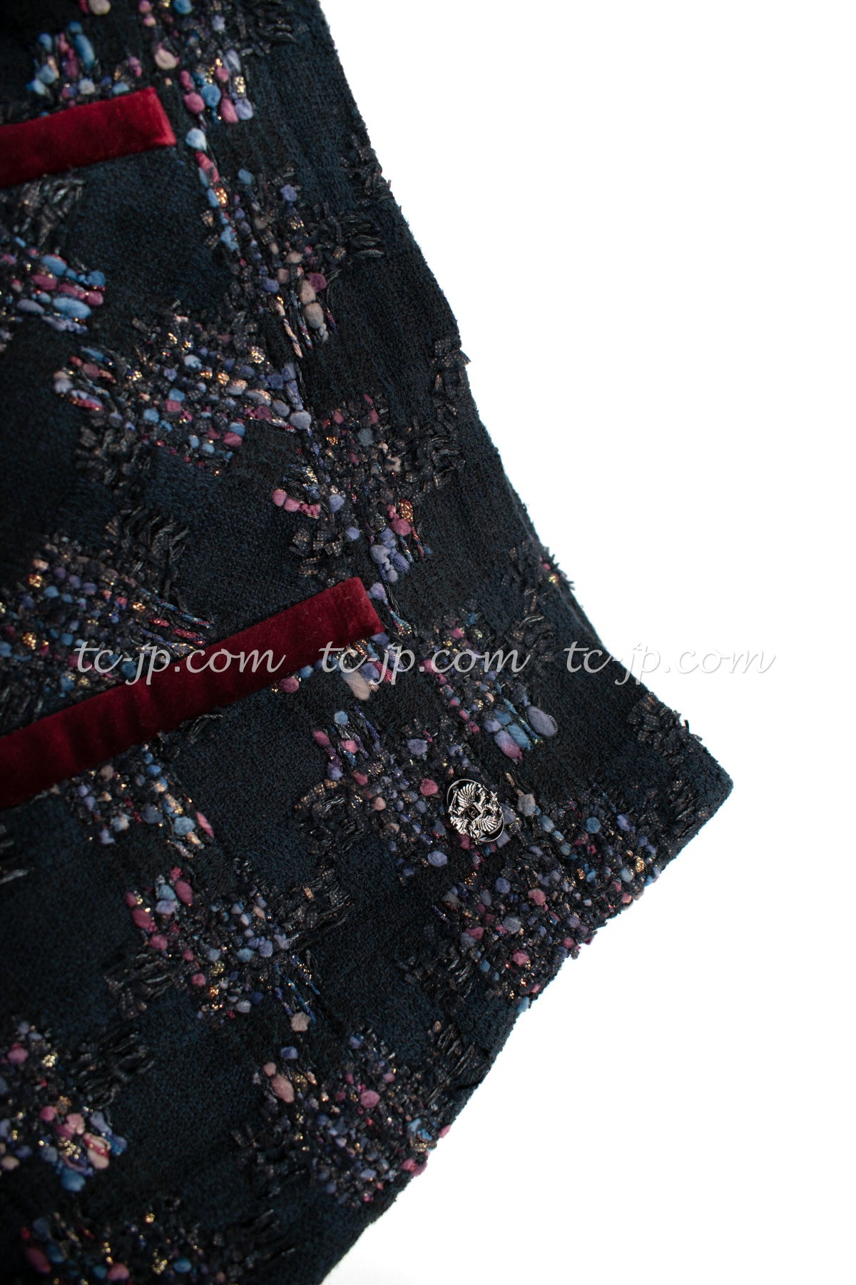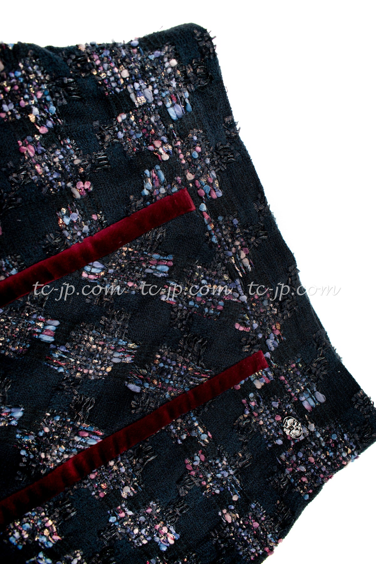 CHANEL 09PF Navy Velvet Satin Tweed Jacket Skirt 40 42 シャネル ベルベット・サテン・ジャケット・スカート 即発