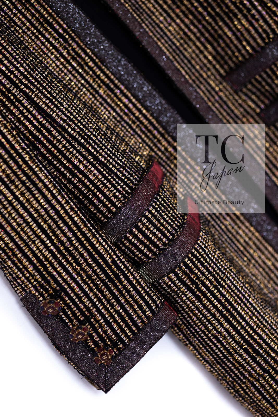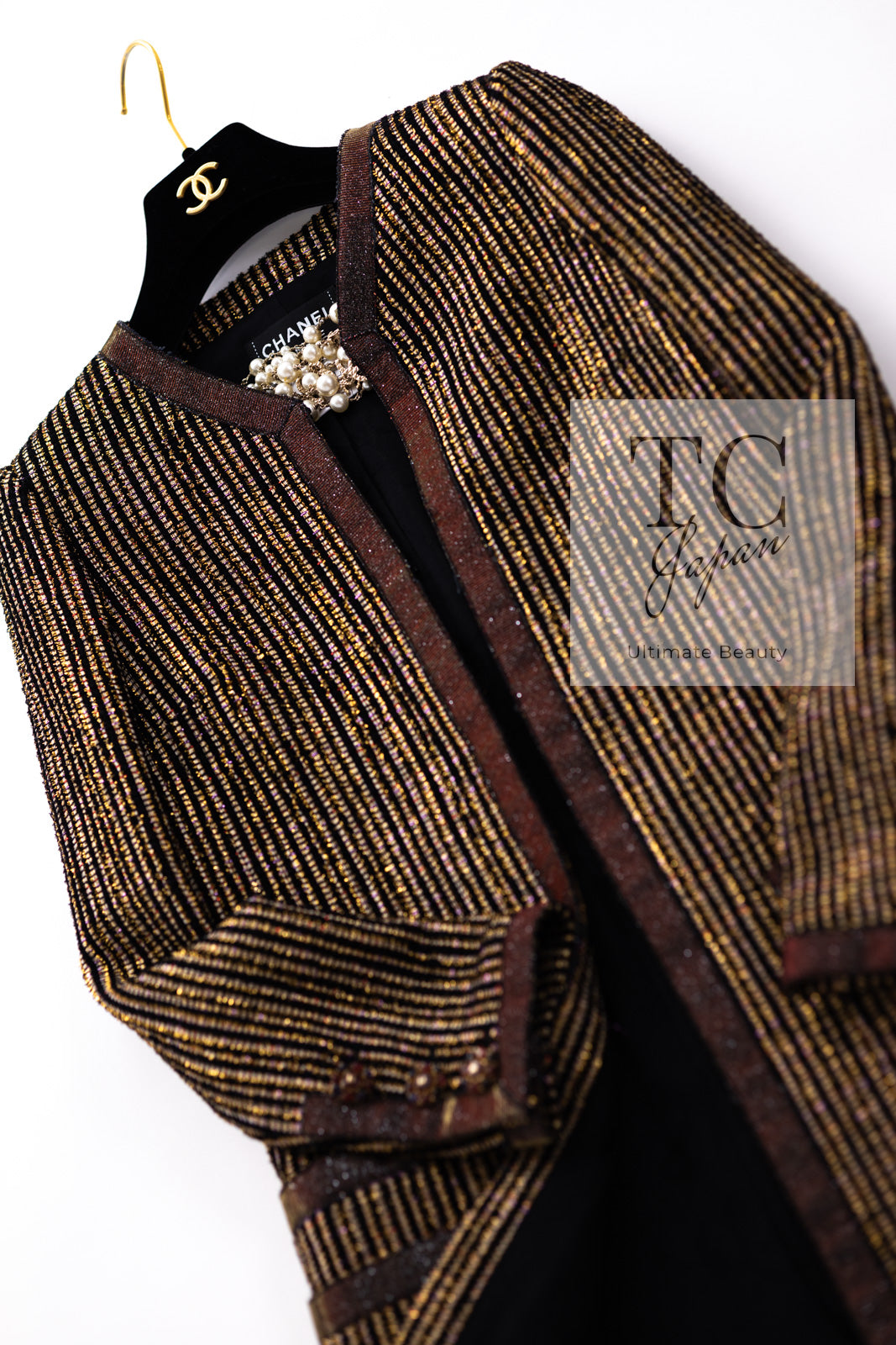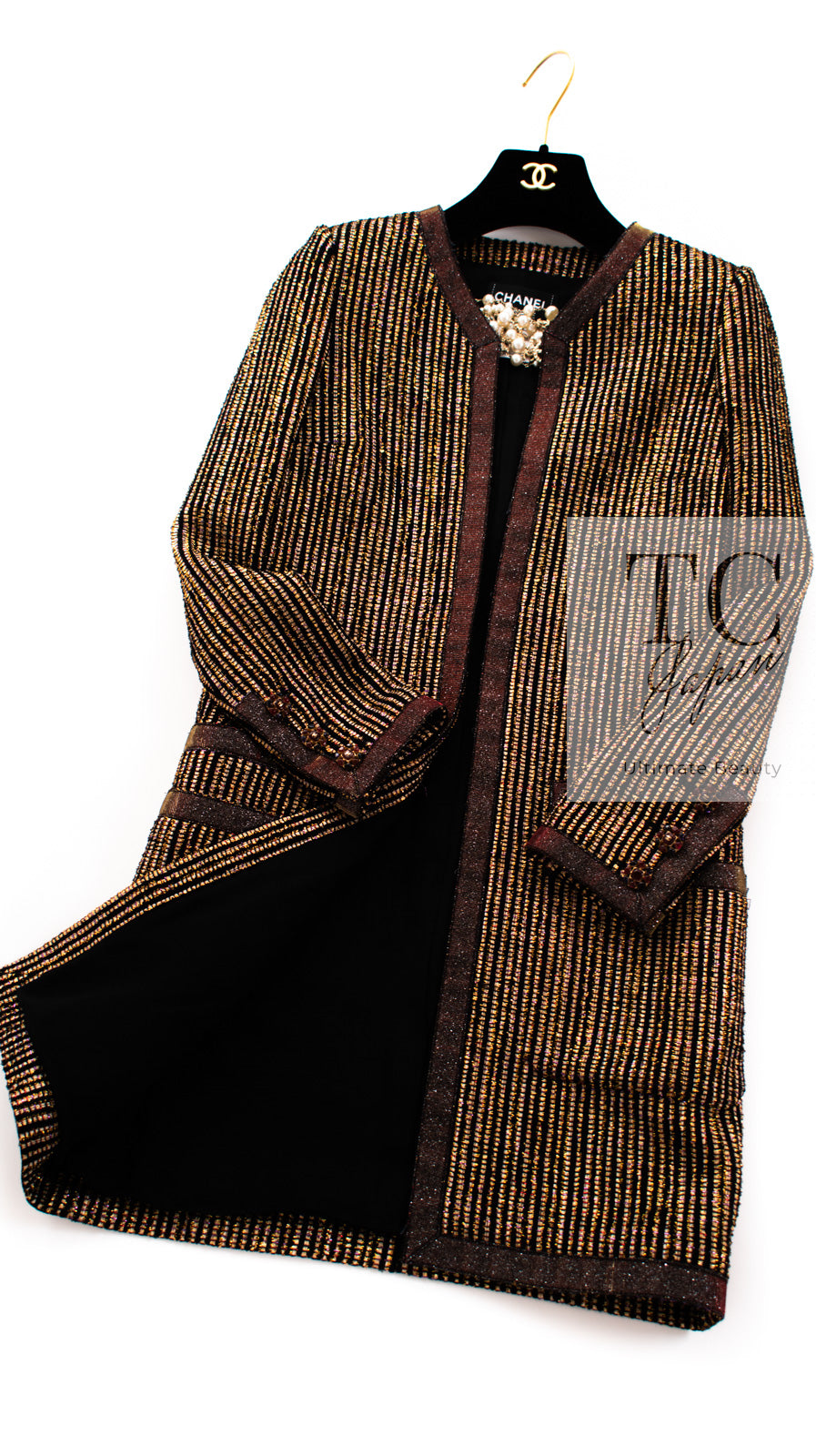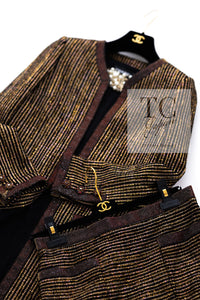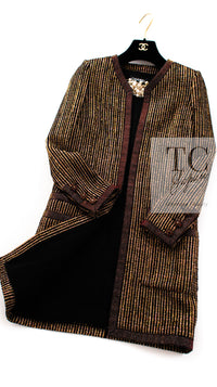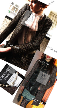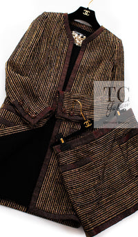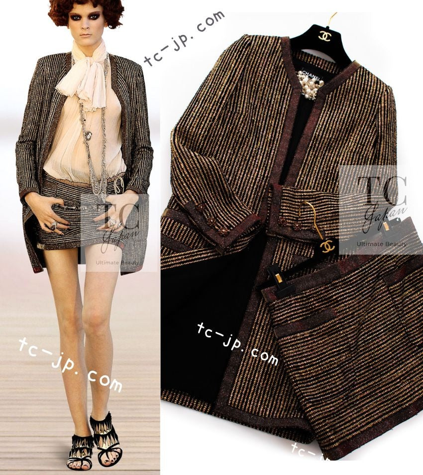 CHANEL 10C Gold Metallic Stripe Long Jacket Coat Skirt Setup 34 シャネル ゴールド メタリック ストライプ ロング ジャケット コート スカート セットアップ 即発