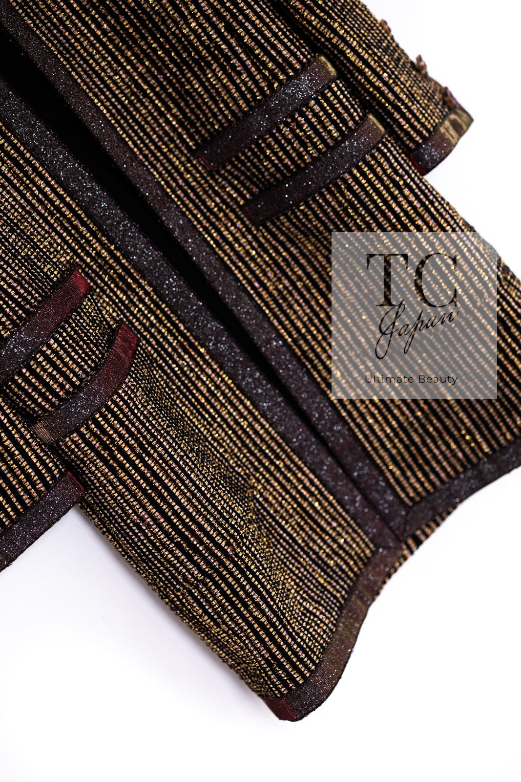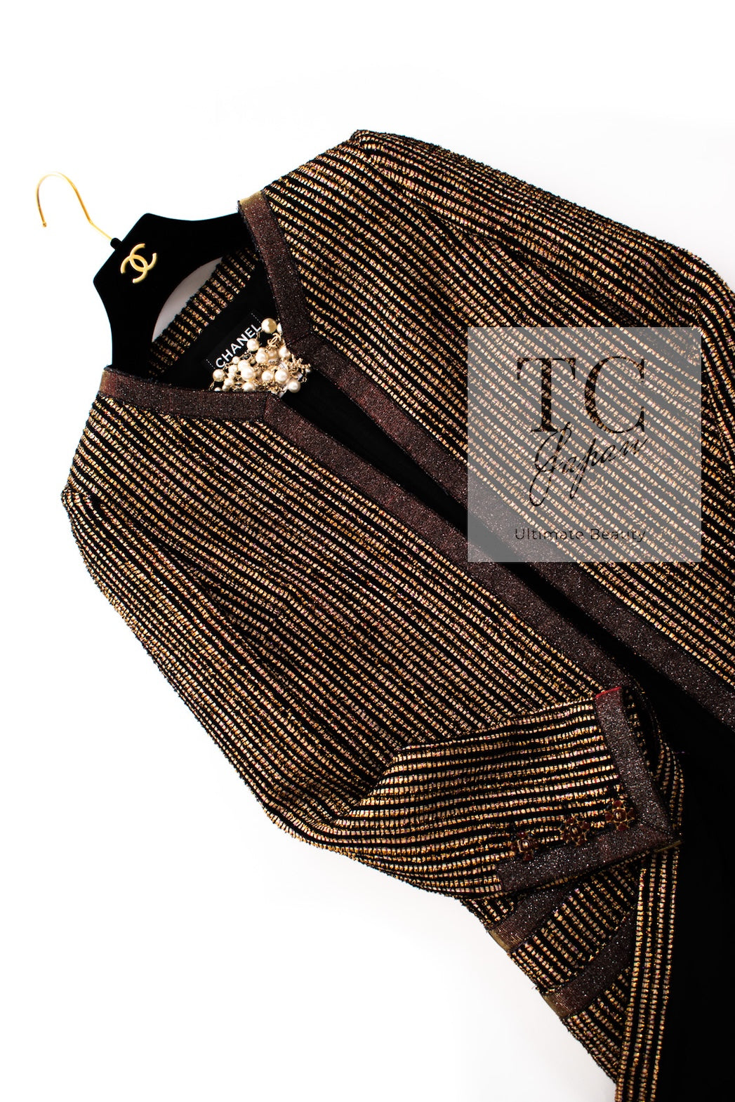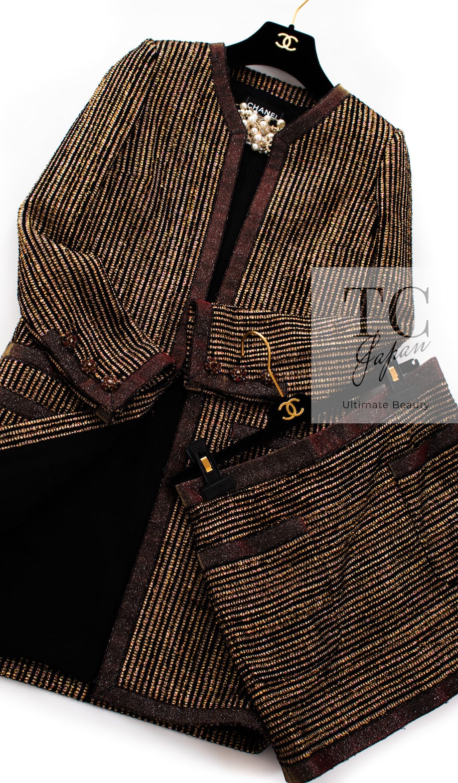 CHANEL 10C Gold Metallic Stripe Long Jacket Coat Skirt Setup 34 シャネル ゴールド メタリック ストライプ ロング ジャケット コート スカート セットアップ 即発