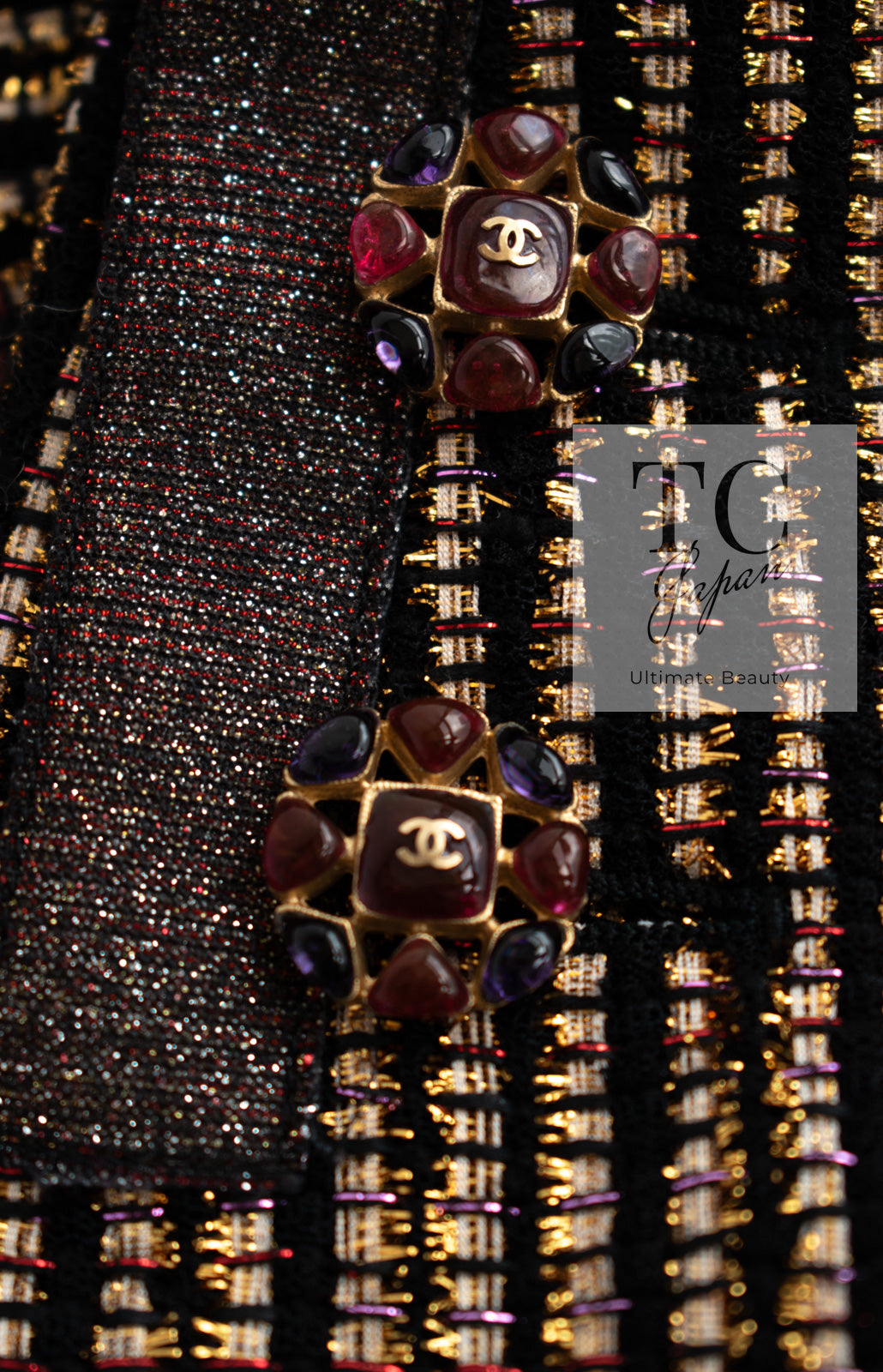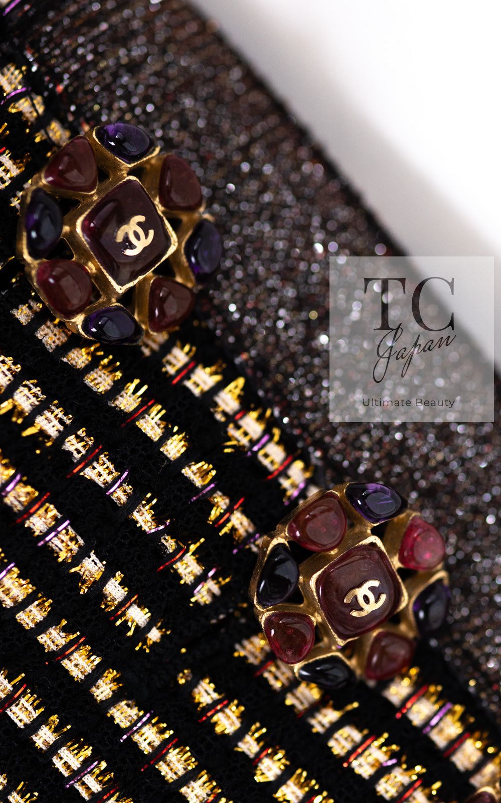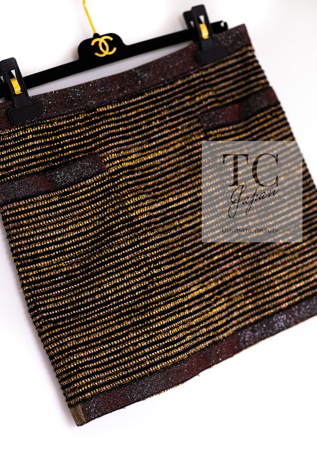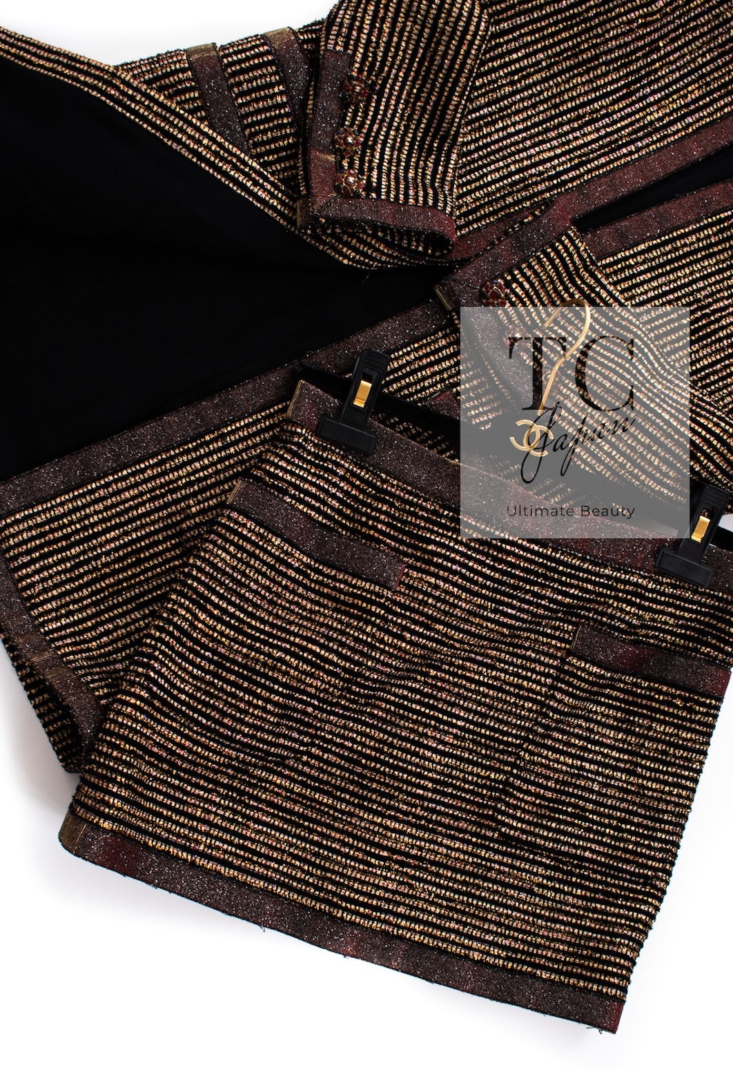 CHANEL 10C Gold Metallic Stripe Long Jacket Coat Skirt Setup 34 シャネル ゴールド メタリック ストライプ ロング ジャケット コート スカート セットアップ 即発