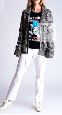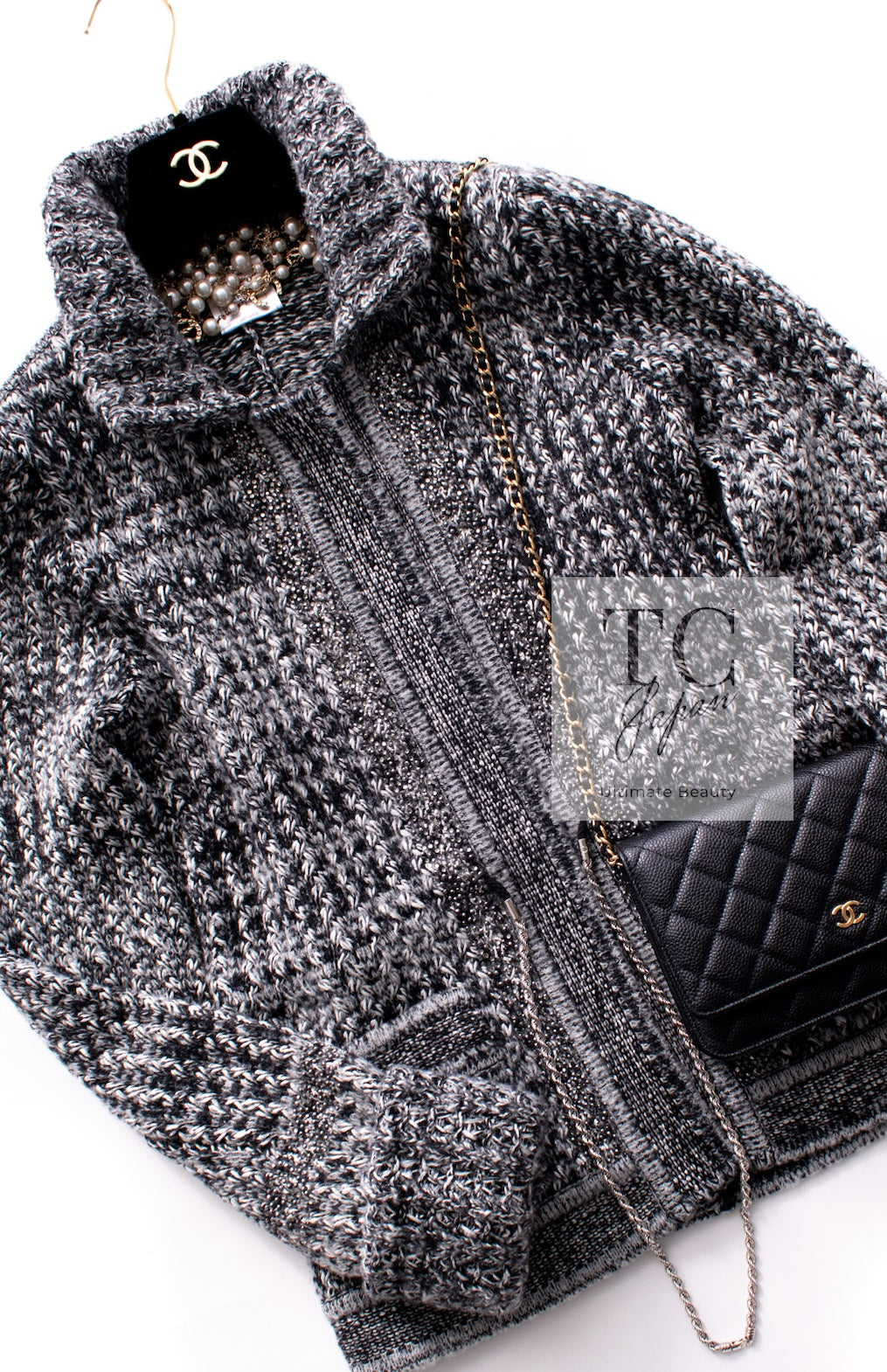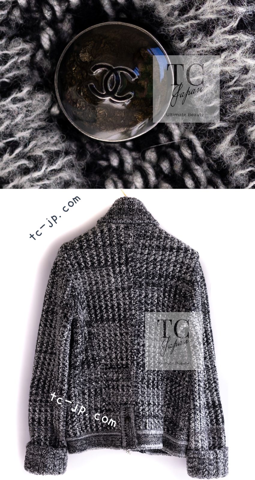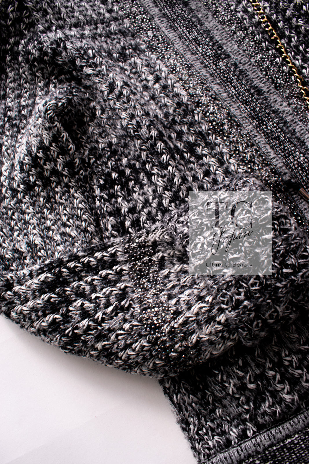 CHANEL 11A Gray Cashmere Silk Wool Chain Knit Cardigan 38 40 シャネル グレー カシミヤ シルク ウール チェーン アクセサリー ニット カーディガン 即発