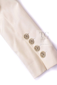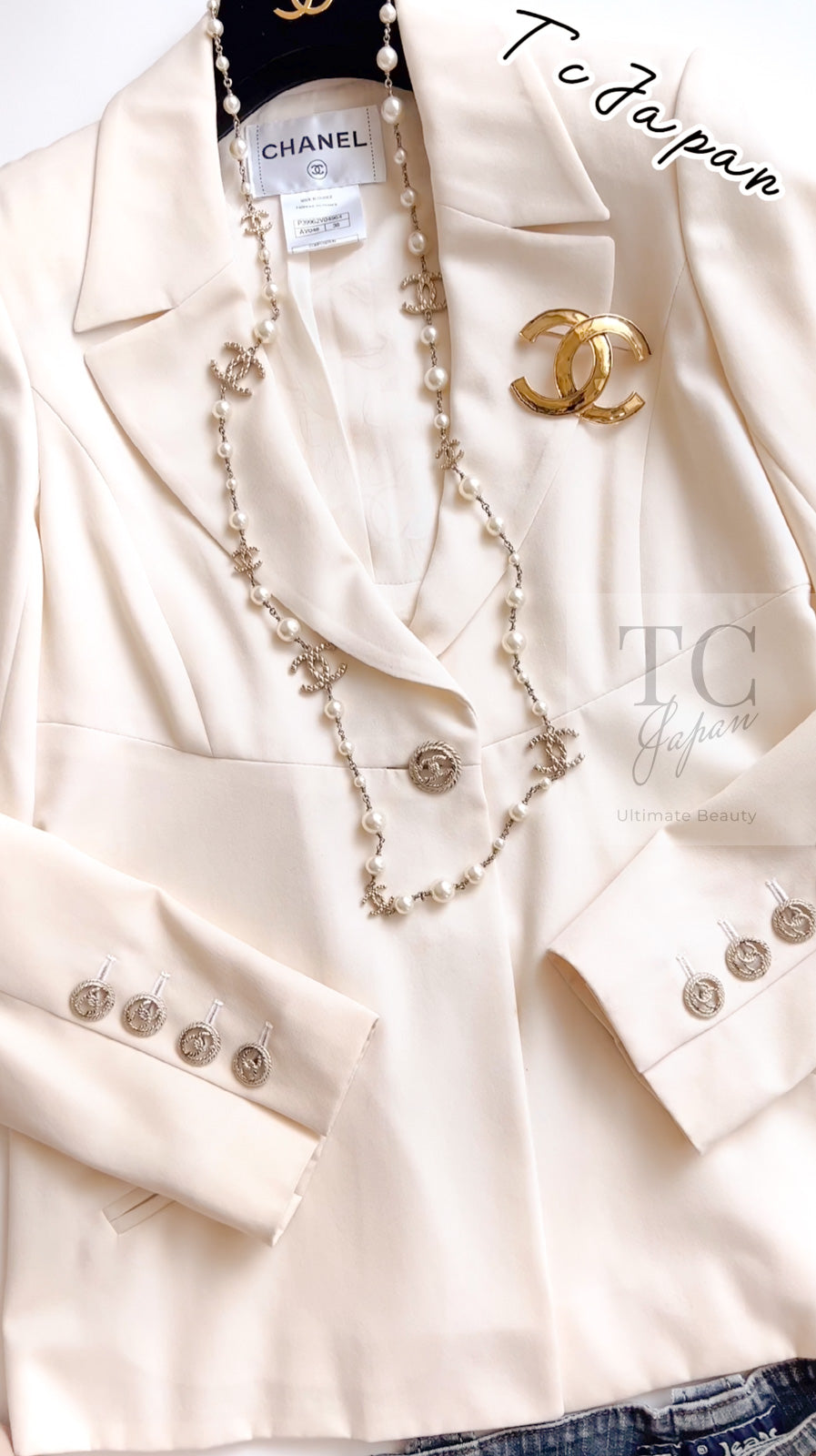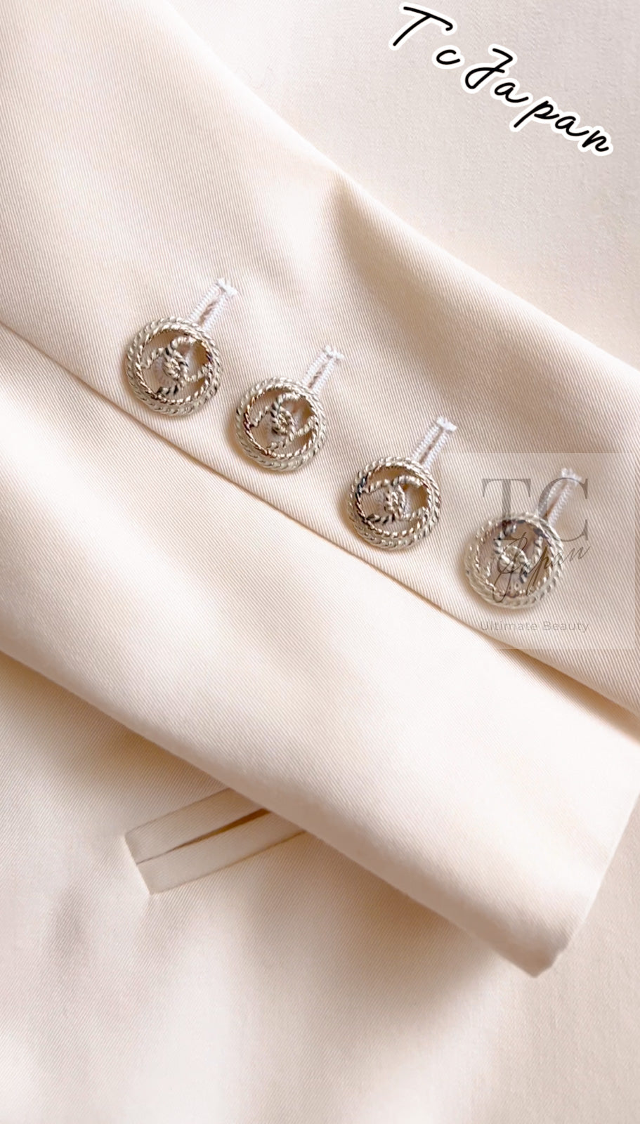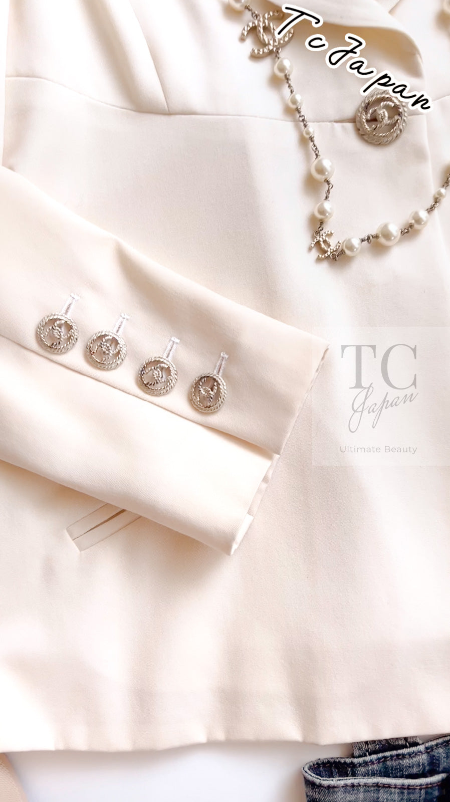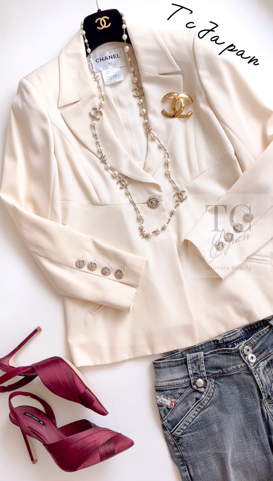 CHANEL 11C Ivory Cream Simple Single Logo Button Tailored Wool Jacket 38 シャネル アイボリー クリーム ウール シンプル ブレザー ジャケット ココボタン 即発