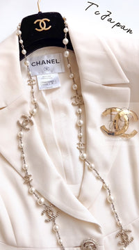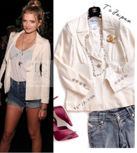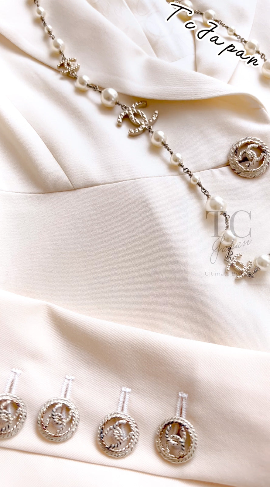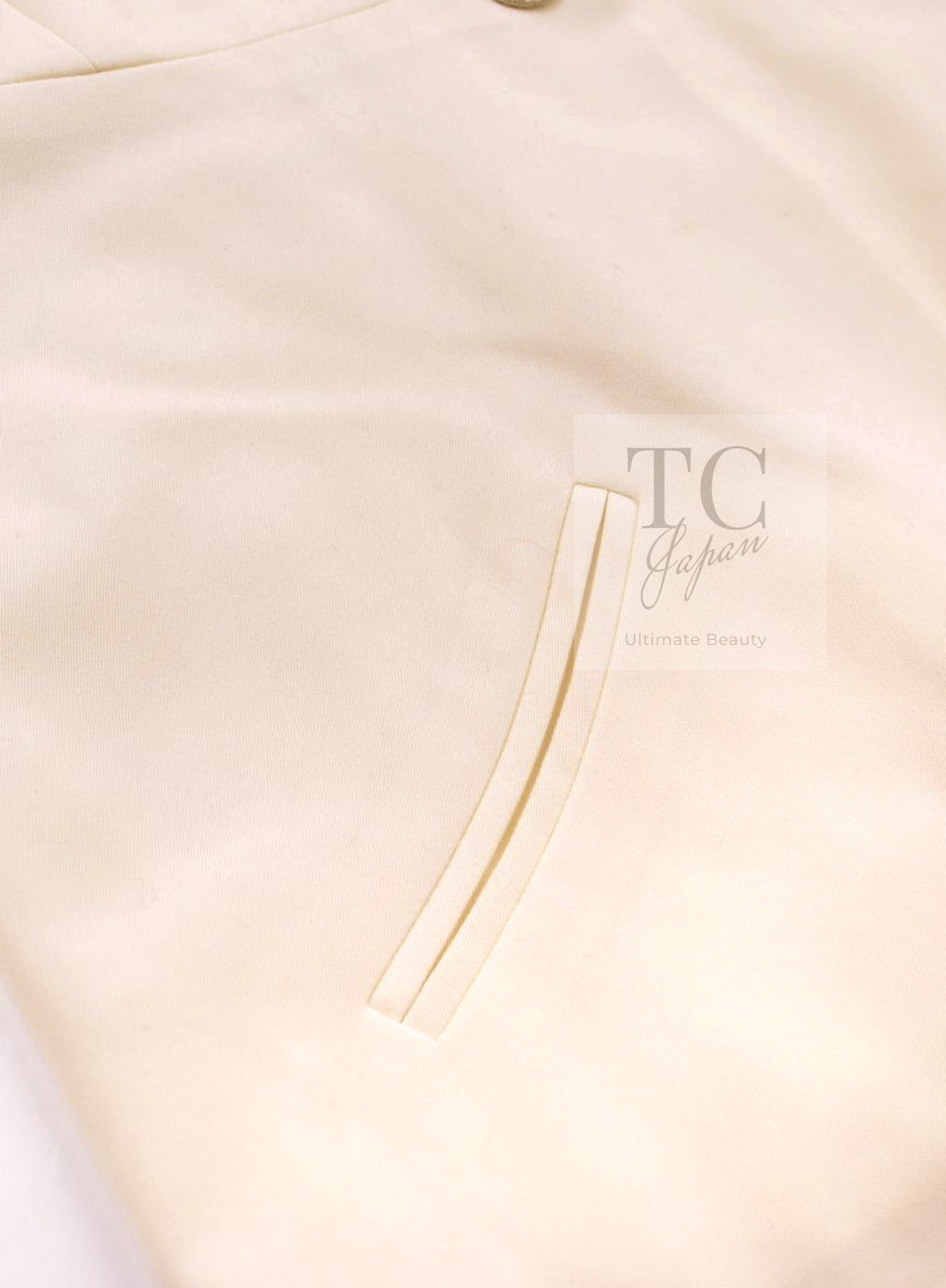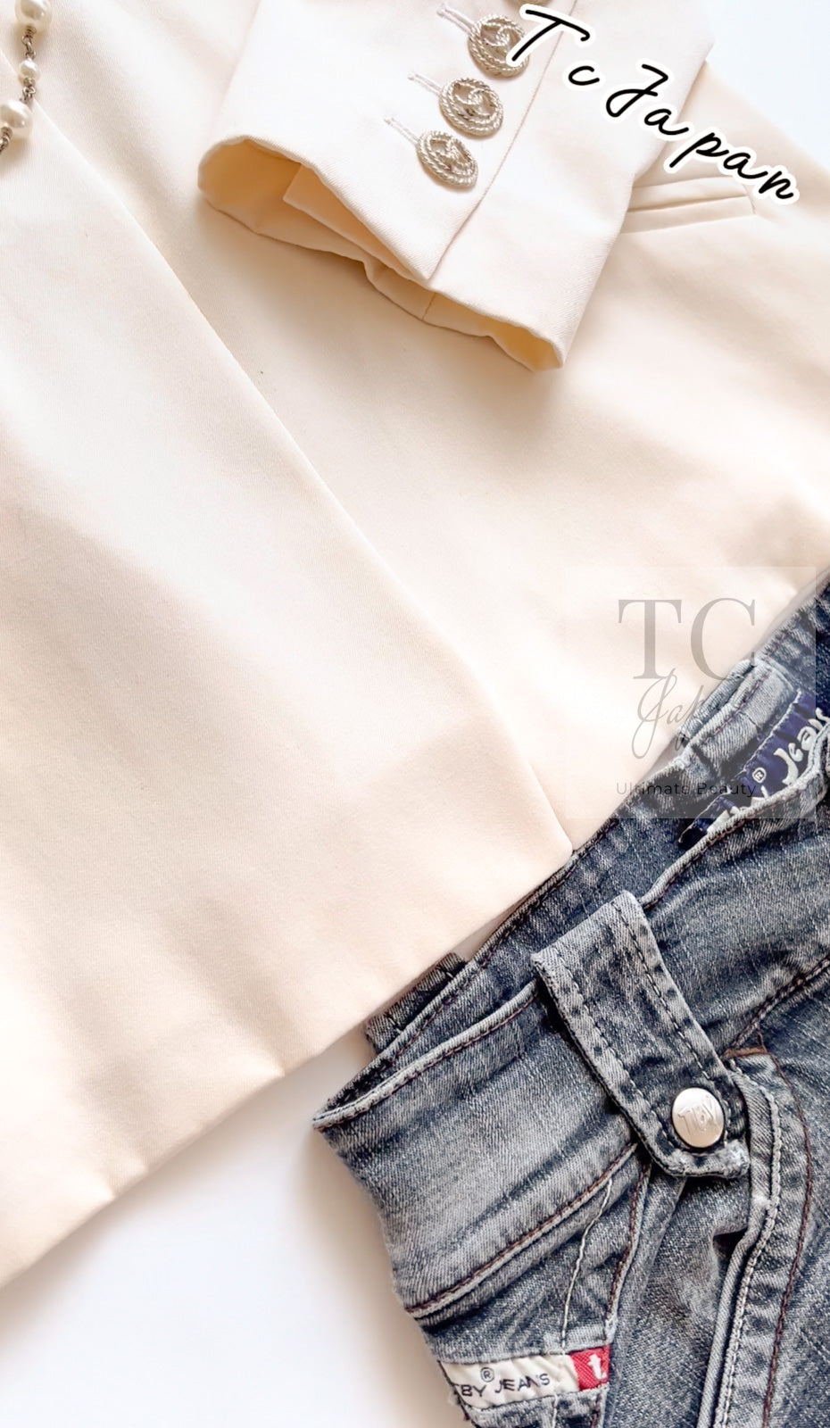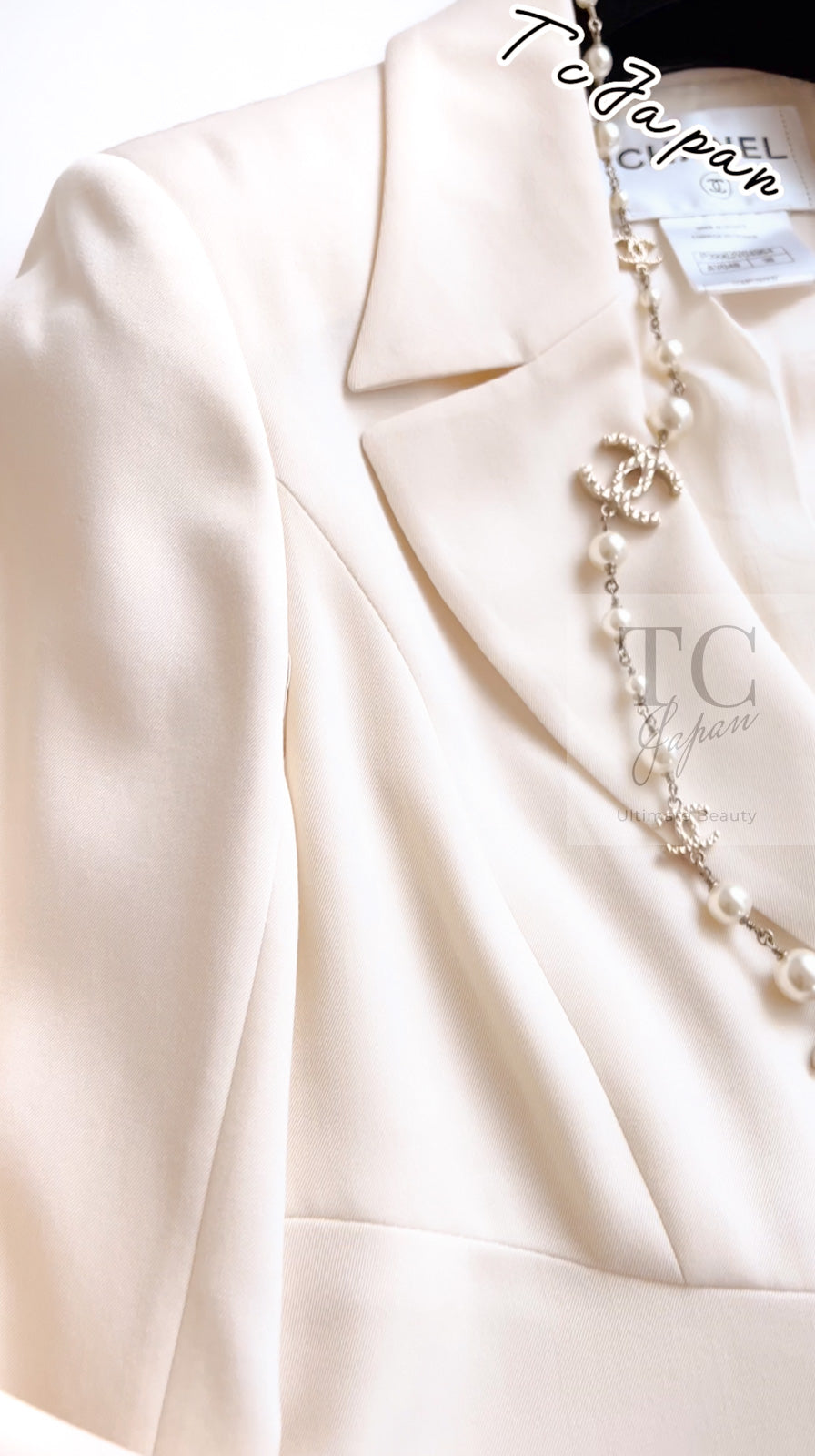 CHANEL 11C Ivory Cream Simple Single Logo Button Tailored Wool Jacket 38 シャネル アイボリー クリーム ウール シンプル ブレザー ジャケット ココボタン 即発