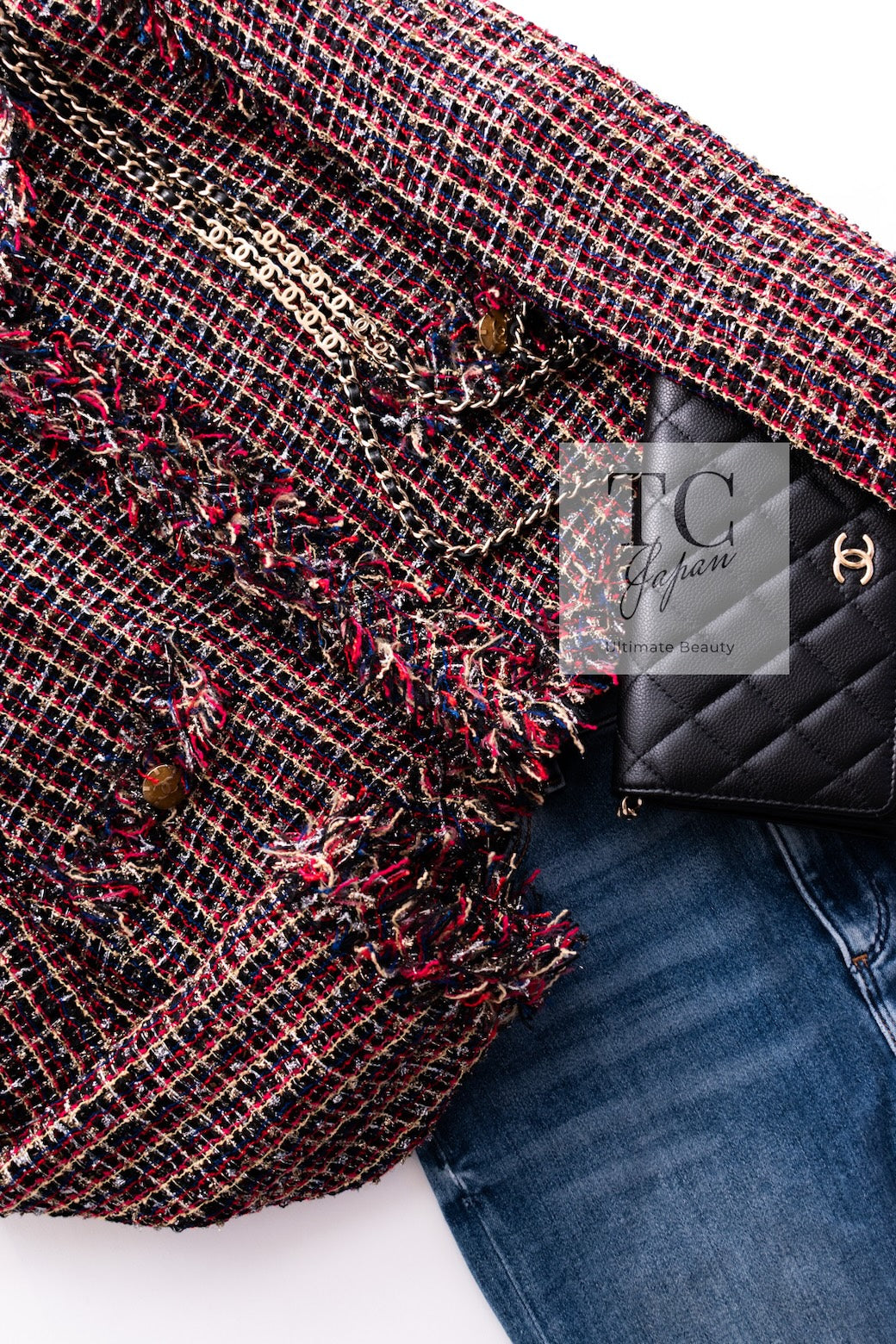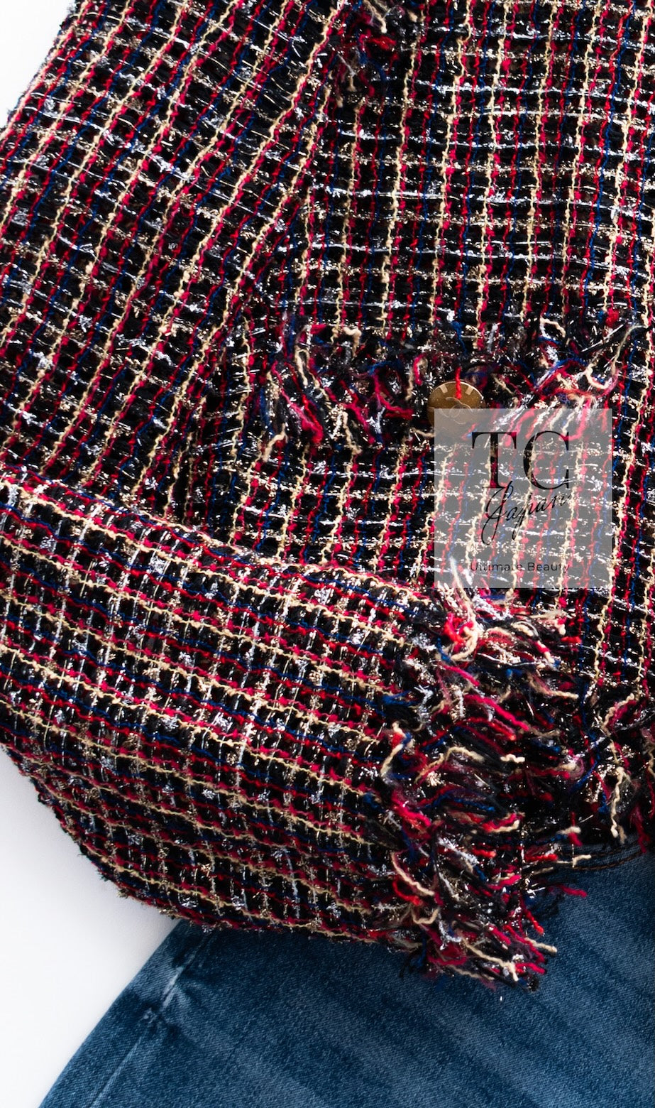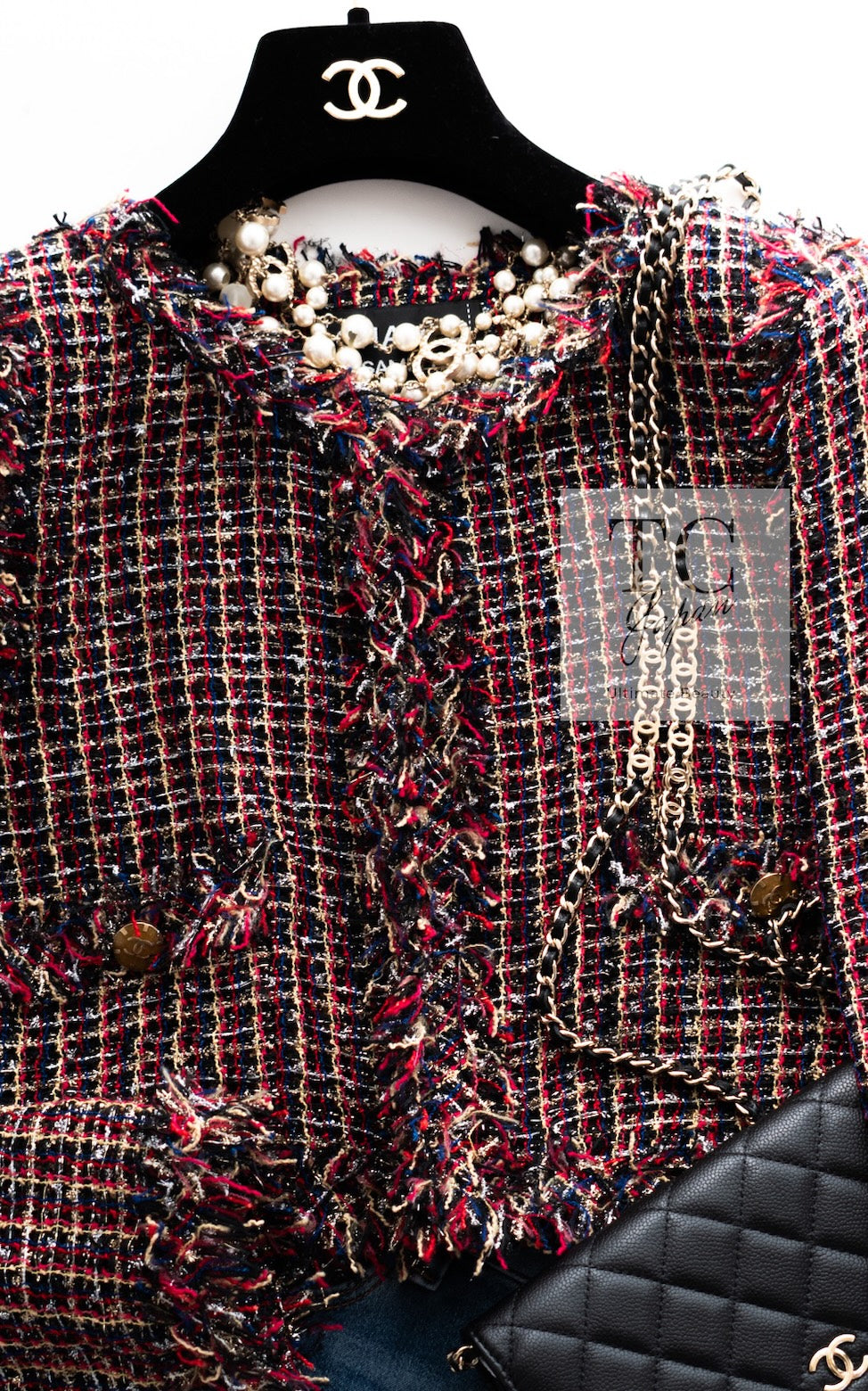 CHANEL 11C Red Black Metalic Lesage Cropped Jacket 34 シャネル レッド ブラック メタリック ルサージュ ジャケット 即発