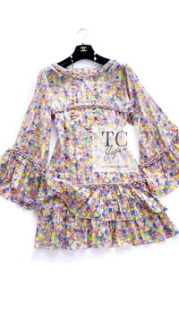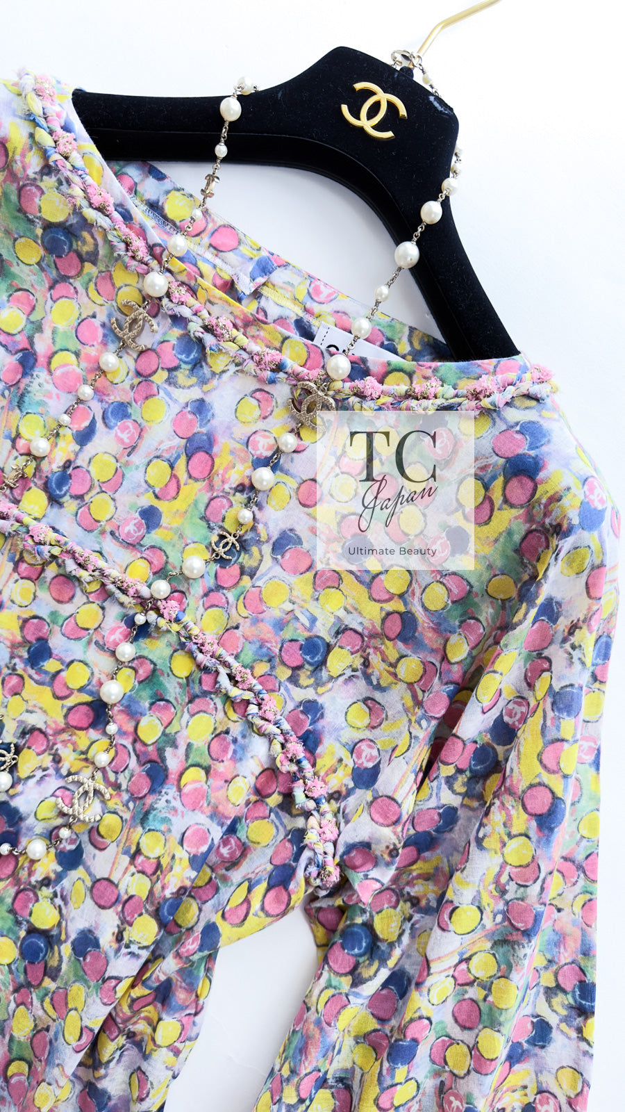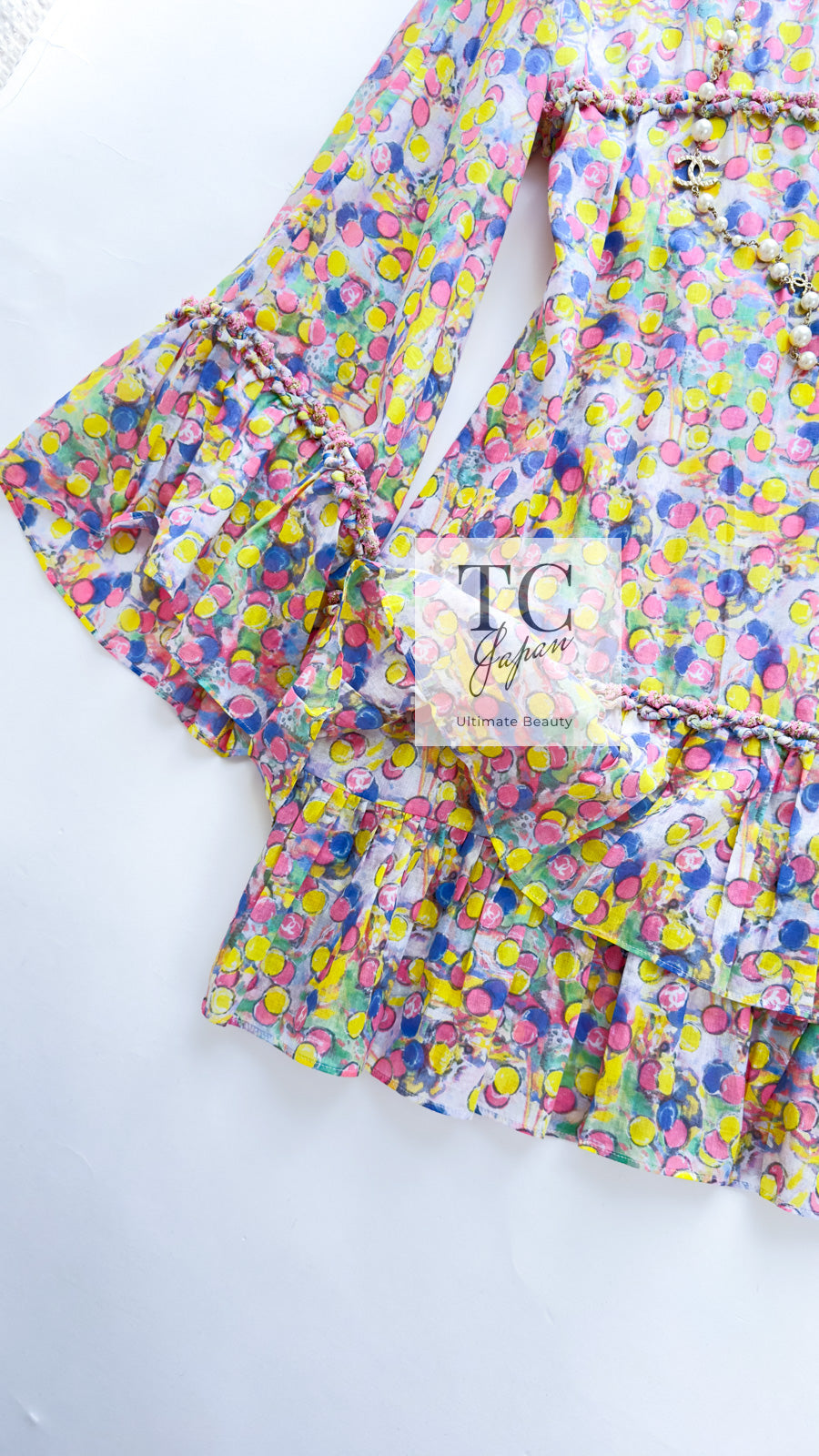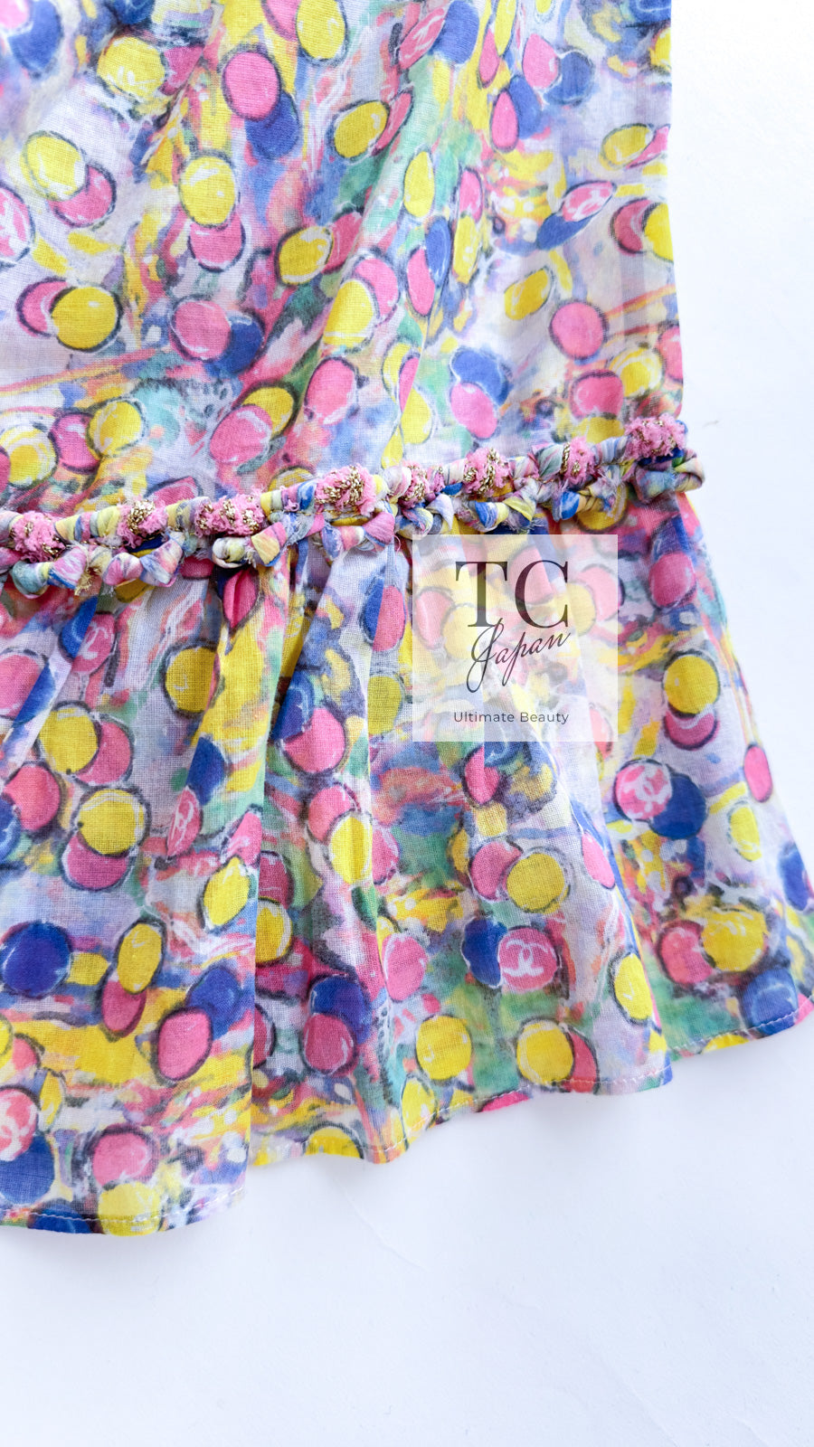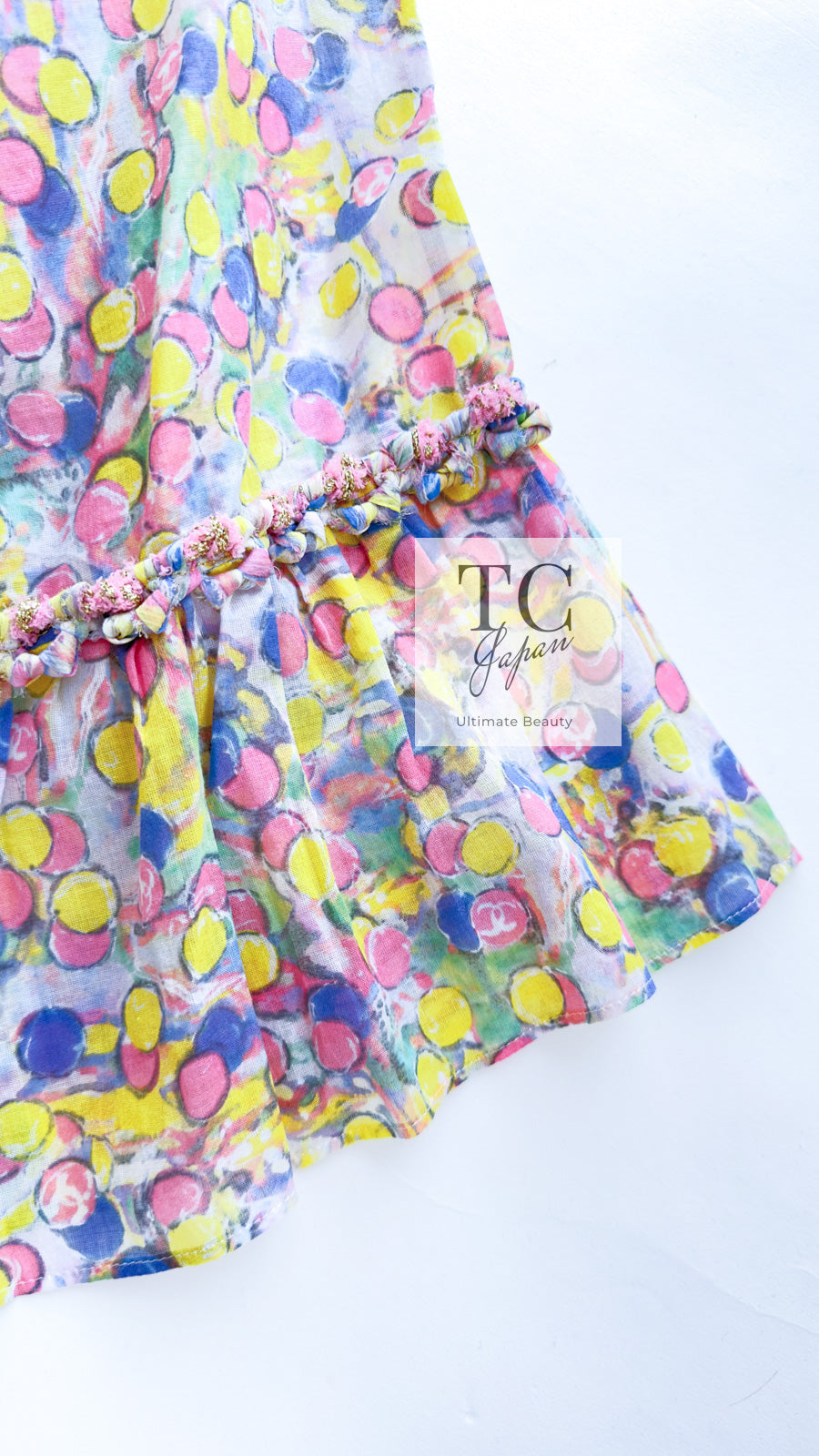 CHANEL 11C Yellow Multi Polka Dot Cotton Tunic Mini Dress 34 シャネル イエロー マルチカラー 水玉 コットン チュニック ミニ ワンピース 即発