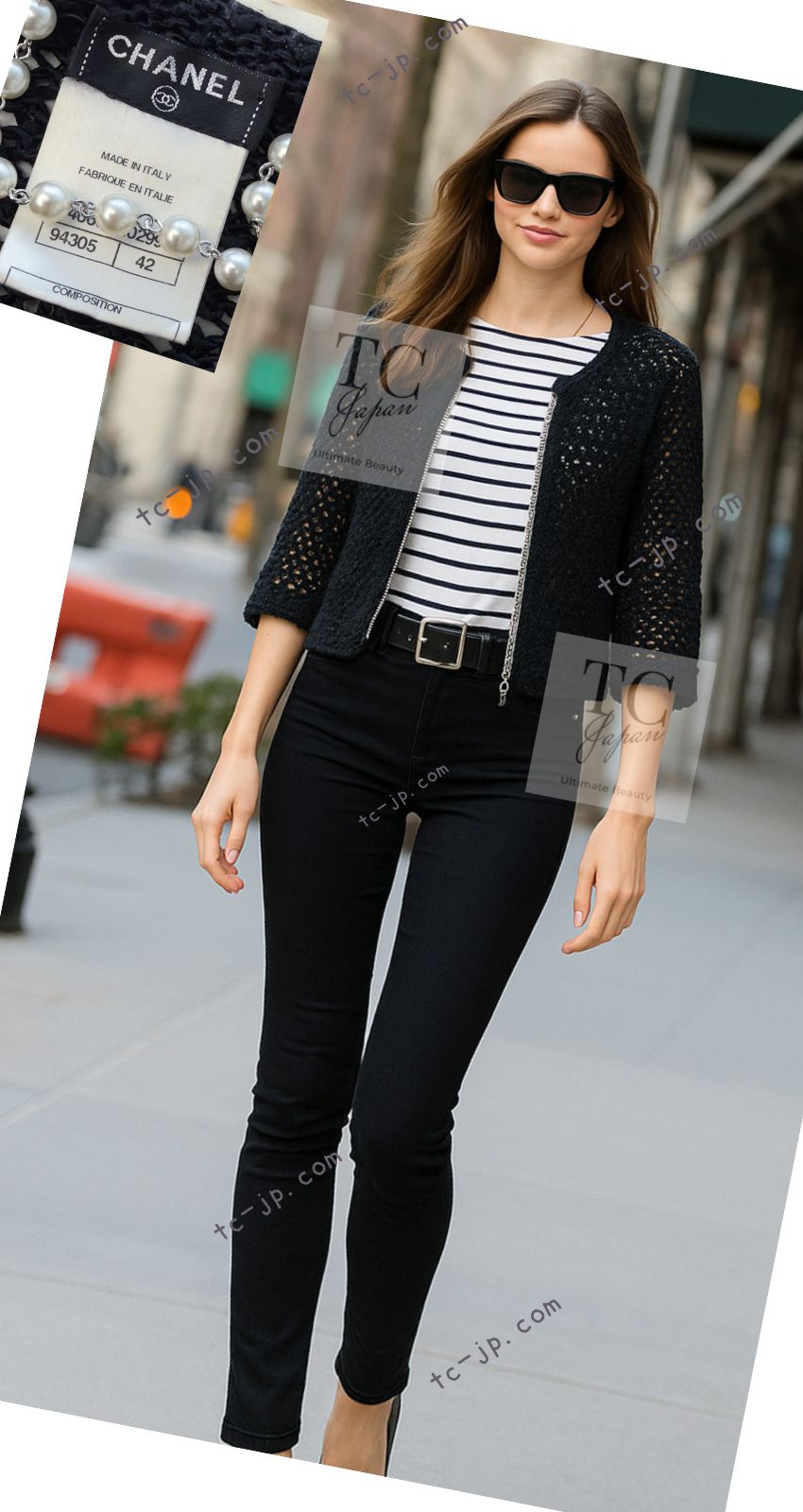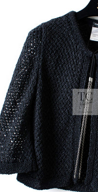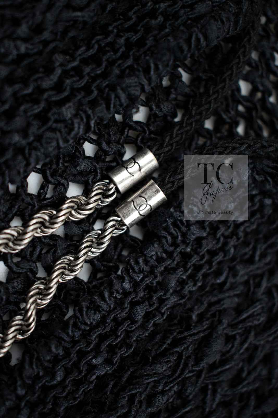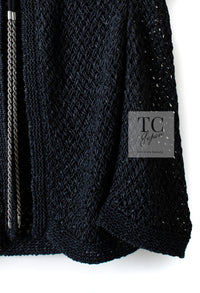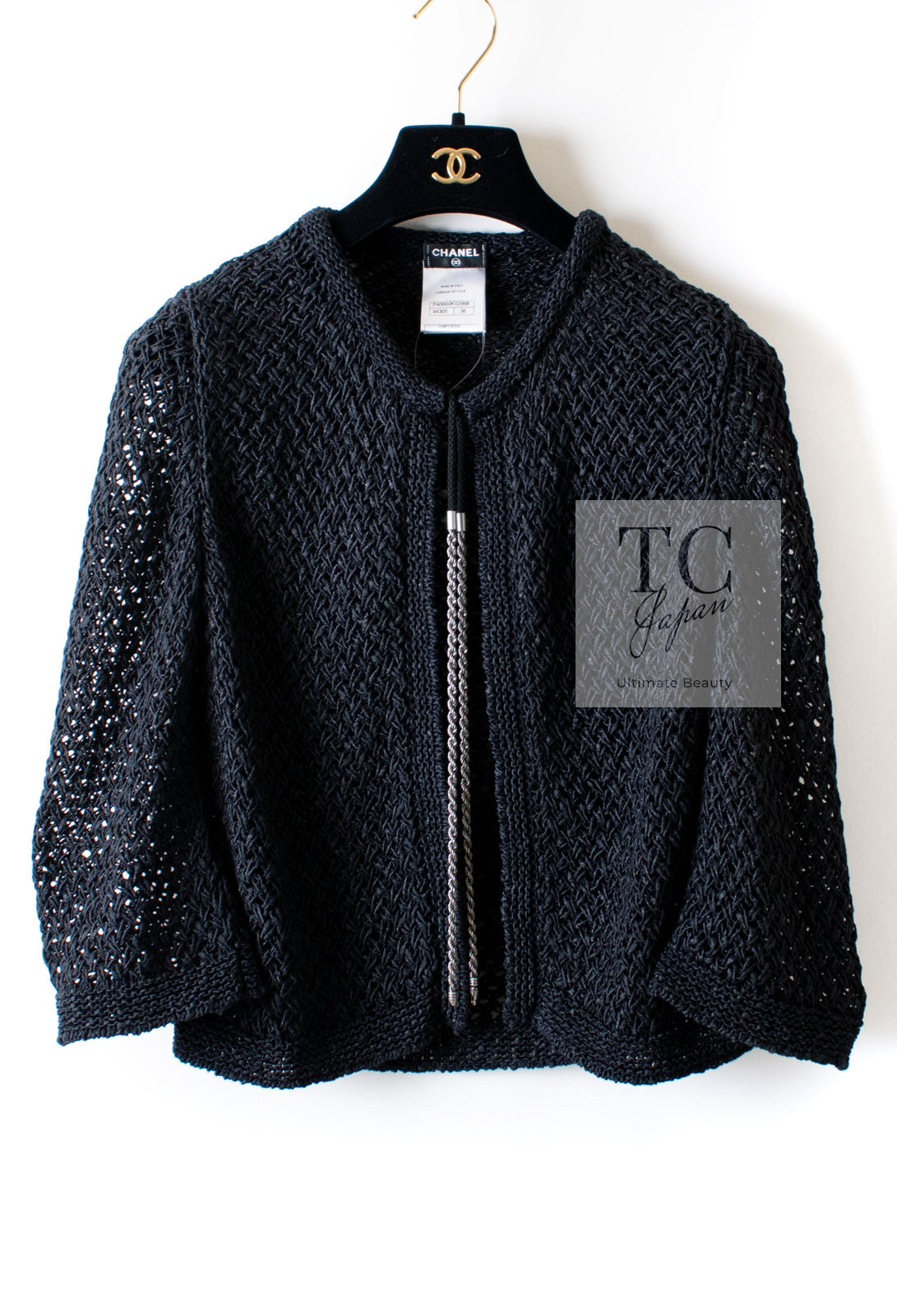 CHANEL 11S Black CC Chain Cotton Knit Cardigan 40 42 シャネル ブラック CC チェーン コットン ニット カーディガン 即発