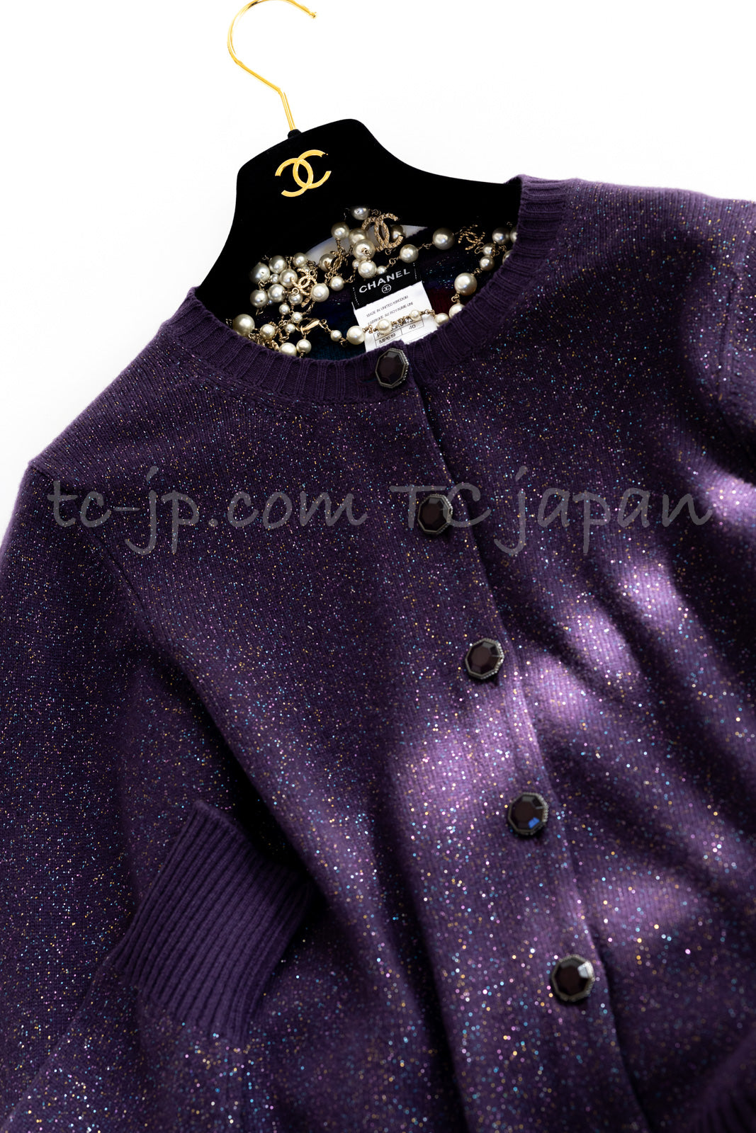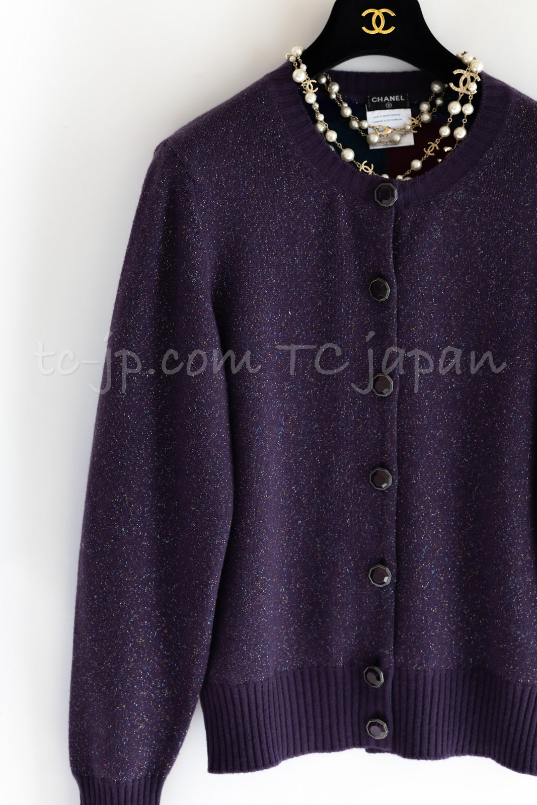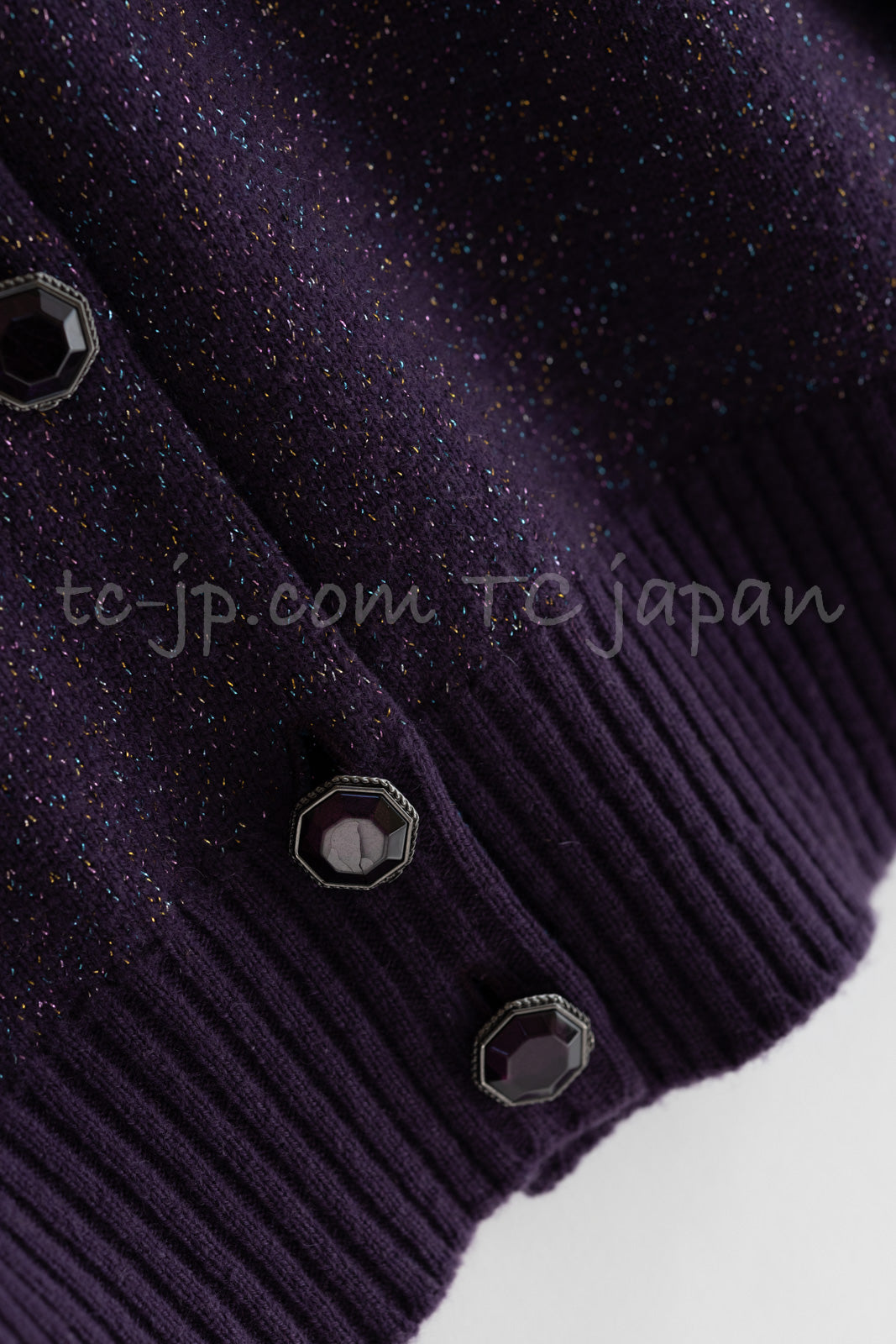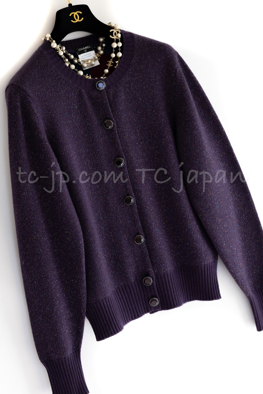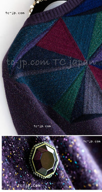 CHANEL 12A Purple Knit Cashmere Cardigan Gripox Buttons 38 40 シャネル パープル ニット カシミア カーディガン グリポワ宝石ボタン 即発