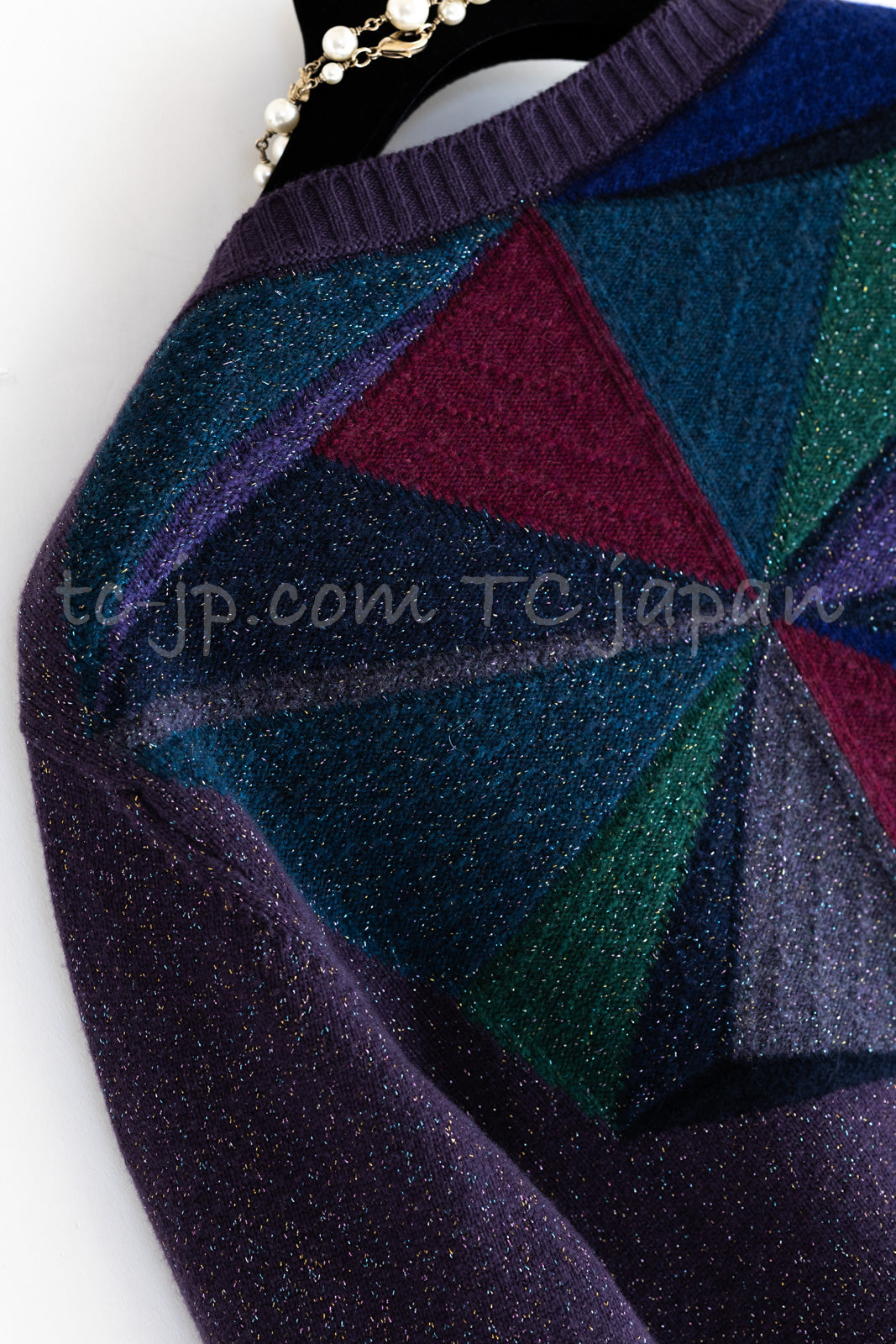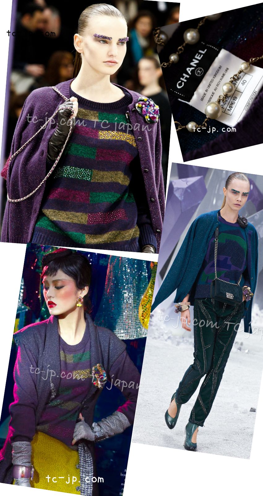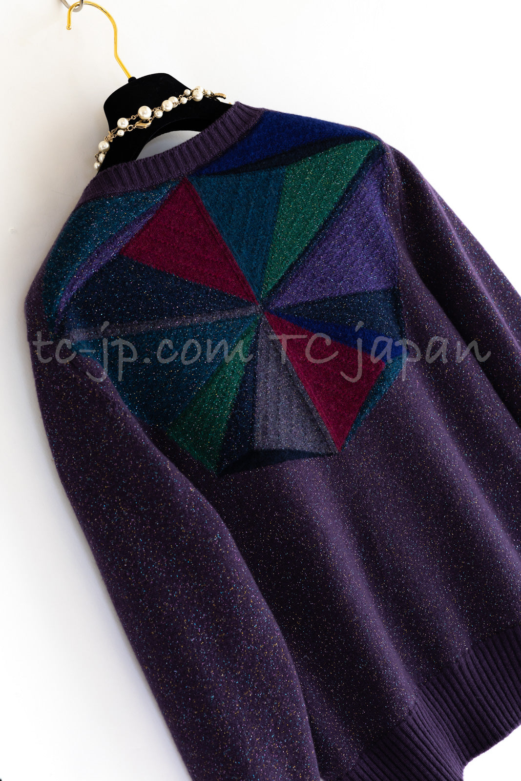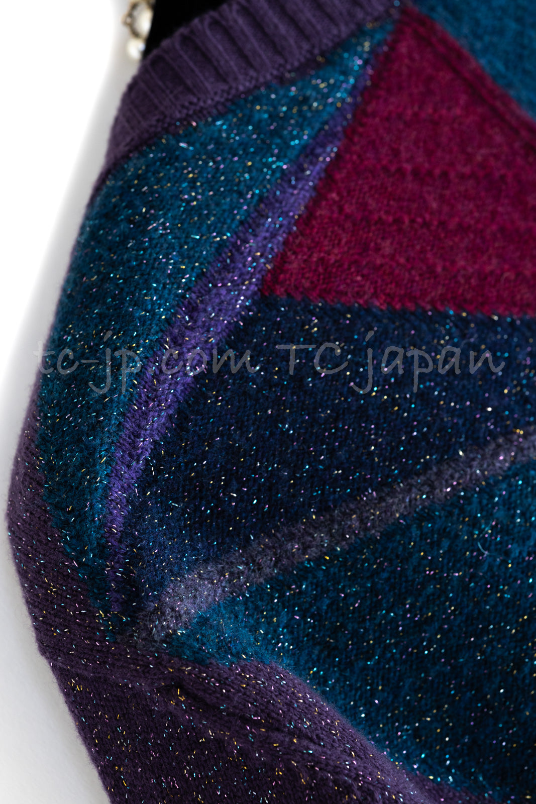 CHANEL 12A Purple Knit Cashmere Cardigan Gripox Buttons 38 40 シャネル パープル ニット カシミア カーディガン グリポワ宝石ボタン 即発