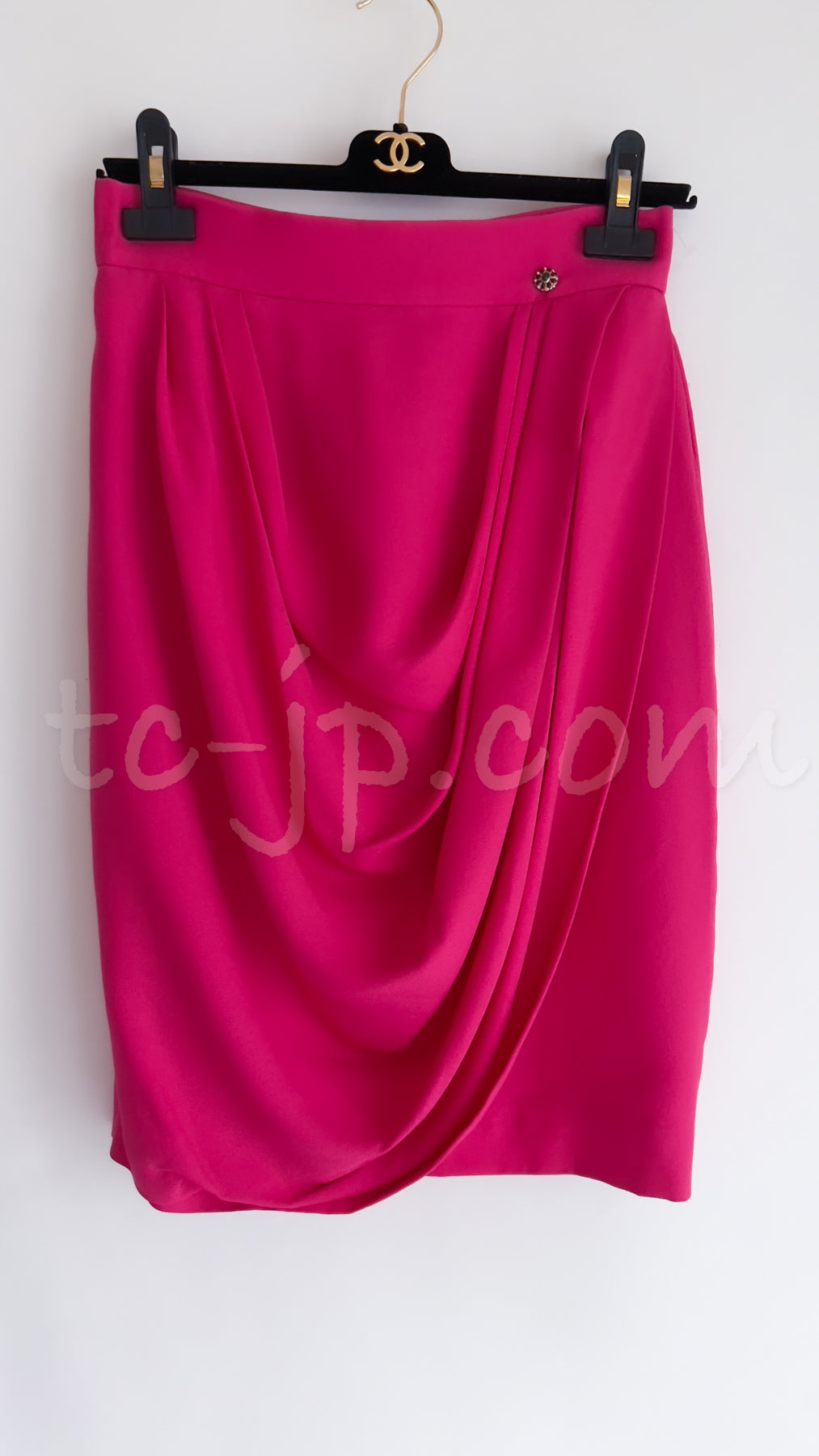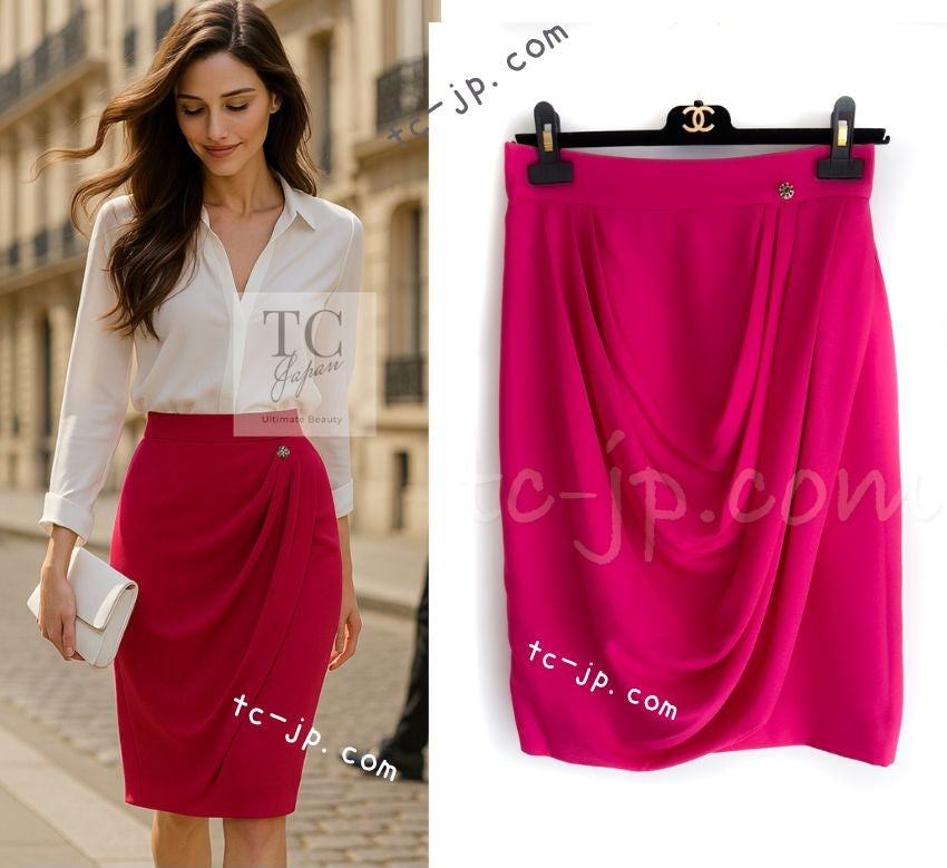 CHANEL 12PF Pink Draped Elegant Silk Skirt 38 シャネル ピンク ドレープ エレガント シルク スカート 即発