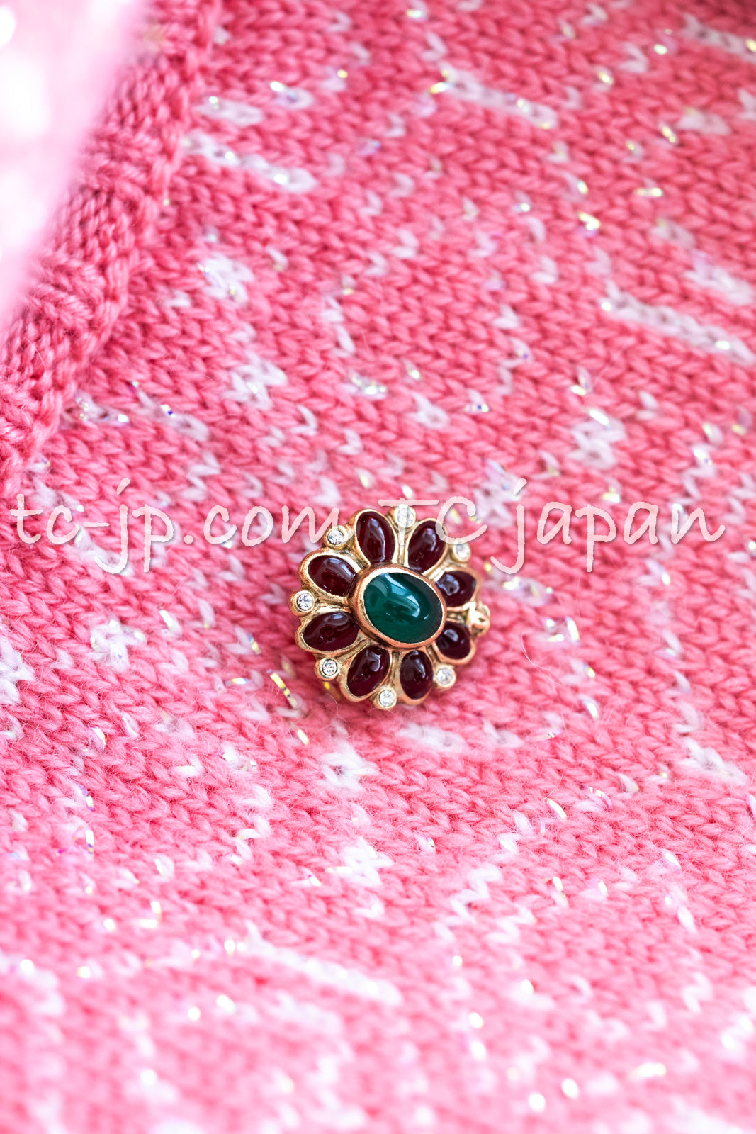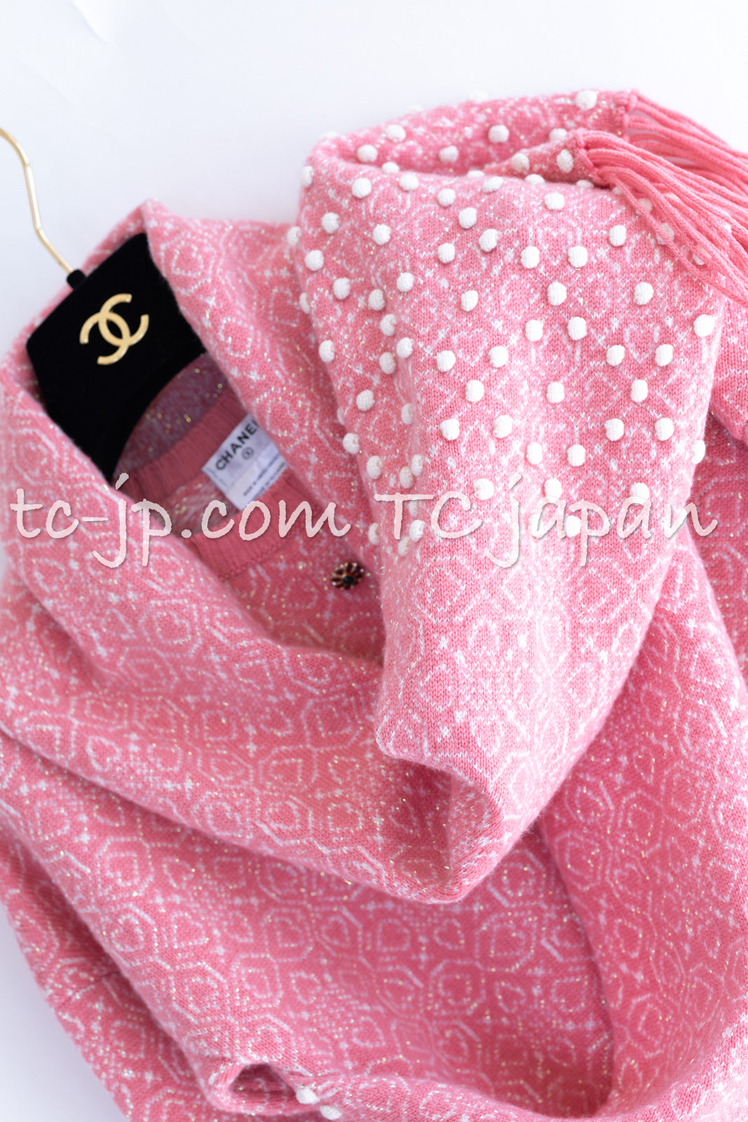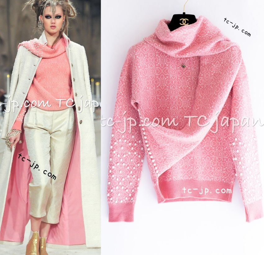 CHANEL 12PF Pink Ivory Scarf Gripoix Cashmere Knit Sweater 34 36 シャネル ピンク 桜さくらカラー マフラー付 グリポワ宝石 カシミヤ ニット セーター 即発